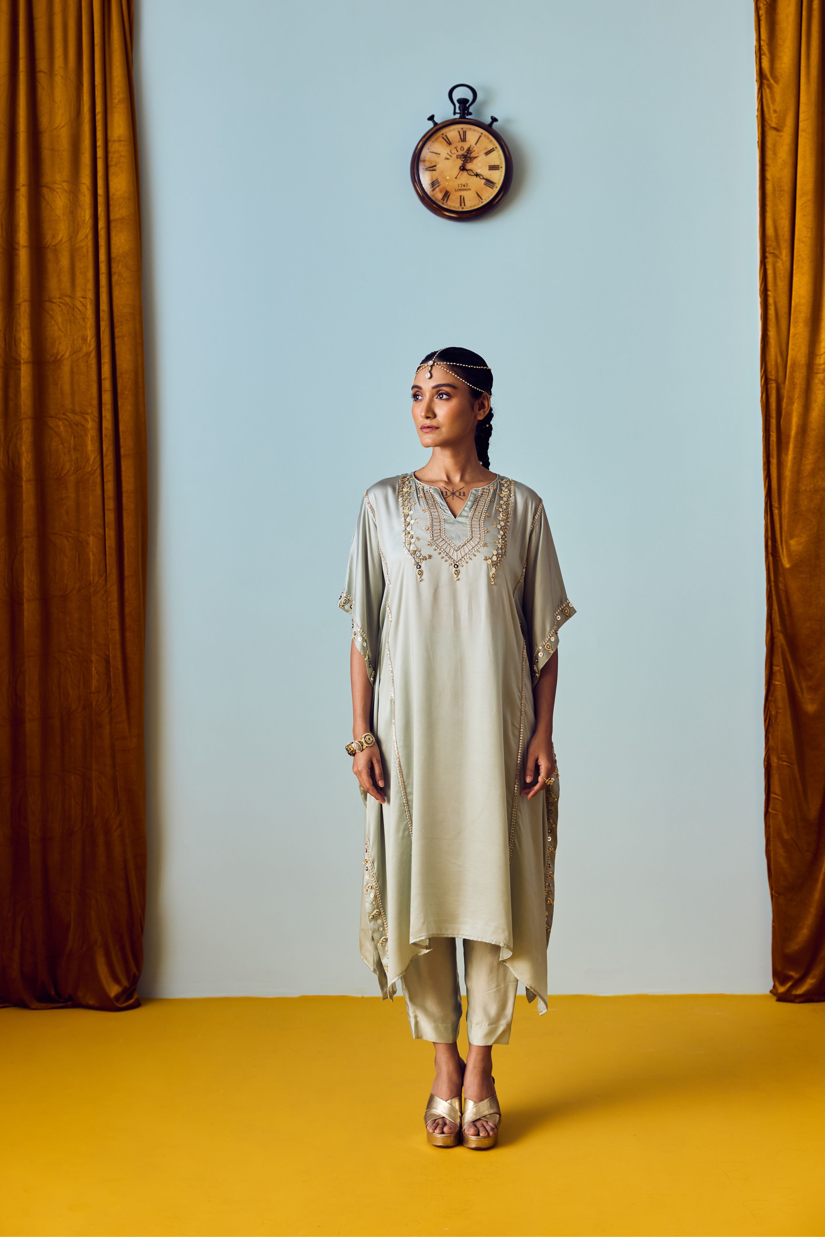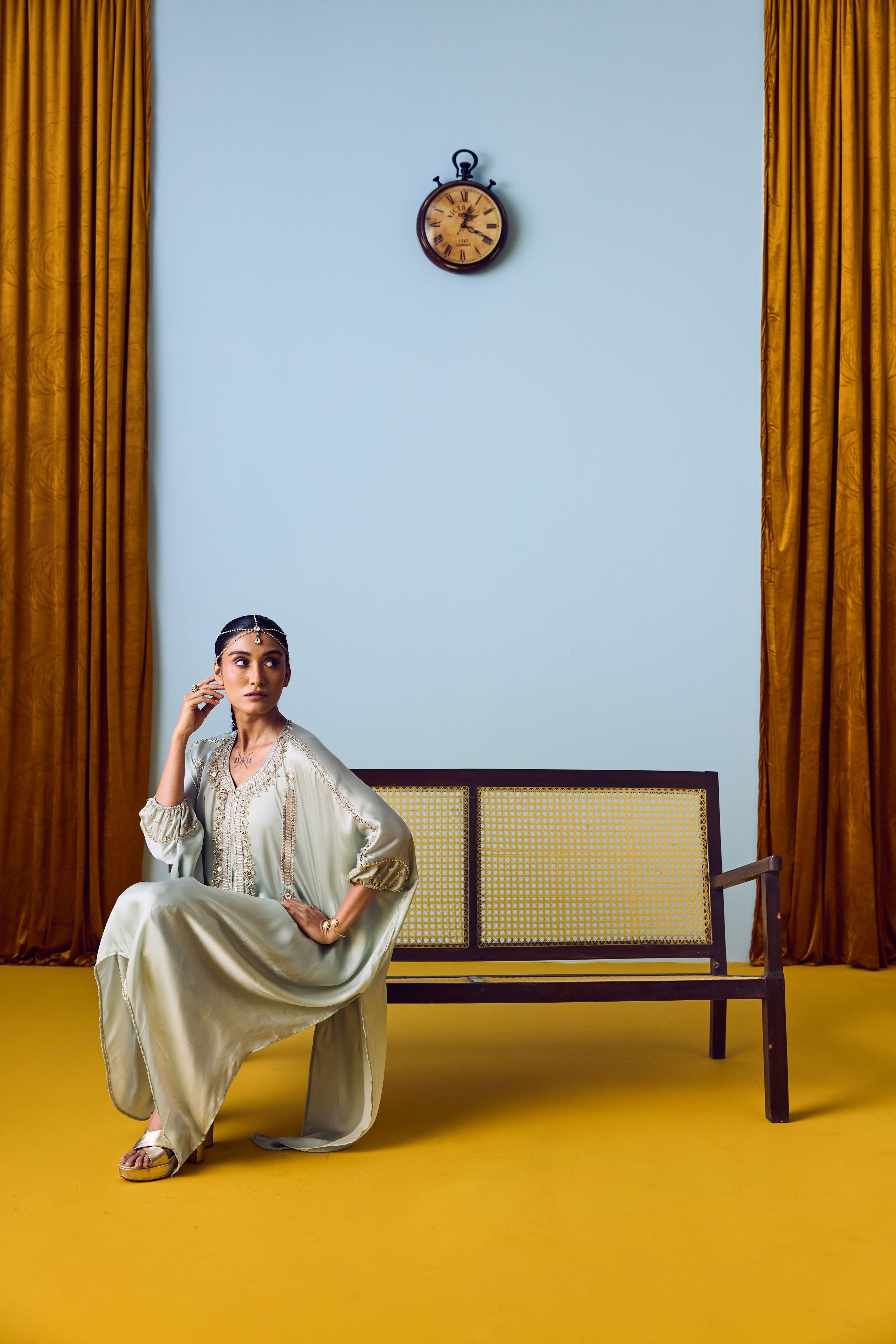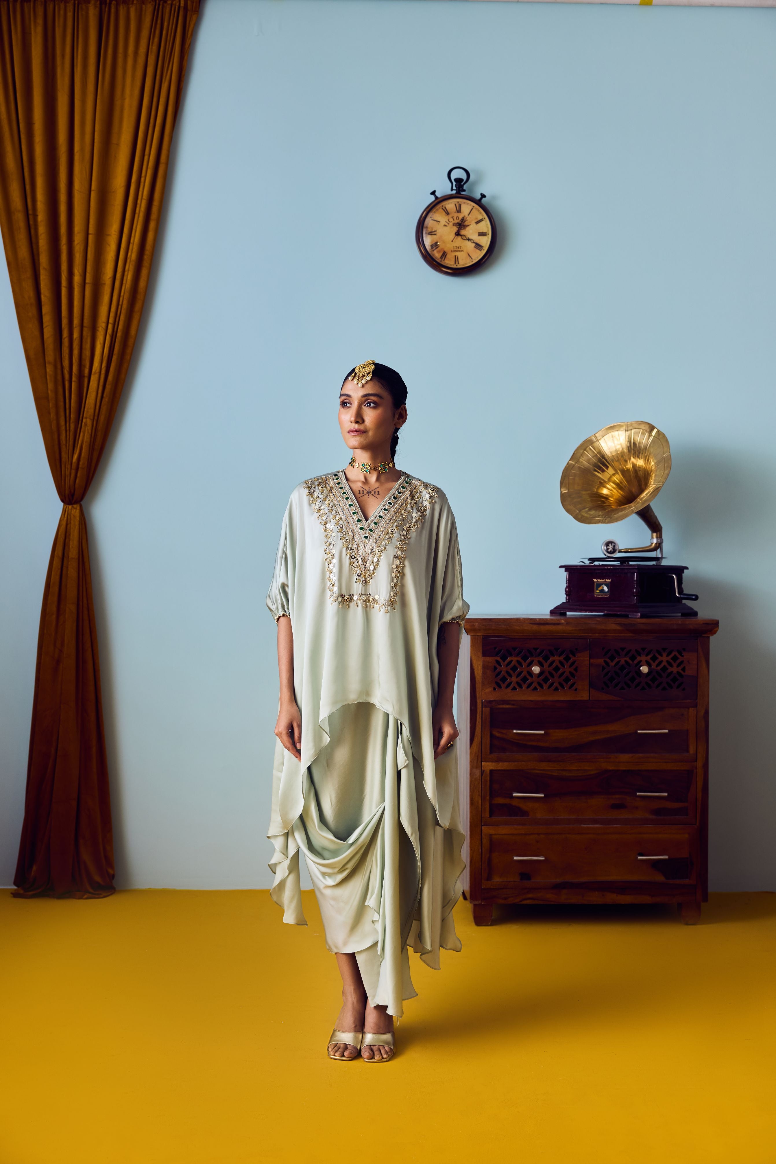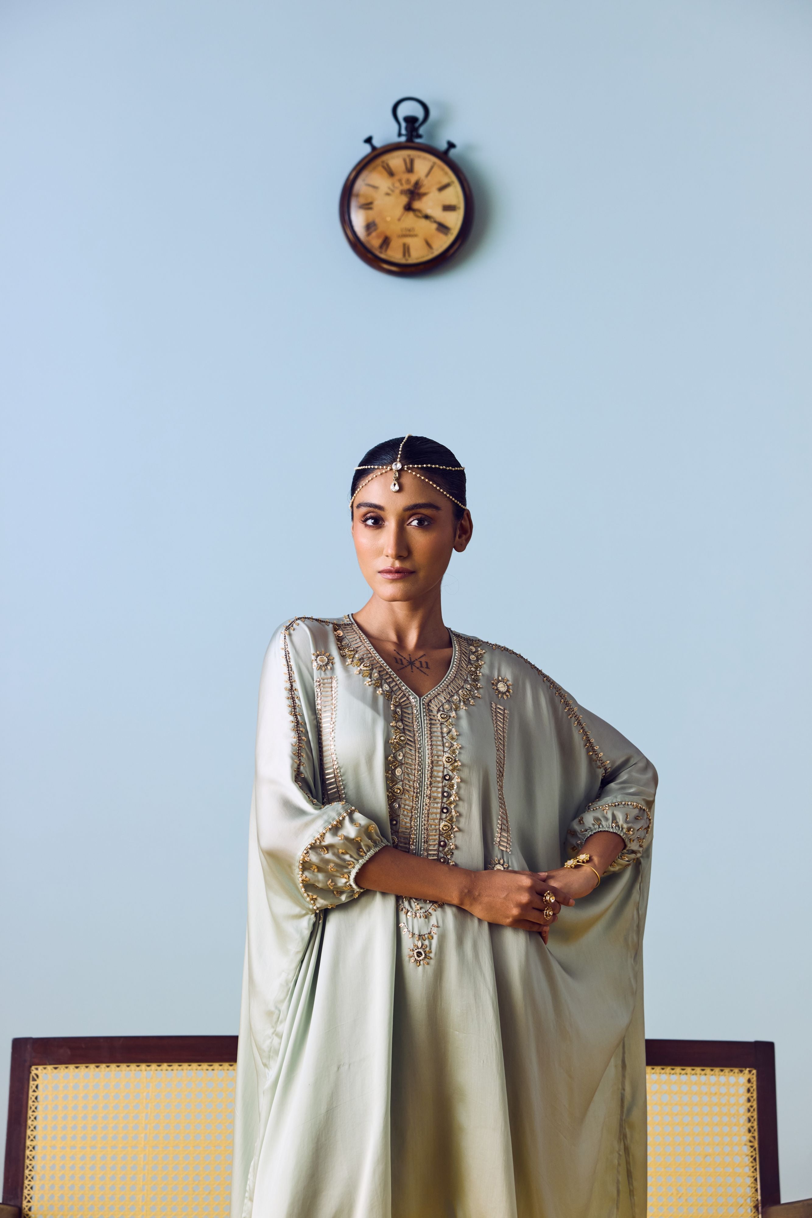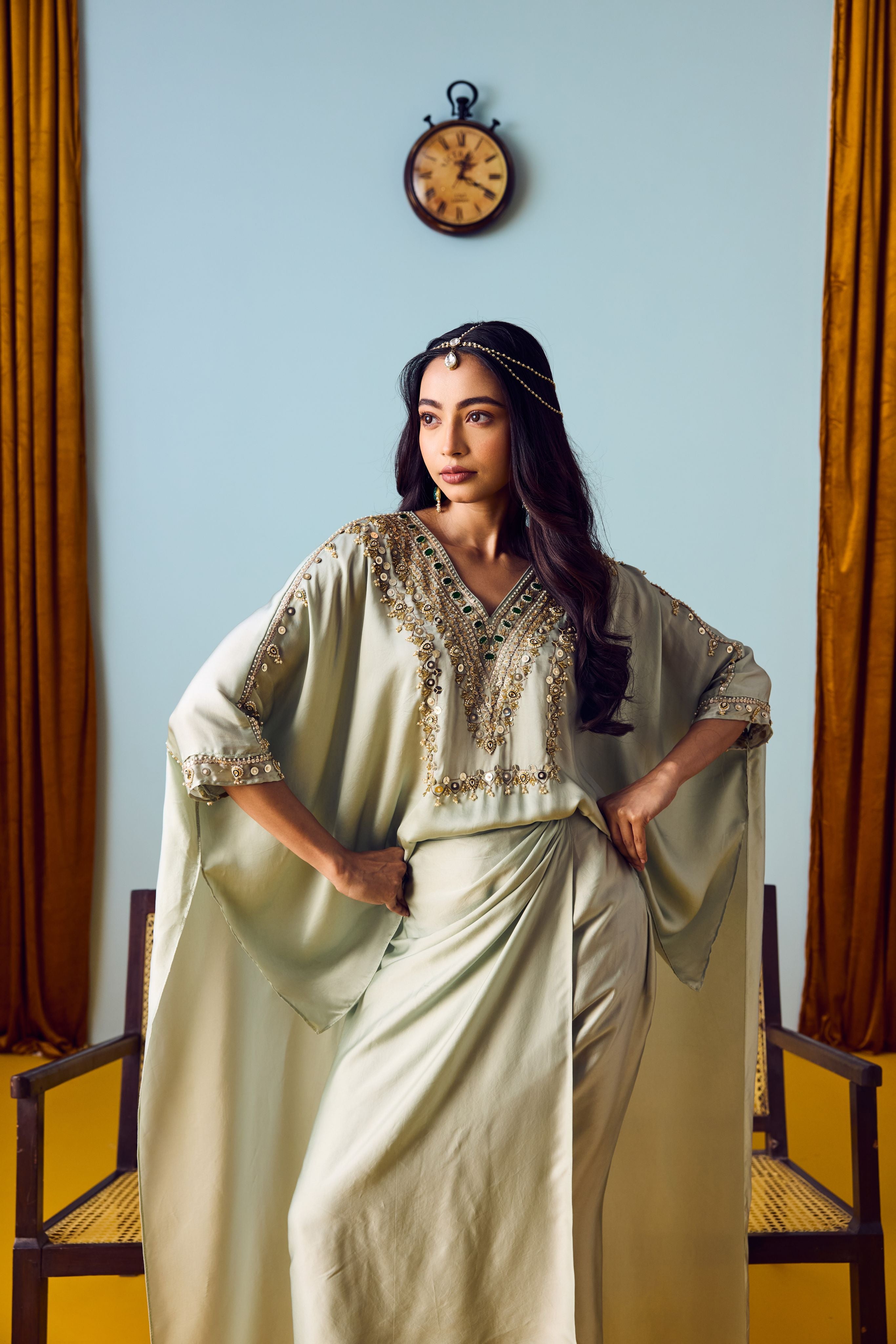 Nourie Sage Green Hand-Embroidered Kaftan Sets