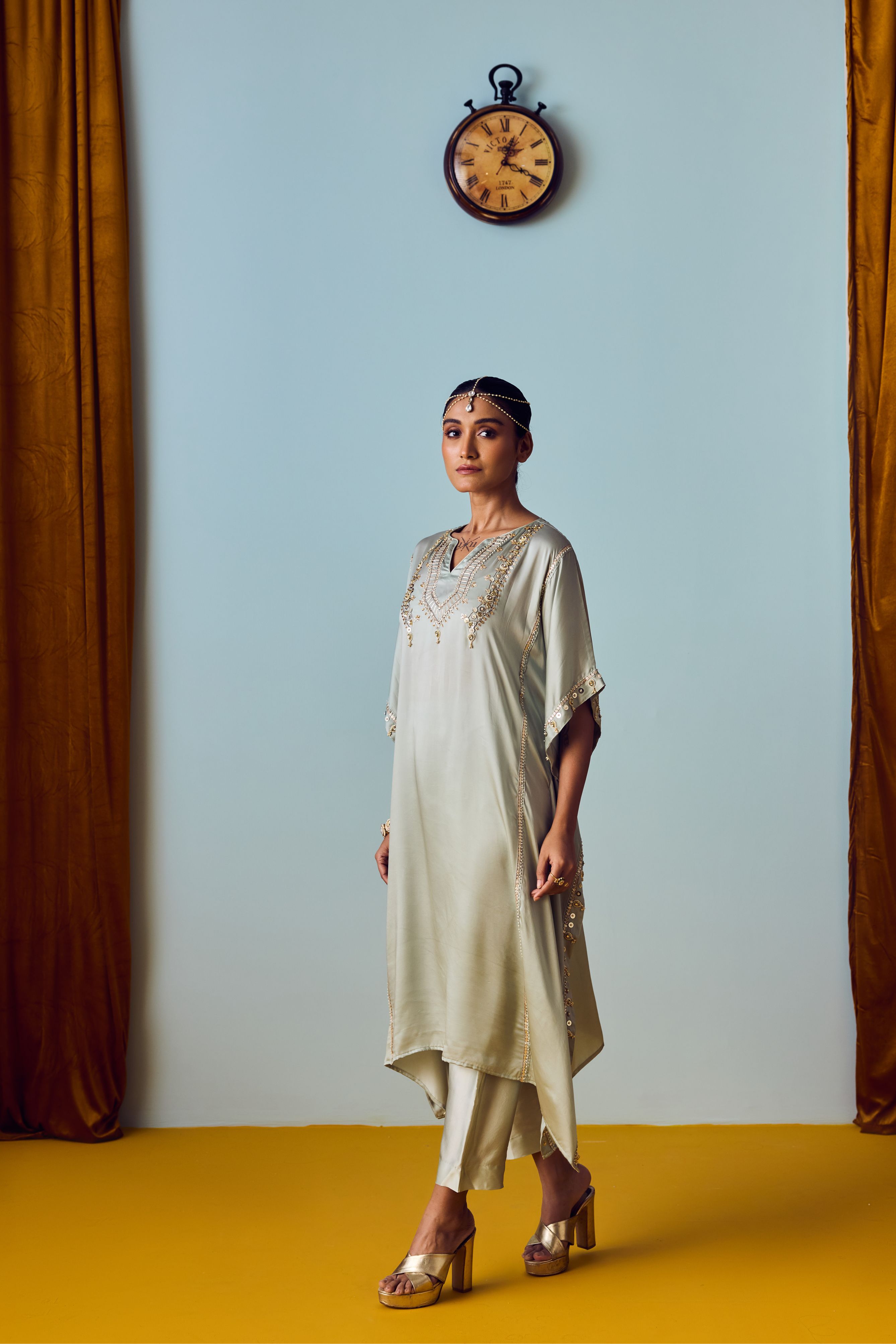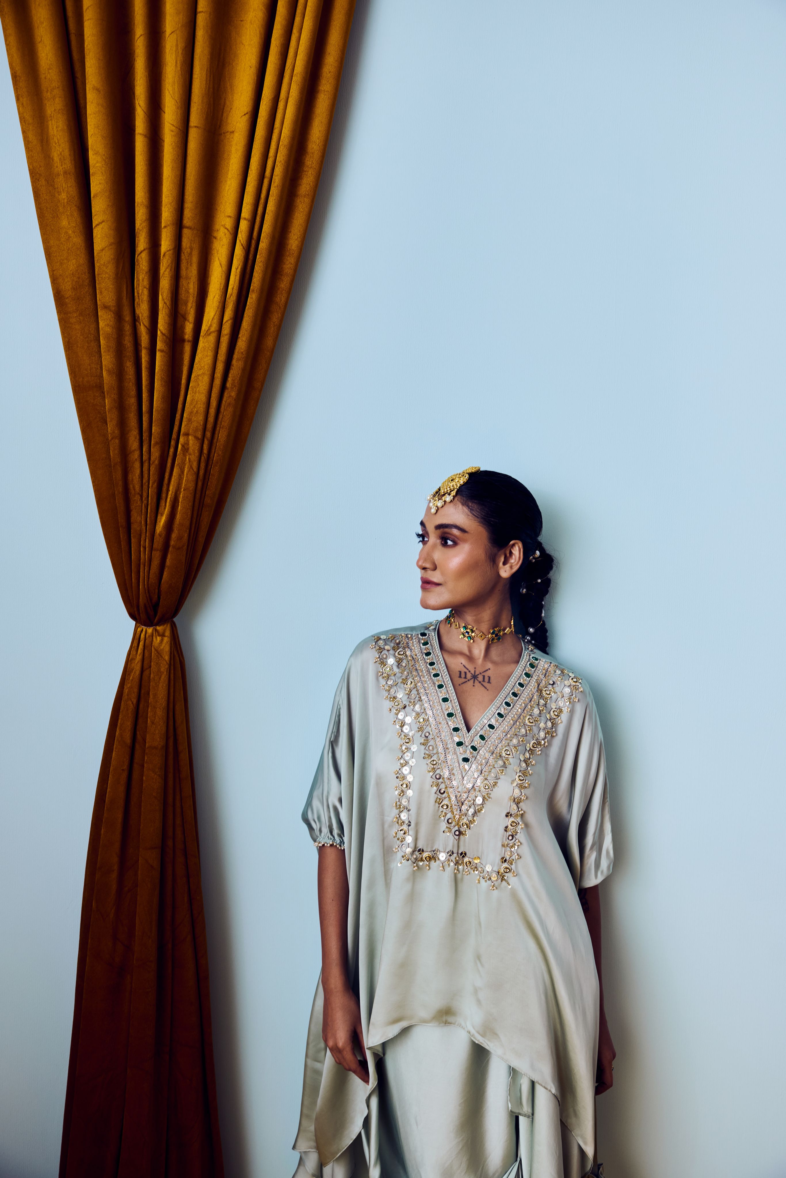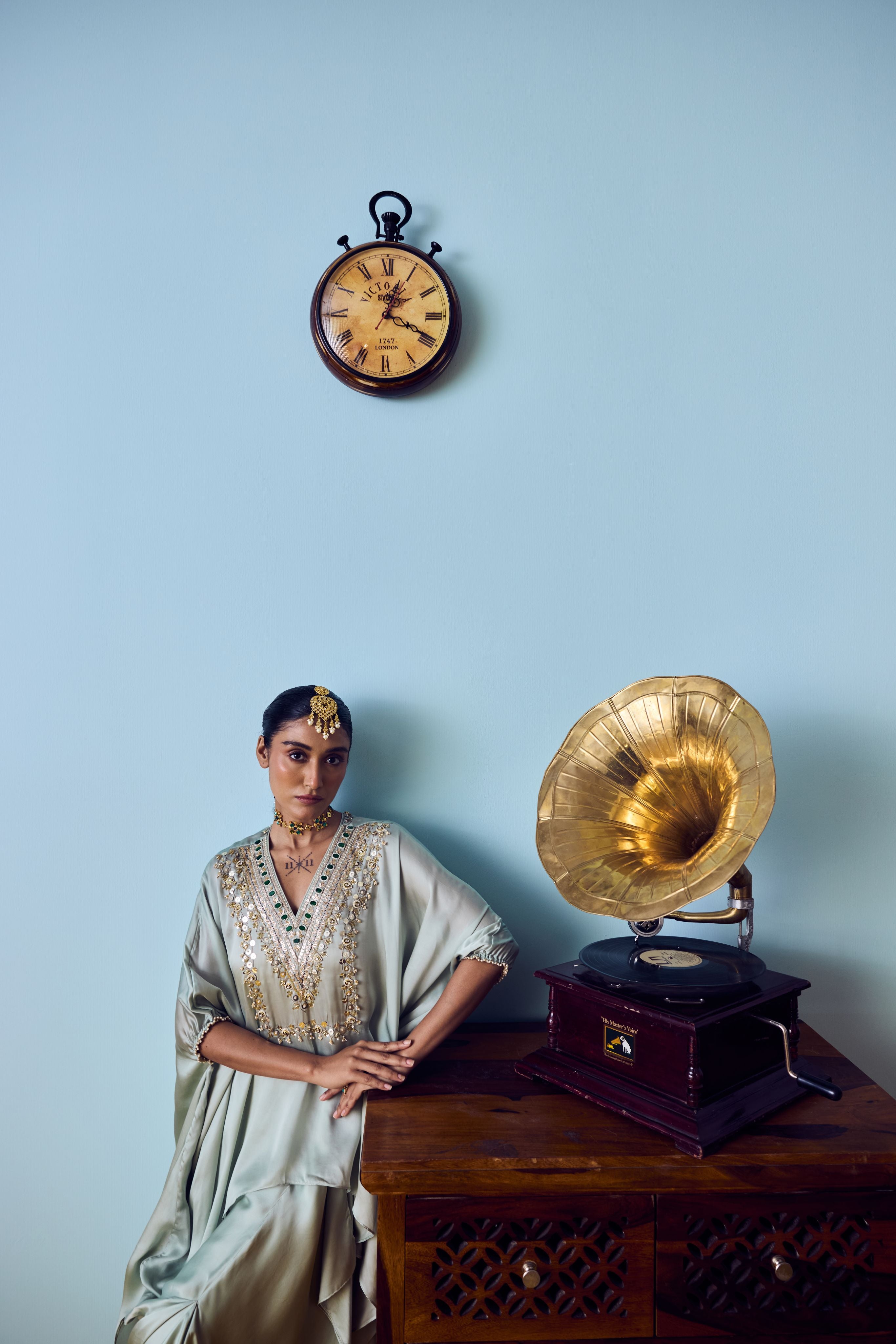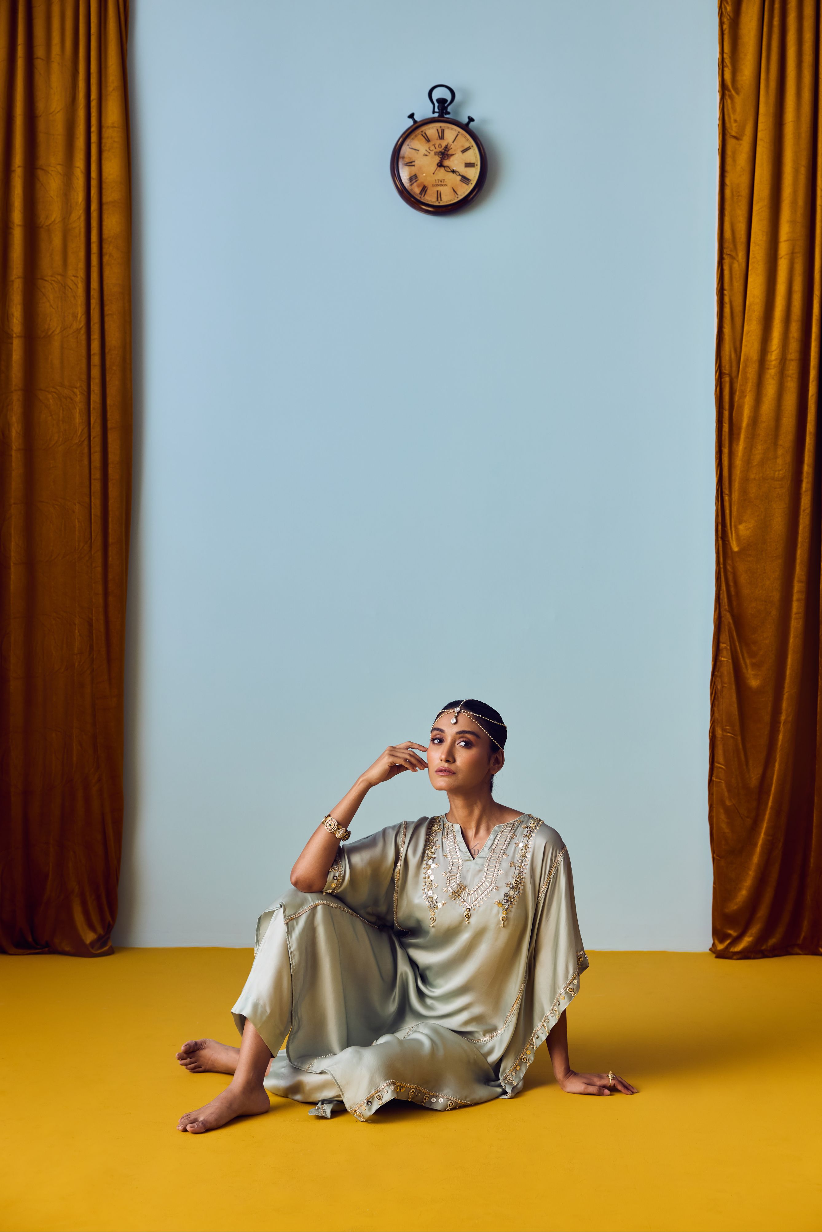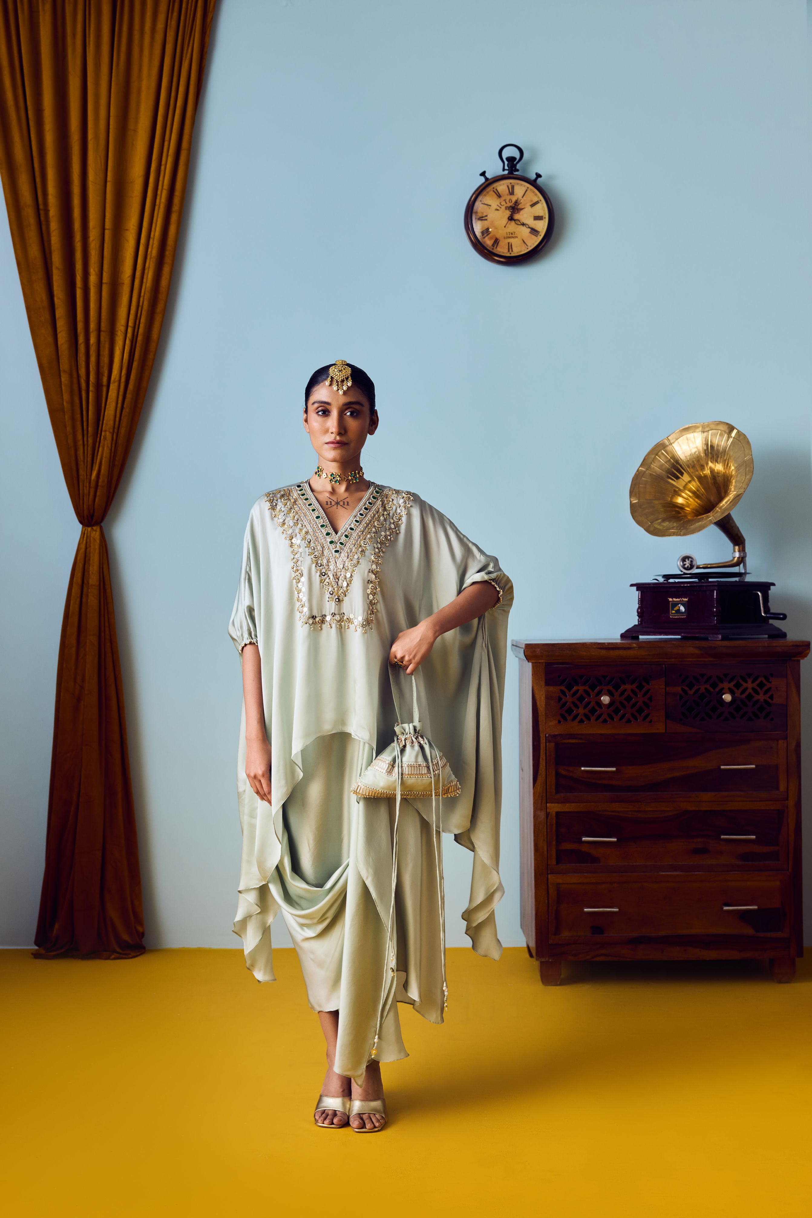 Nourie Sage Green Hand-Embroidered Kaftan Sets