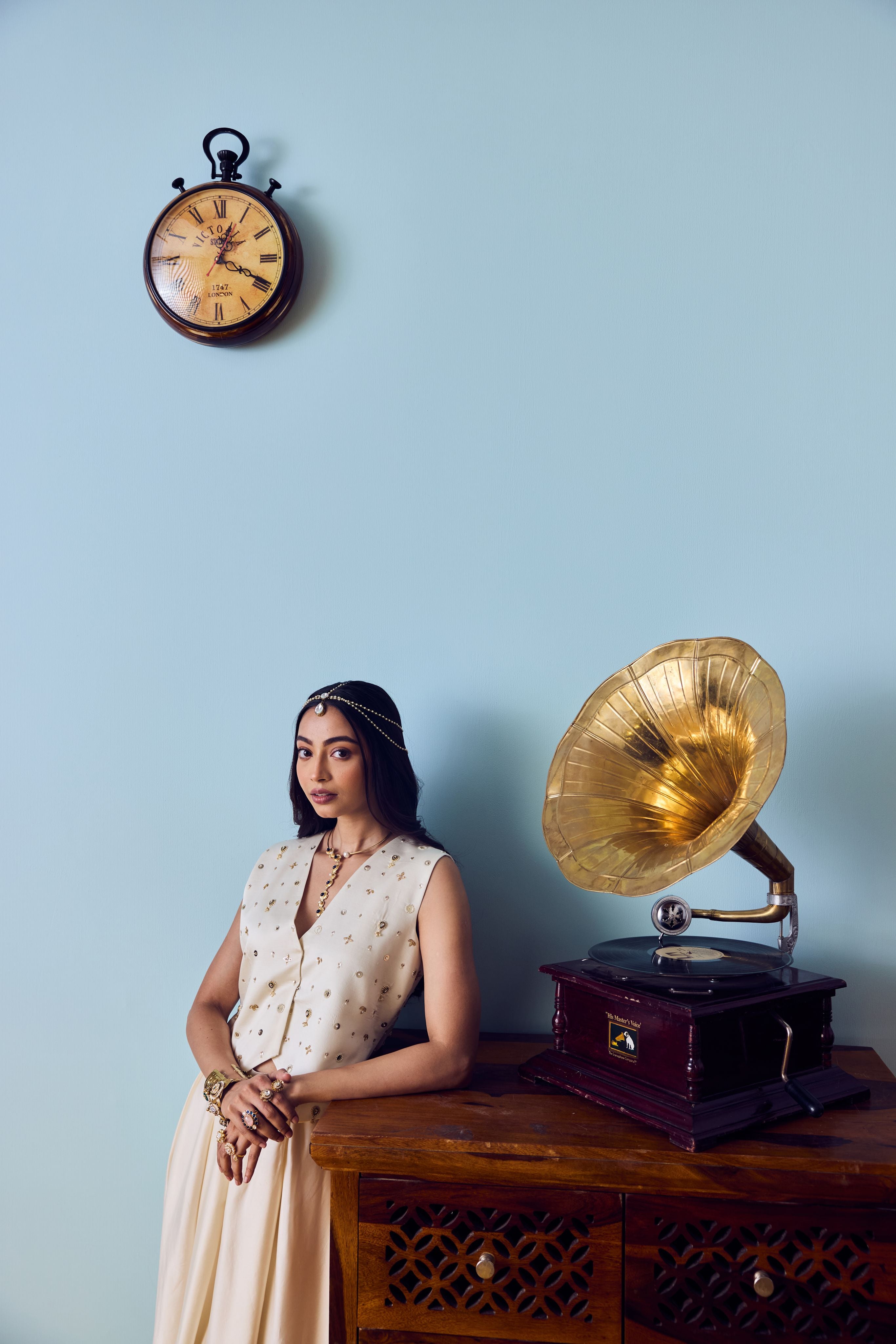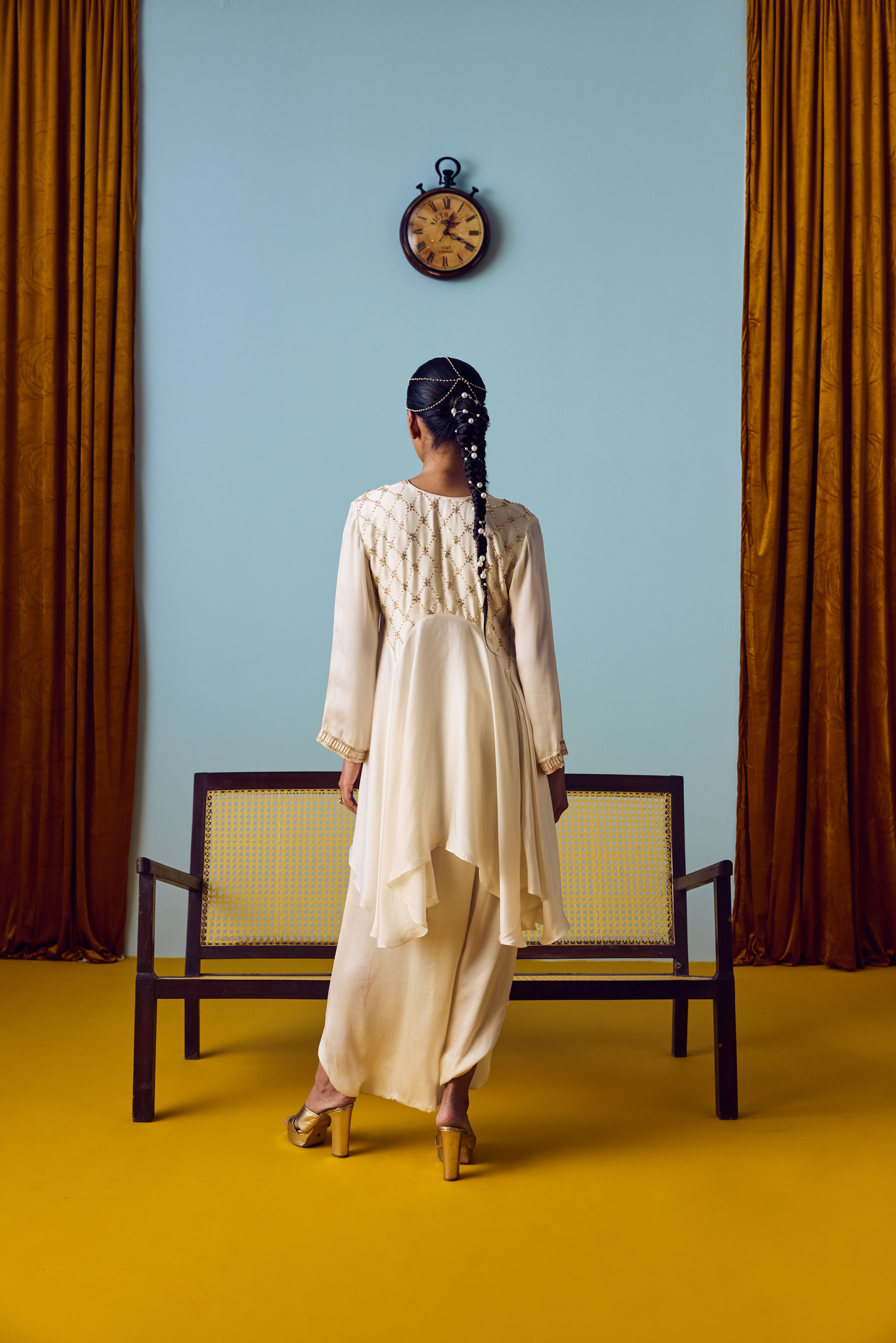 Sureen Pearl Asymmetric Flared Top & Skirt Set