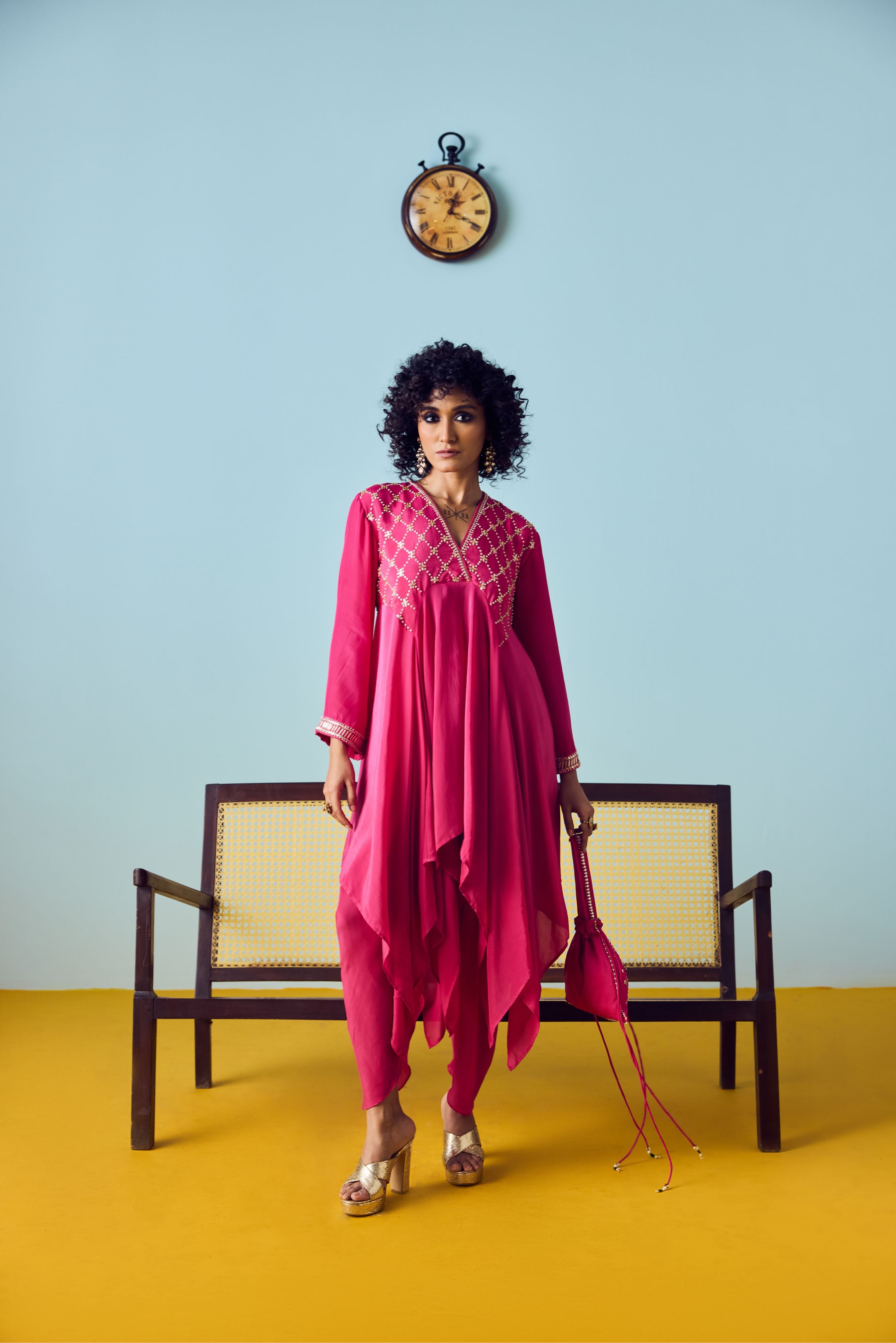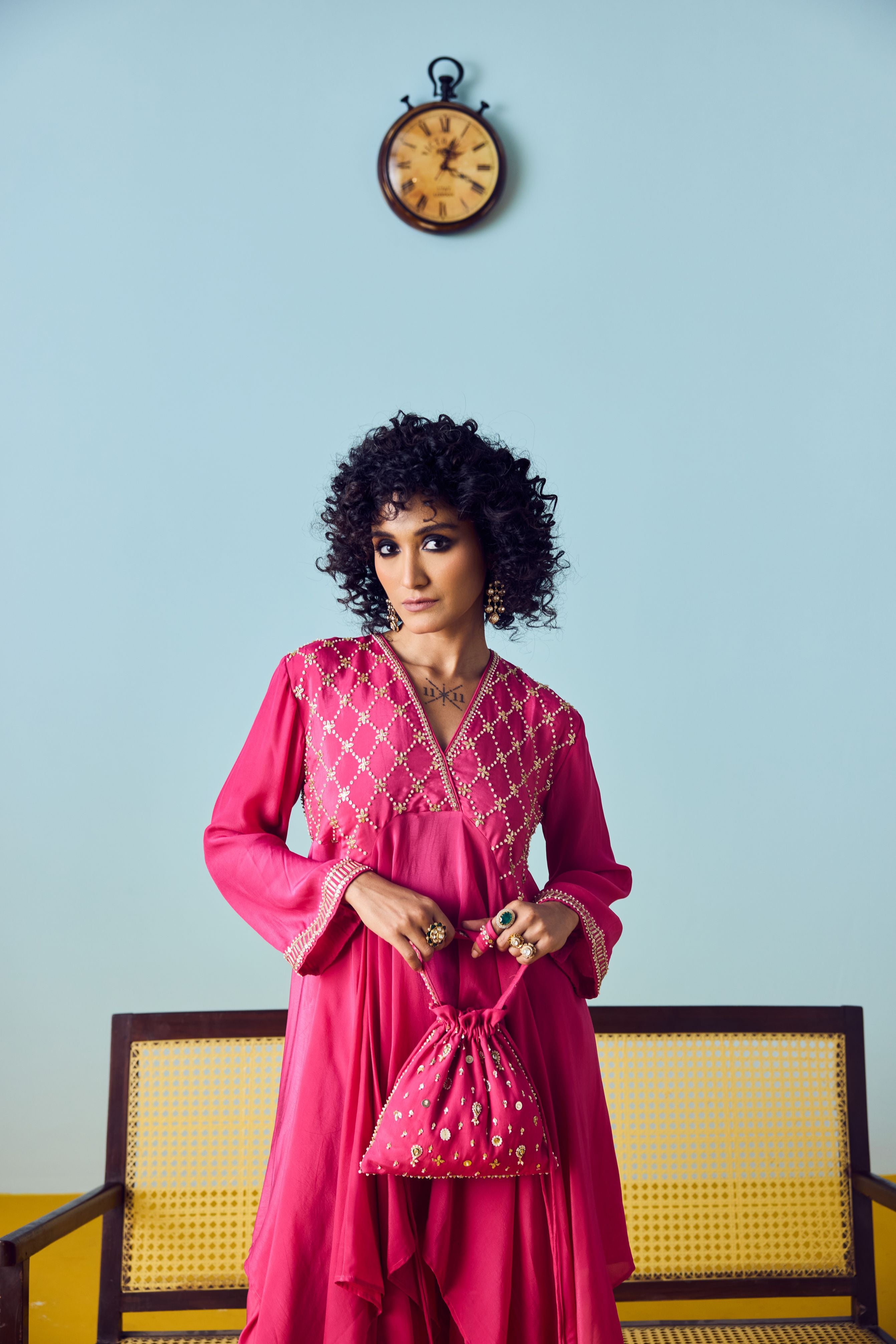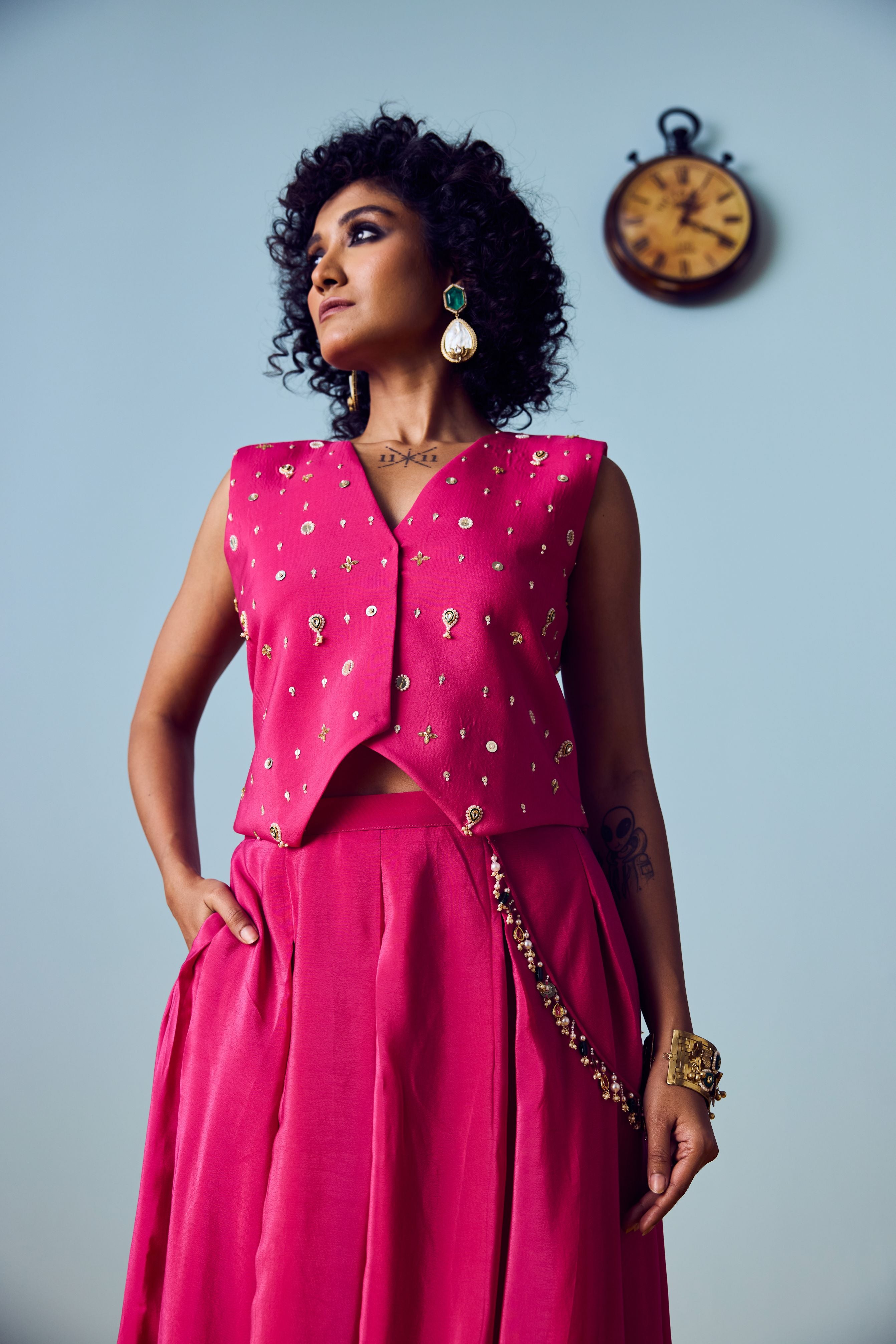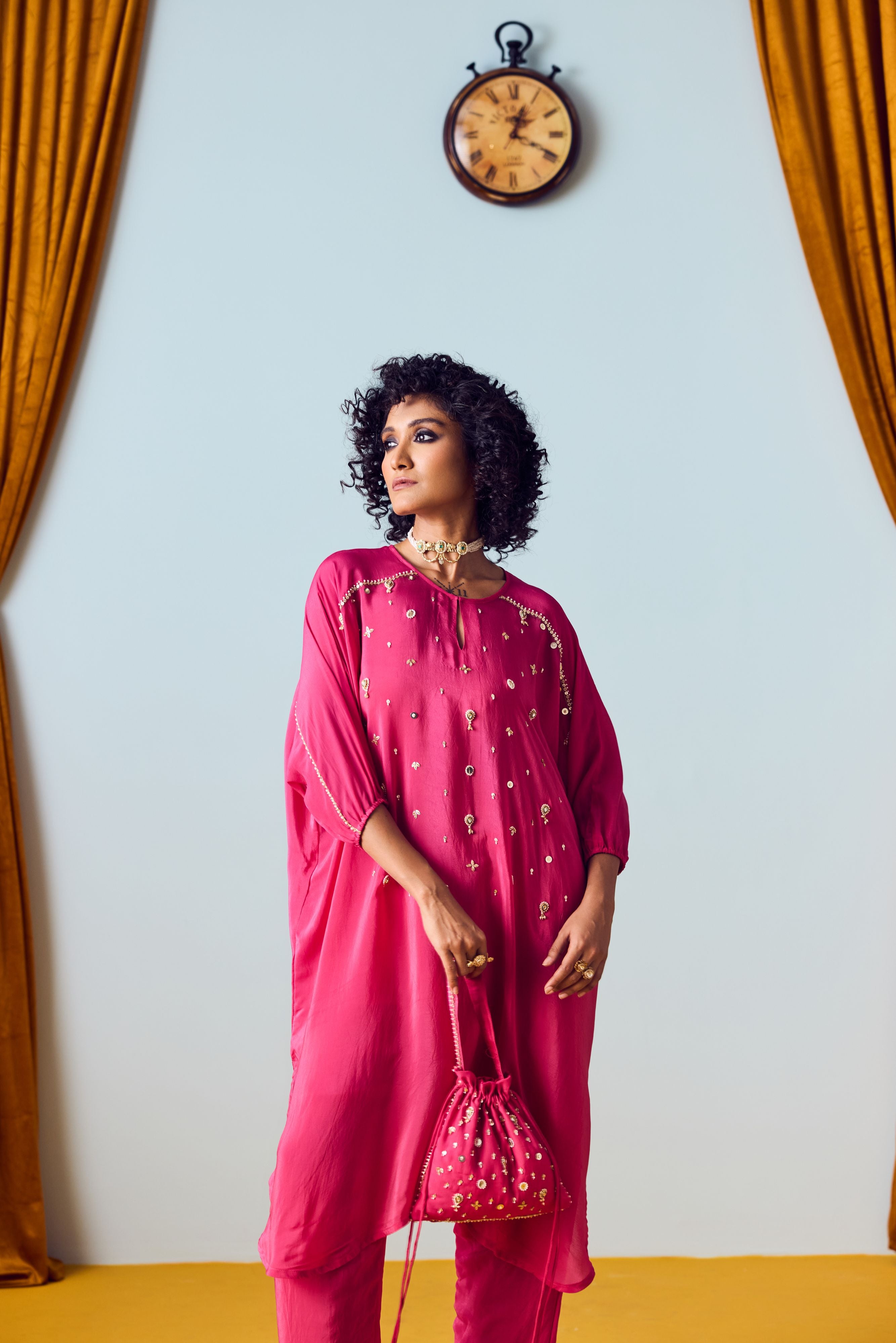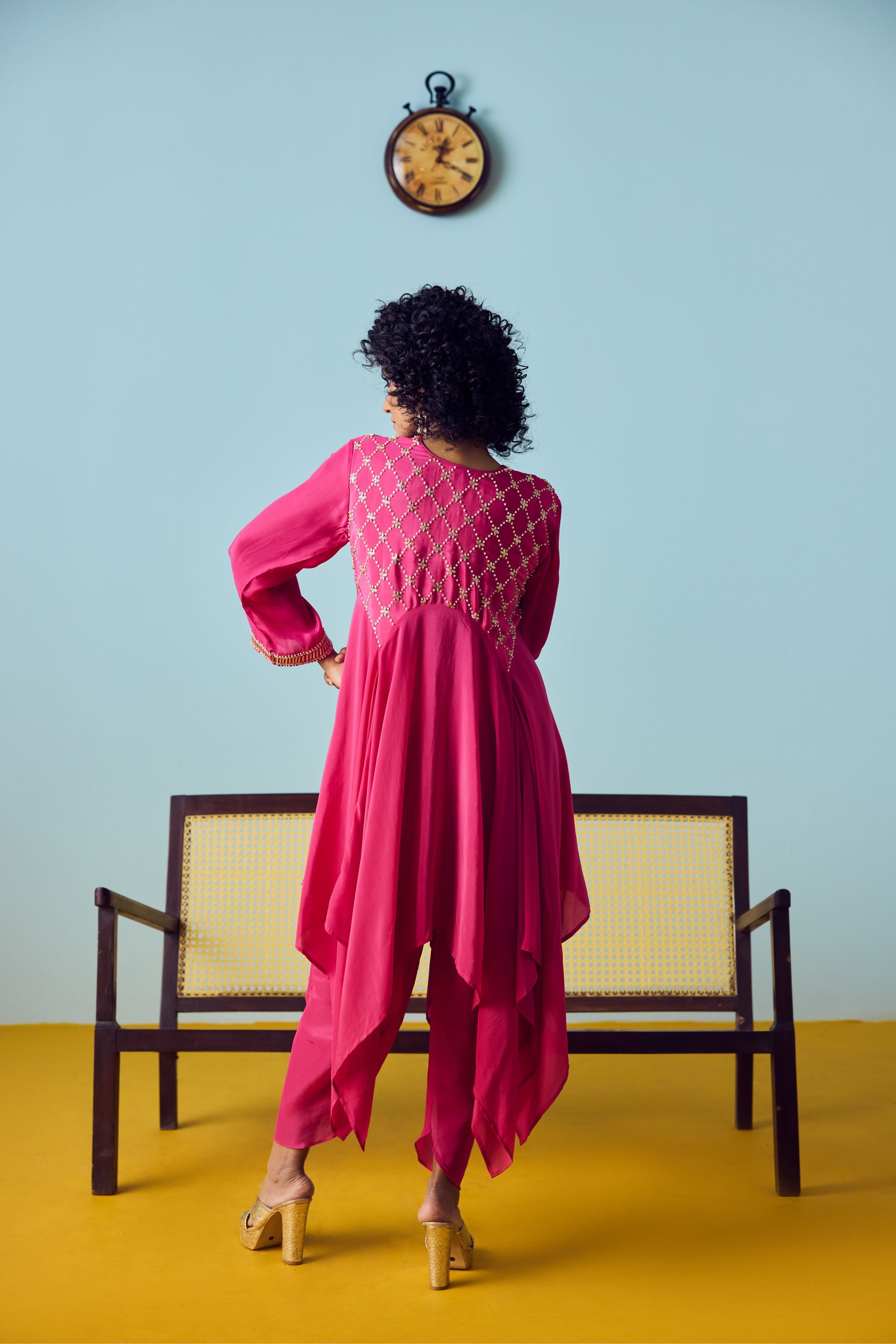 Maia Pink Anti-Fit Tunic Set with Panelled Palazzo