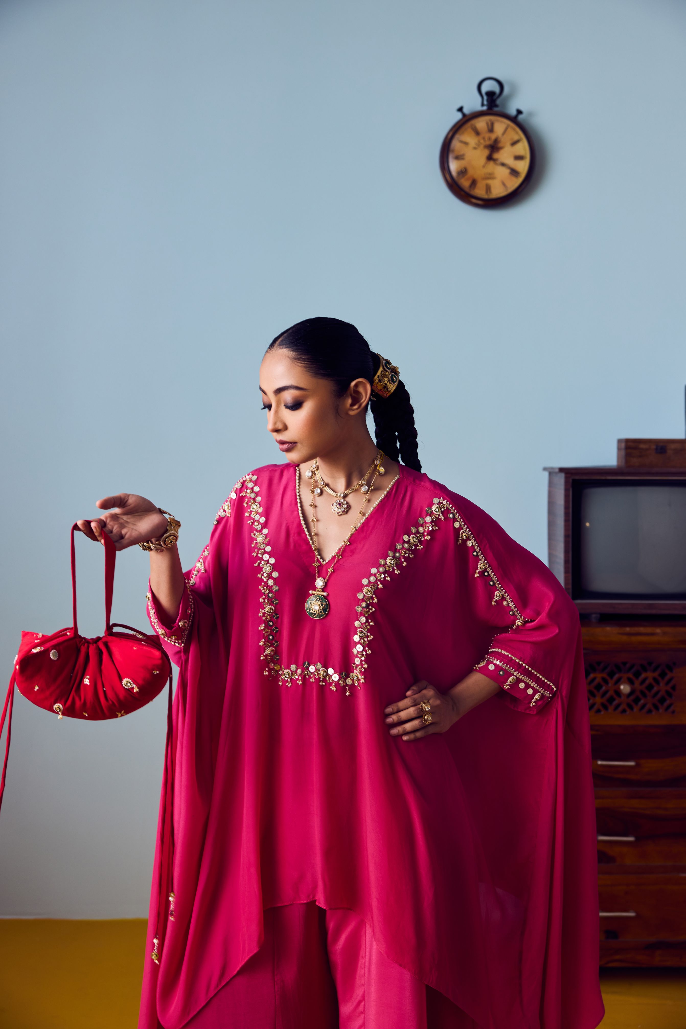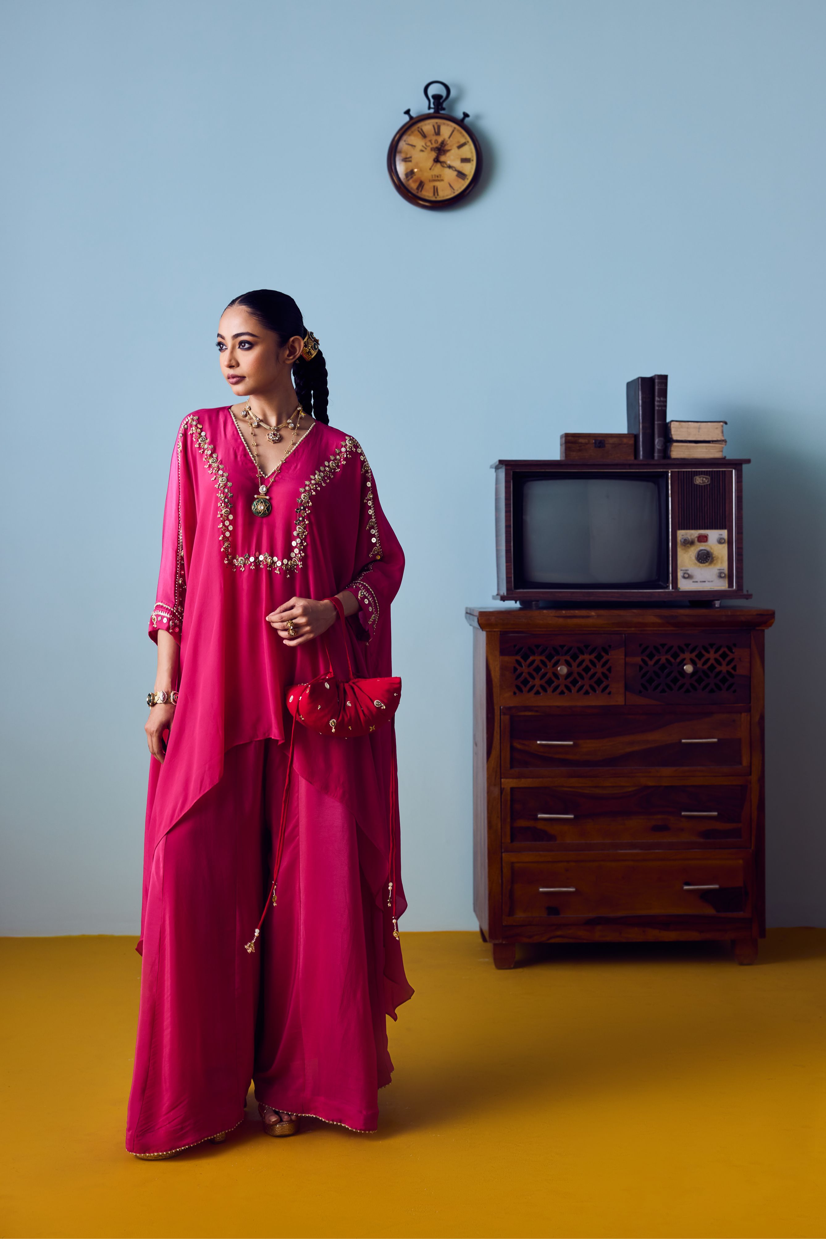 Maia Pink Anti-Fit Tunic Set with Panelled Palazzo