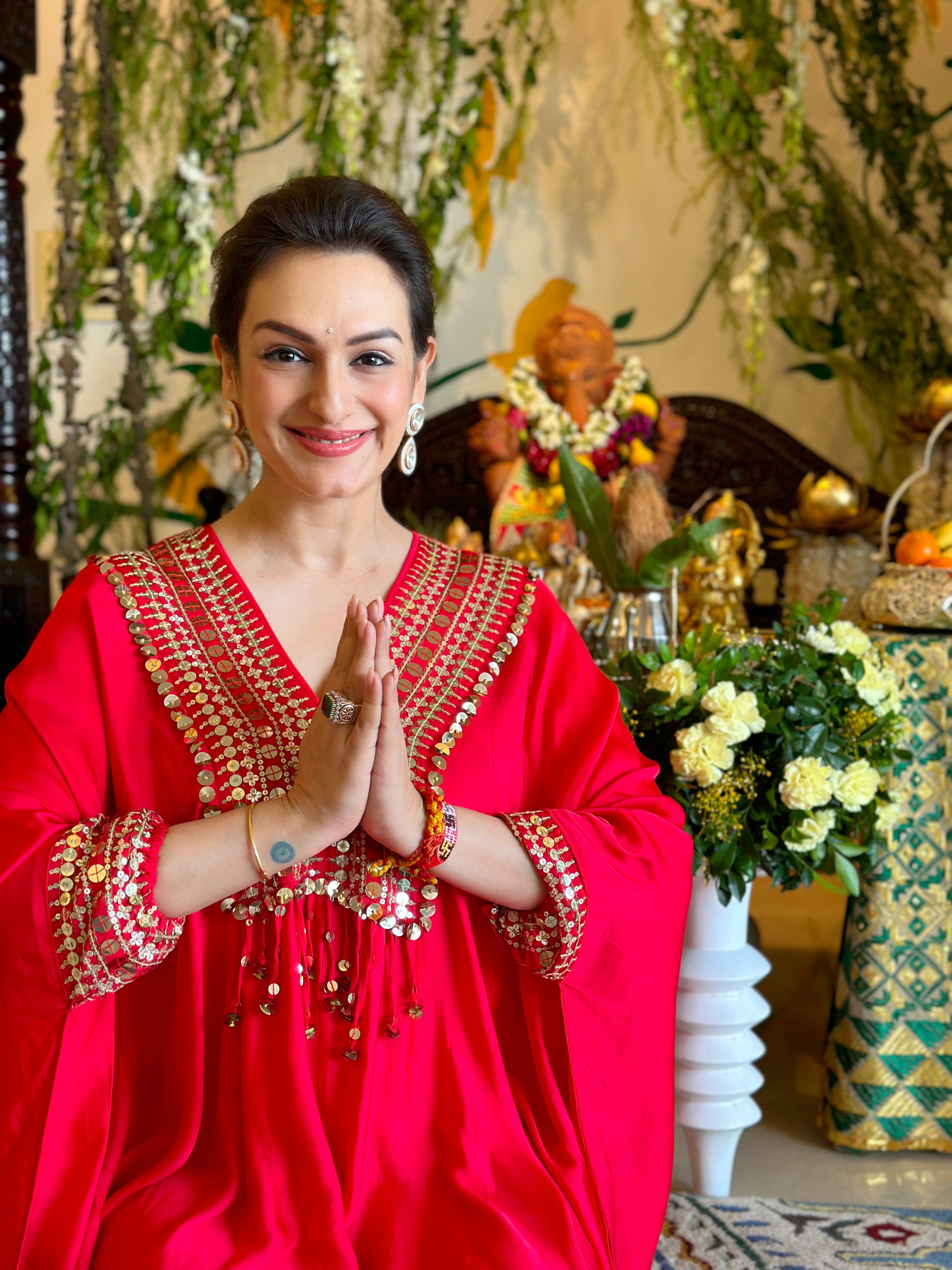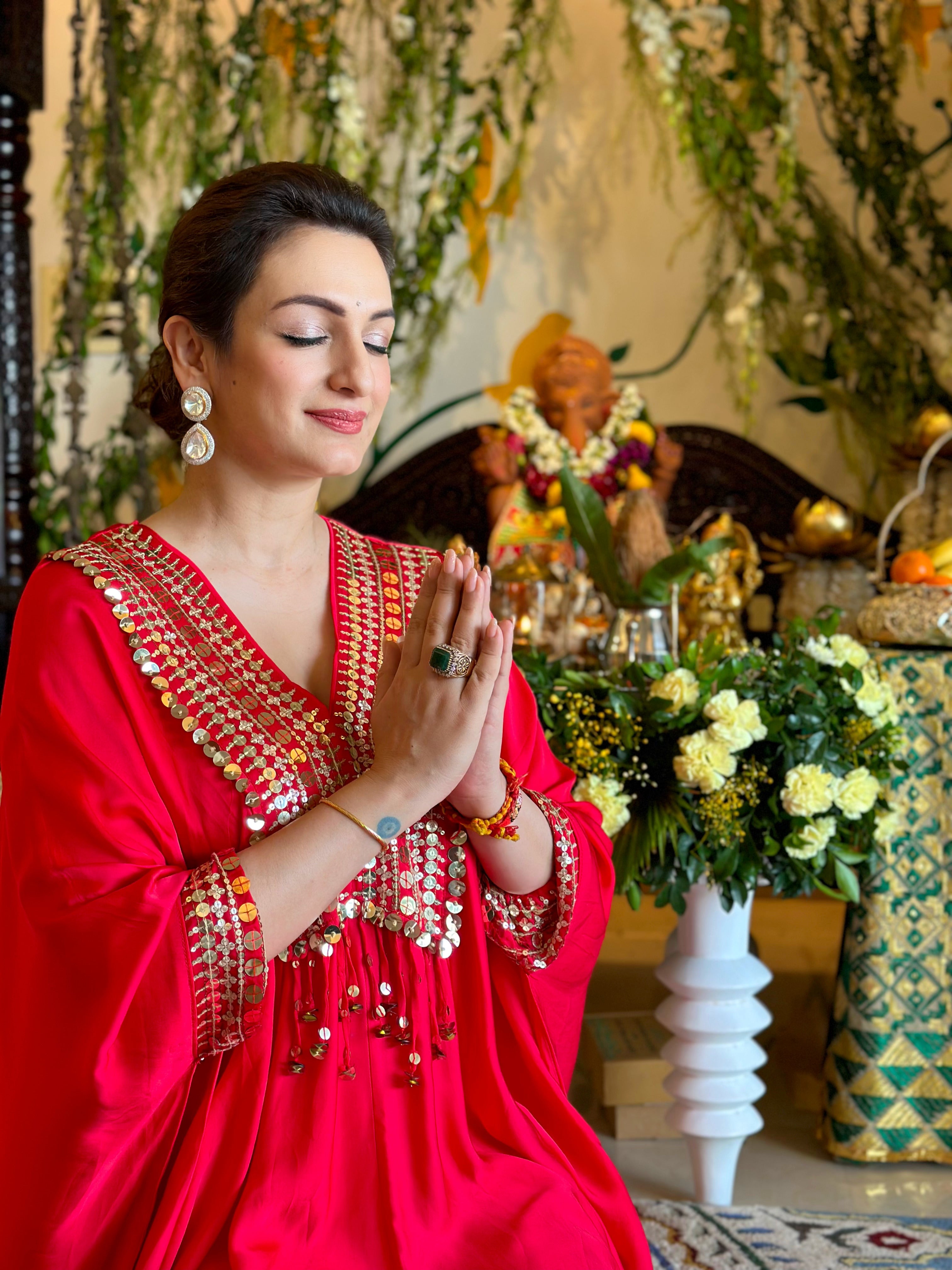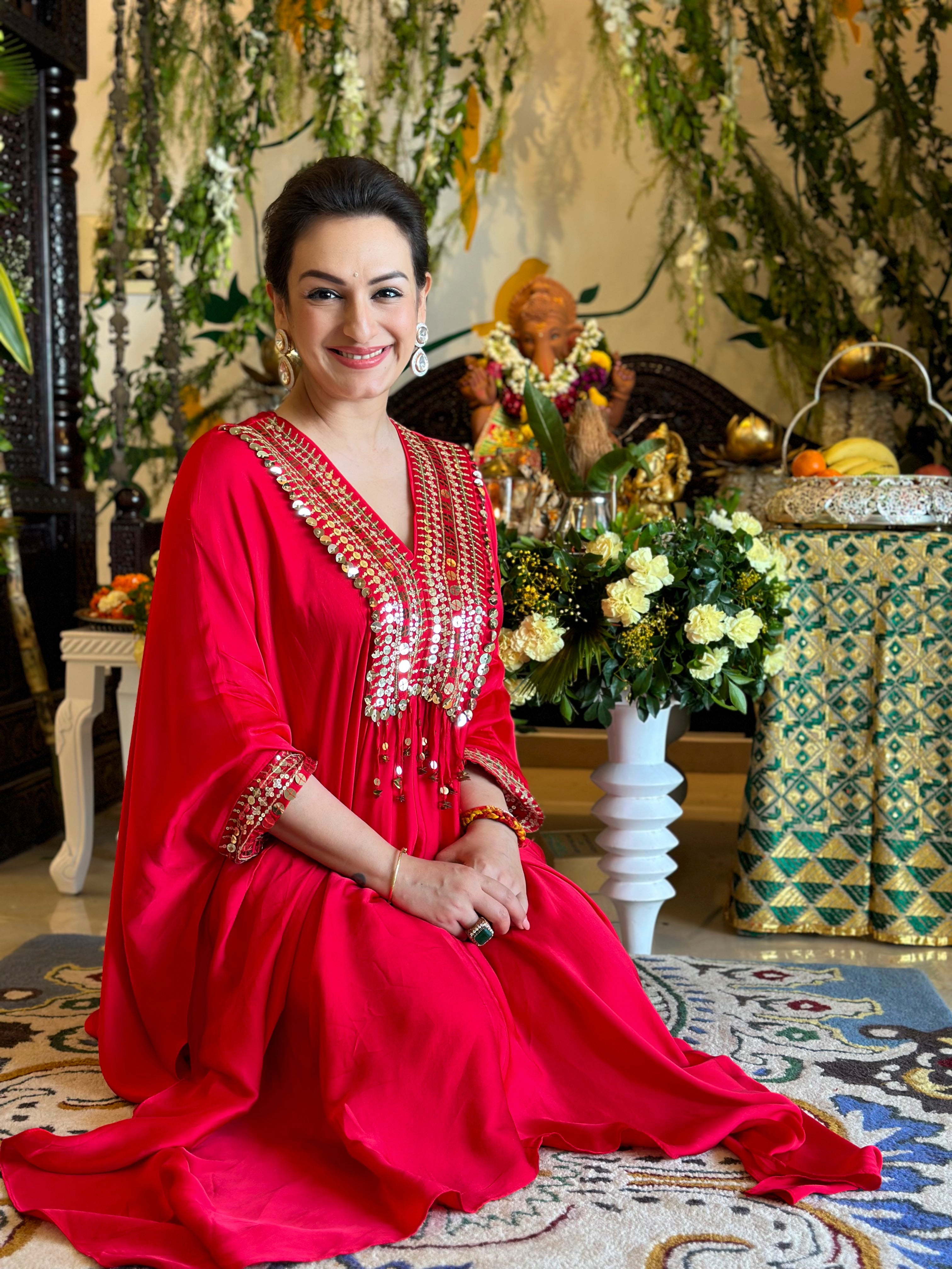Akriti Kakar in Morrocon Red Kaftaan Set