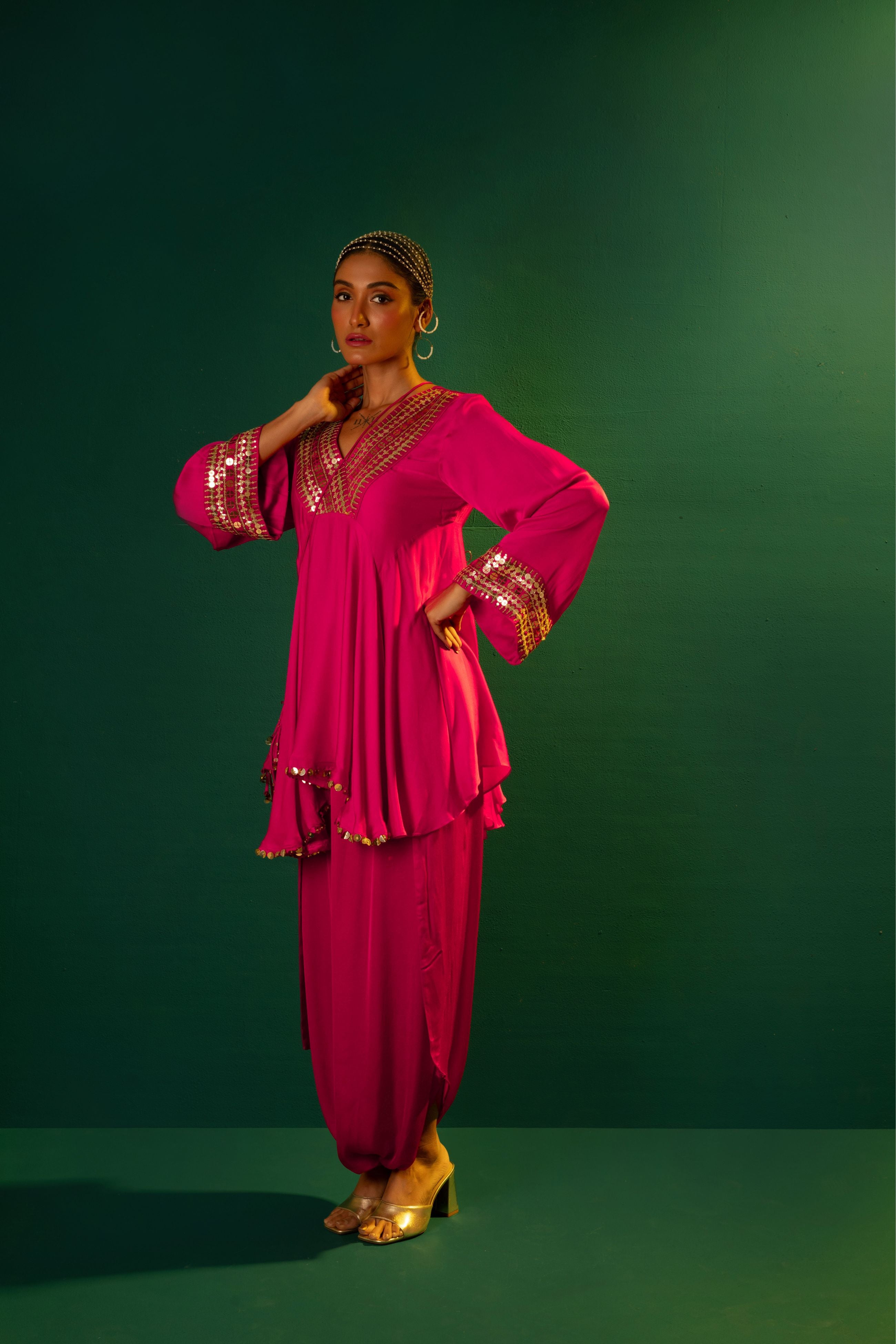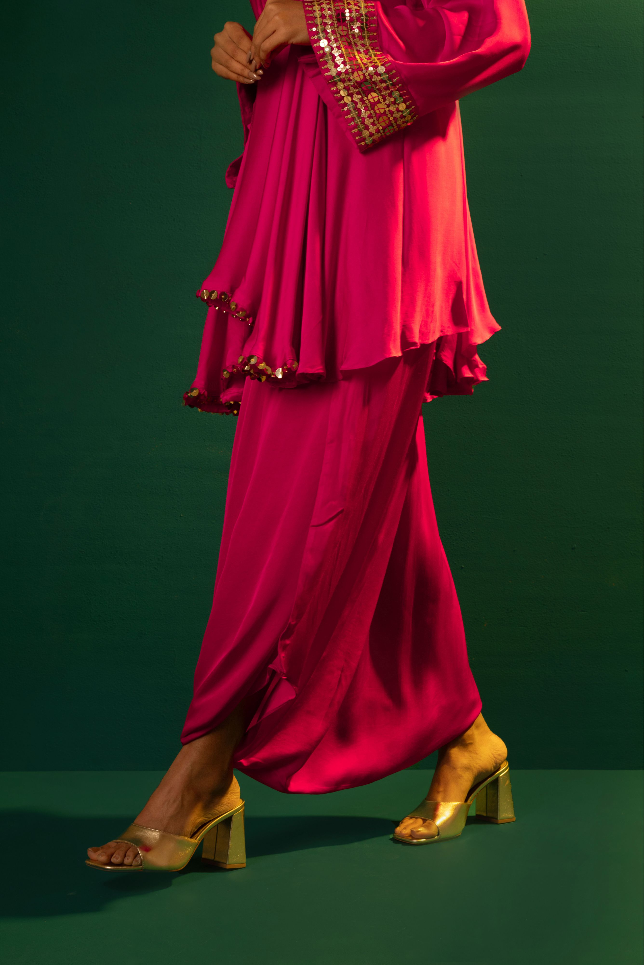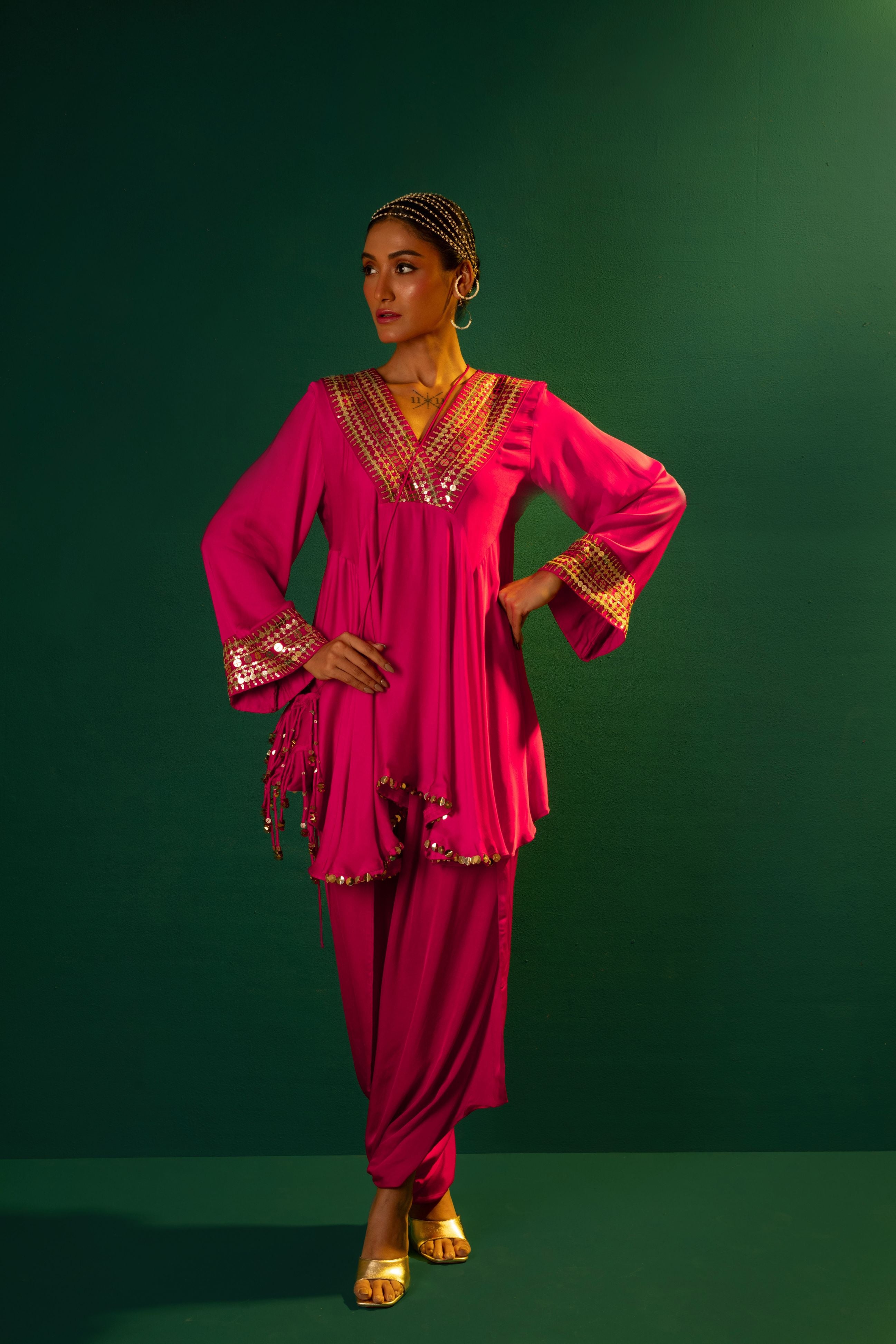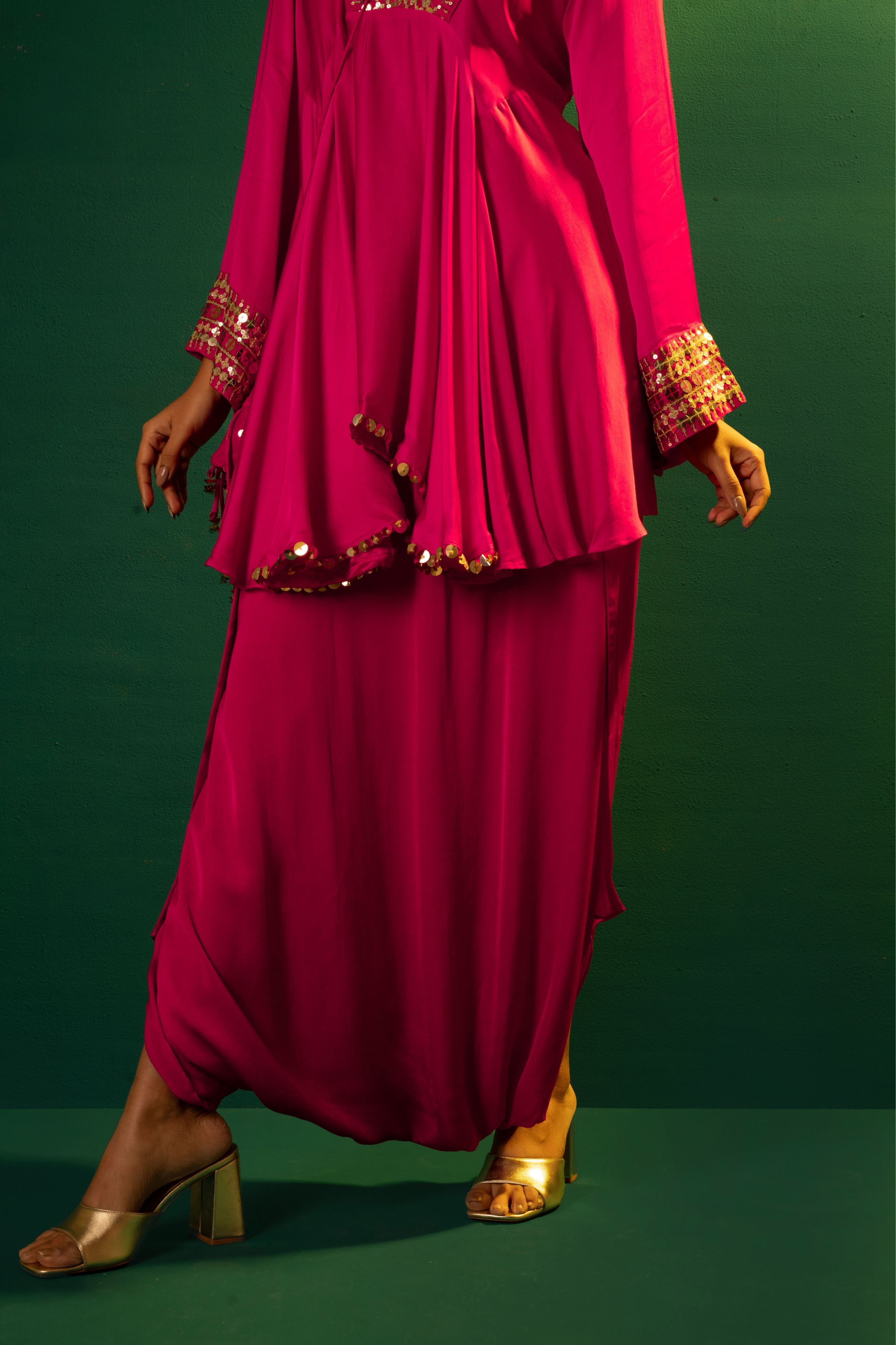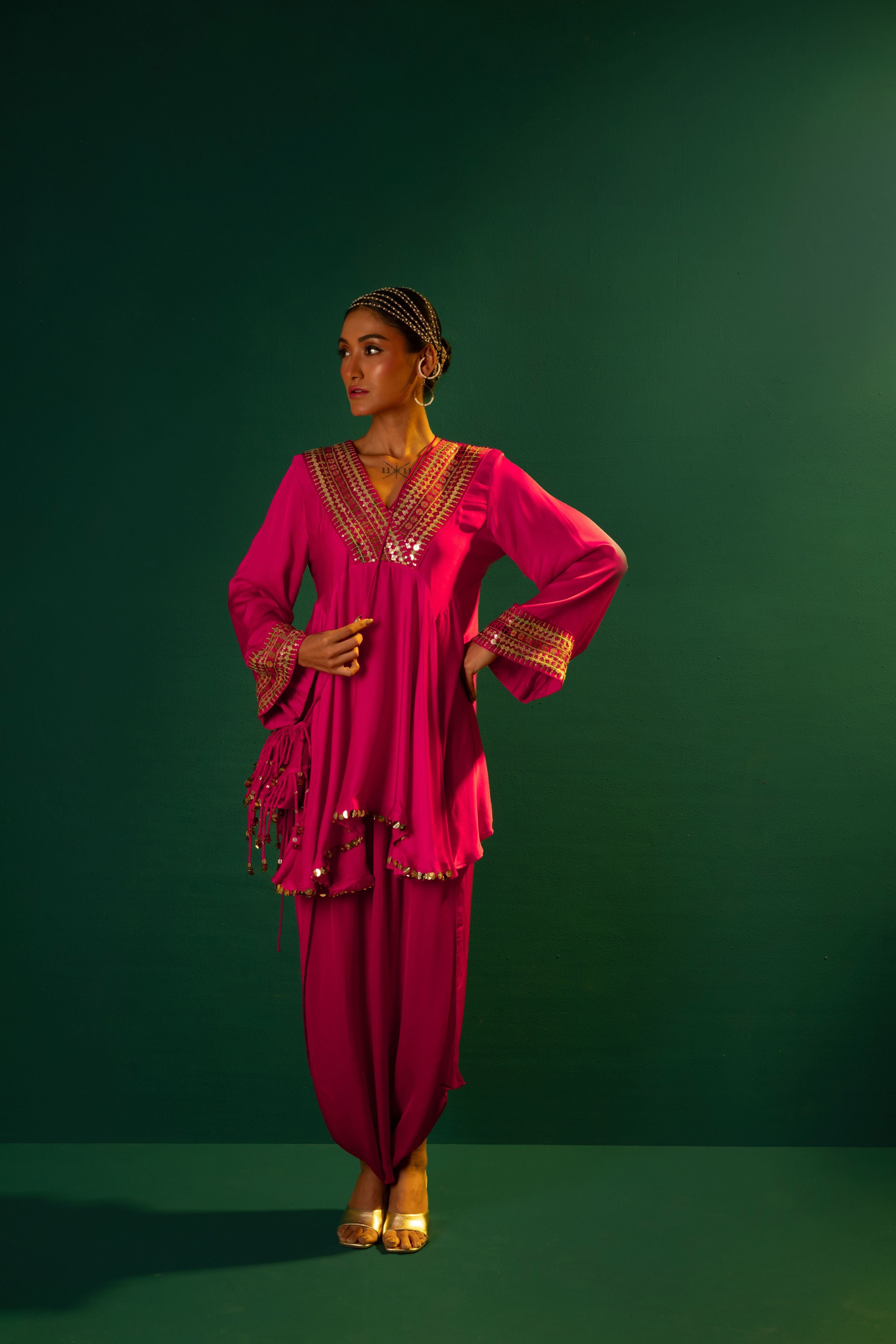 Chamakeen Ariyana Fuscia Asymmetrical Tunic with Dhoti Skirt