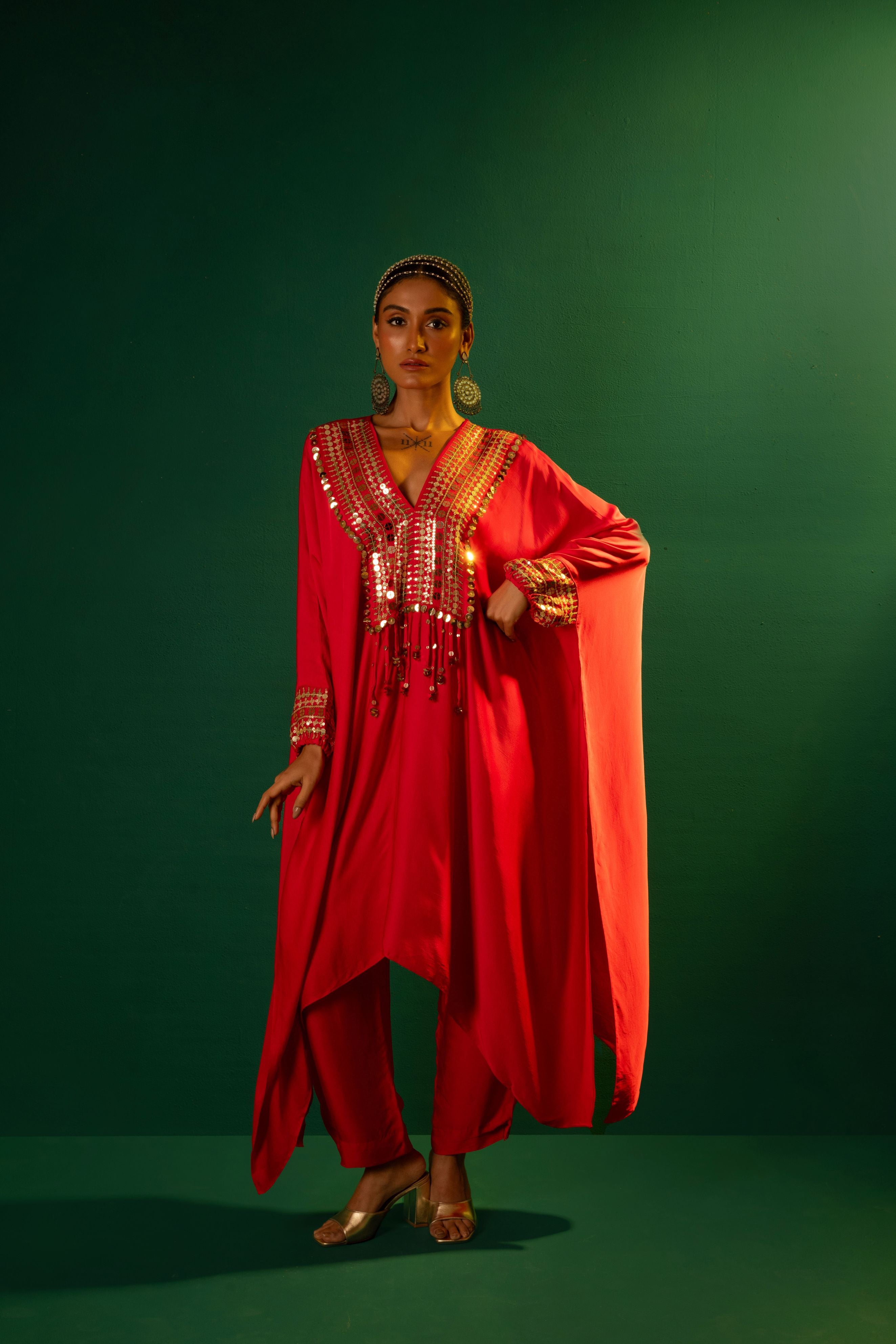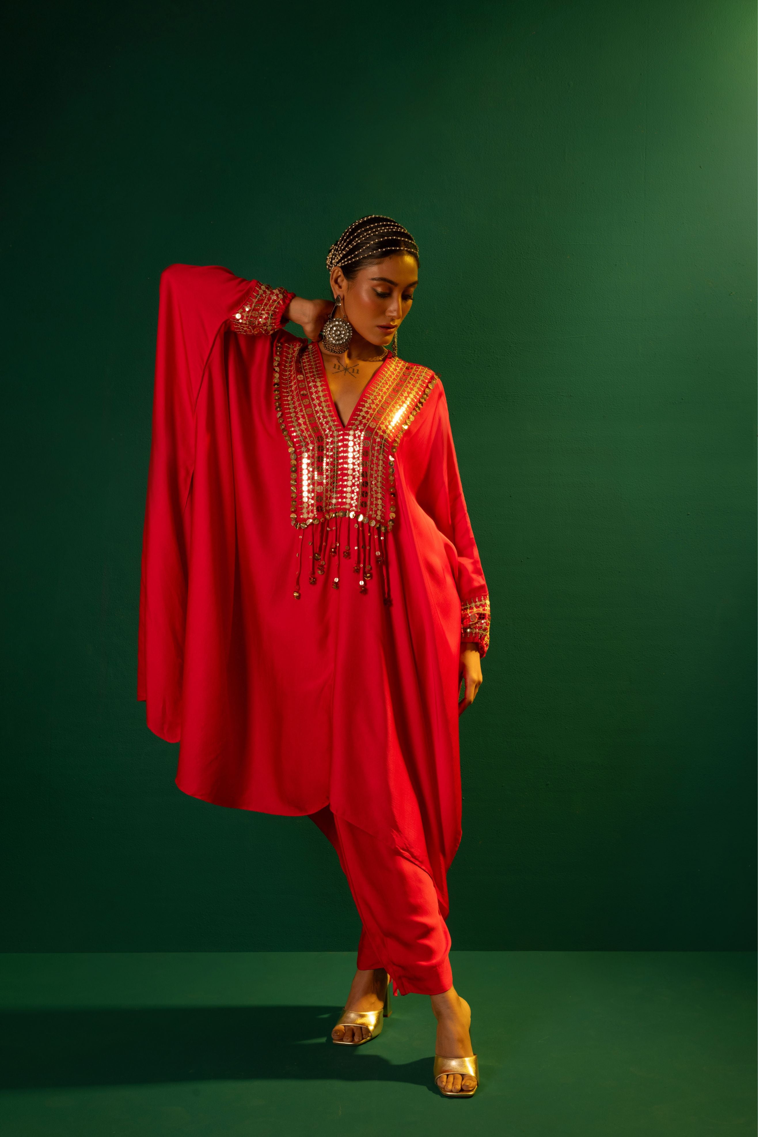Chamakeen Morrocon Red Kaftaan with Pants