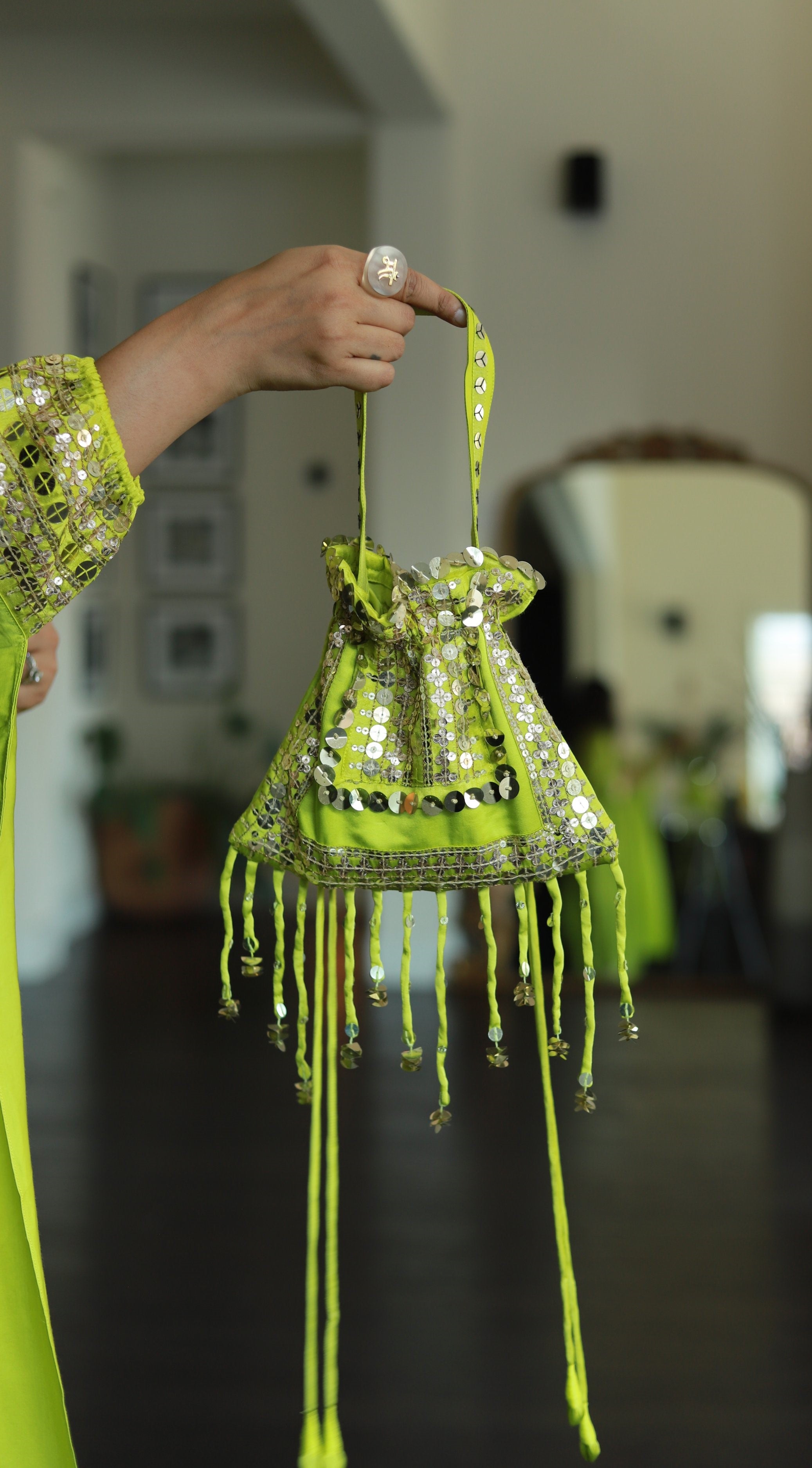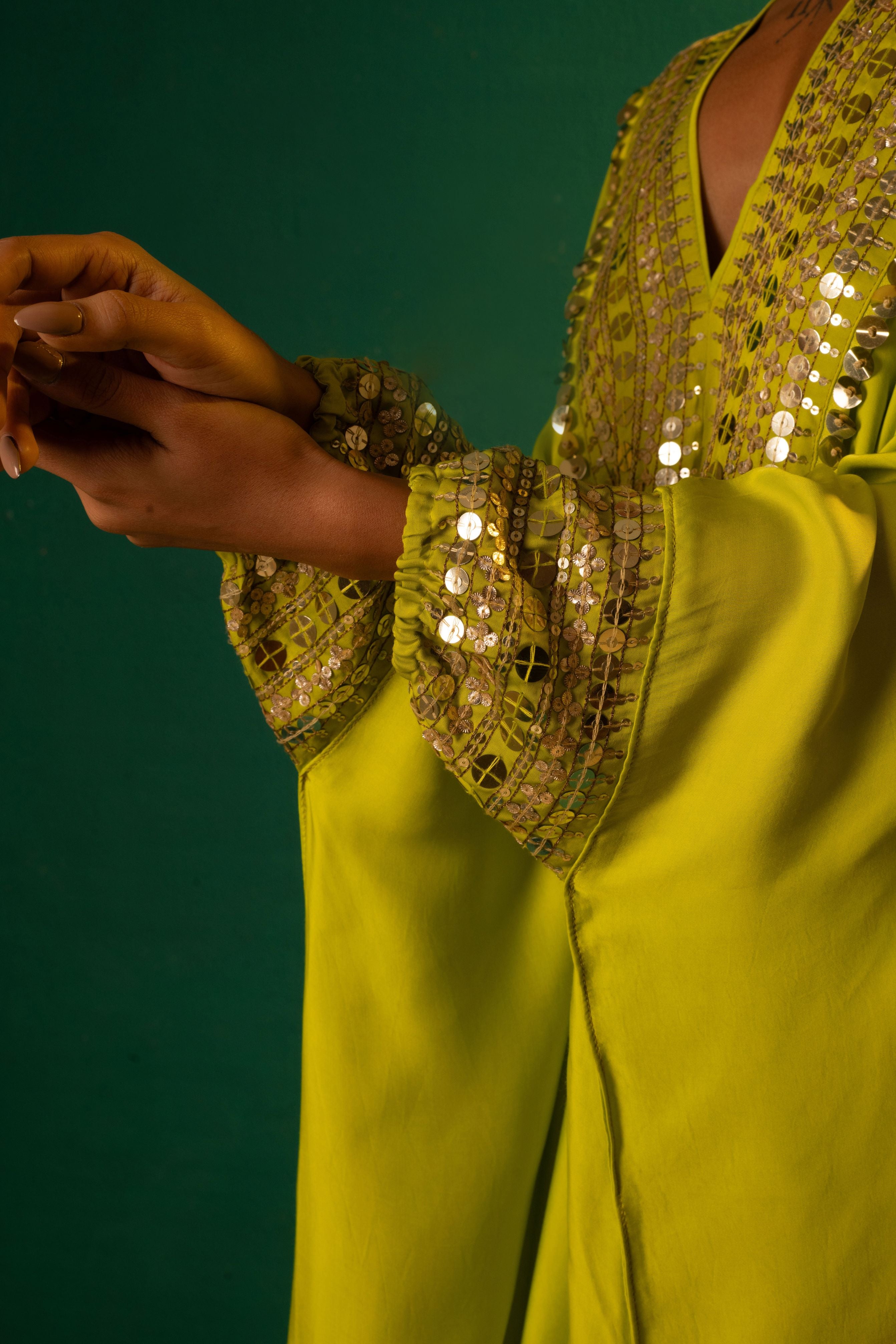 MISH Green Kaftan Set with Wrap Skirt