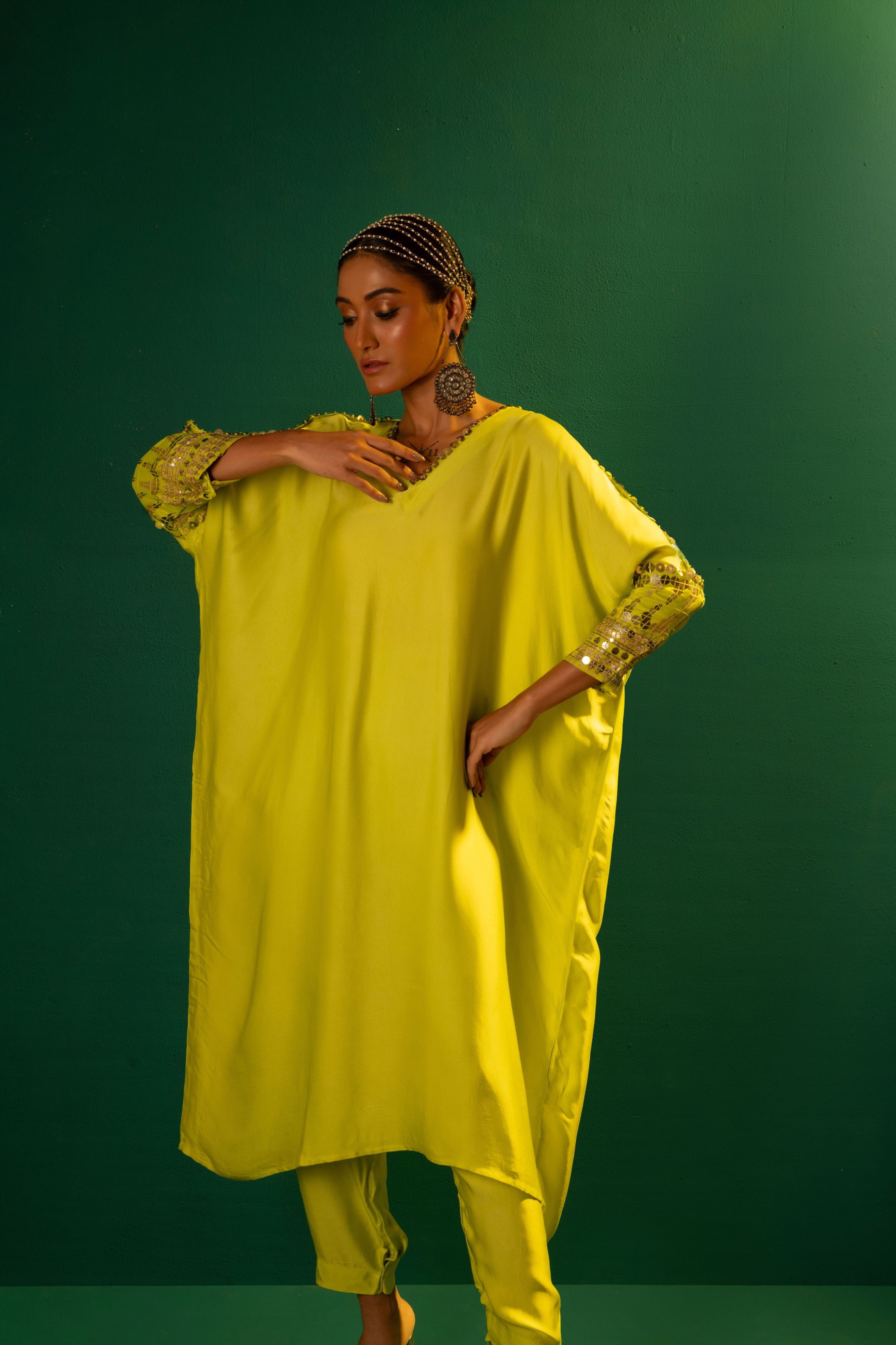 Seher Datta in Sublime Neon Kaftaan Set