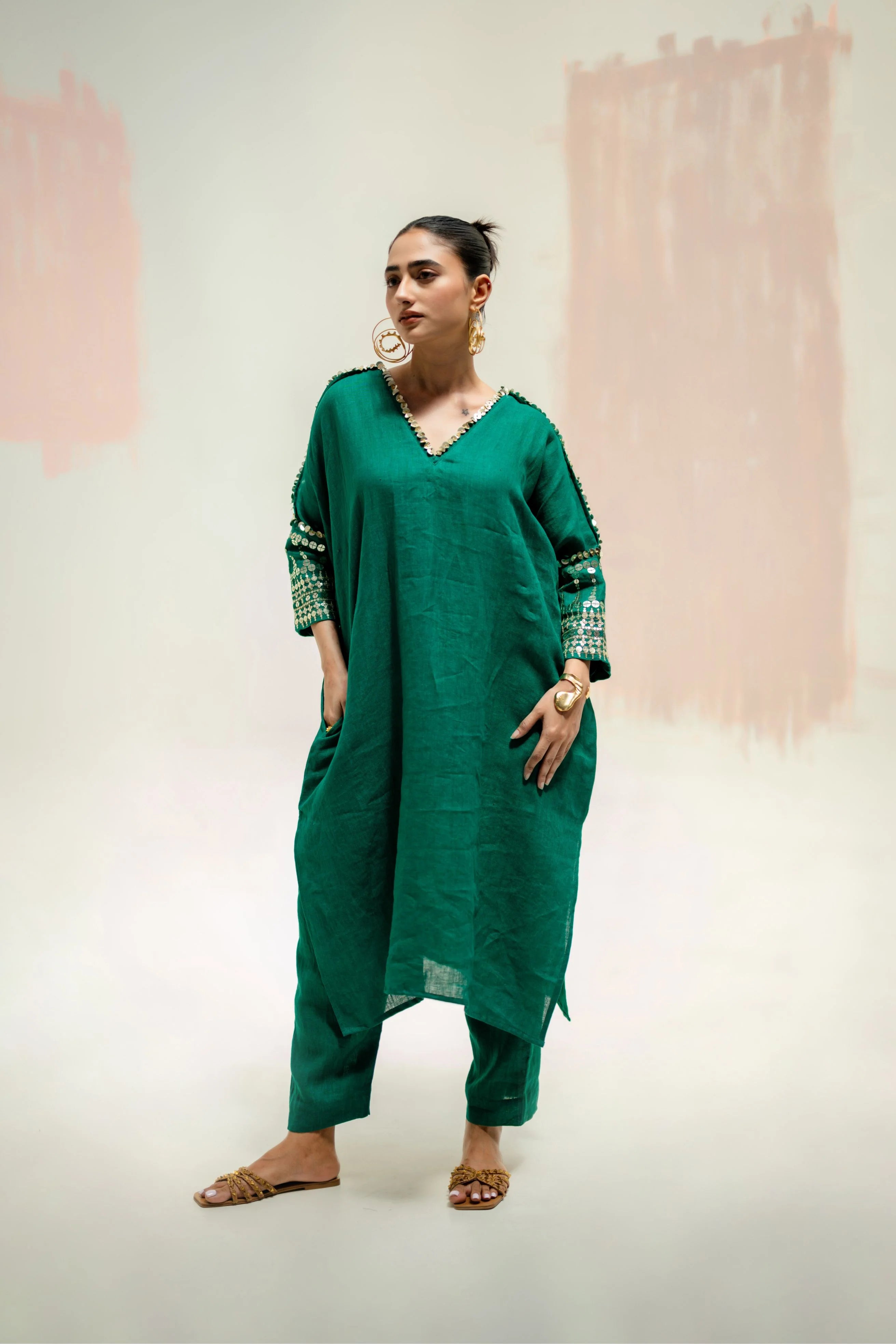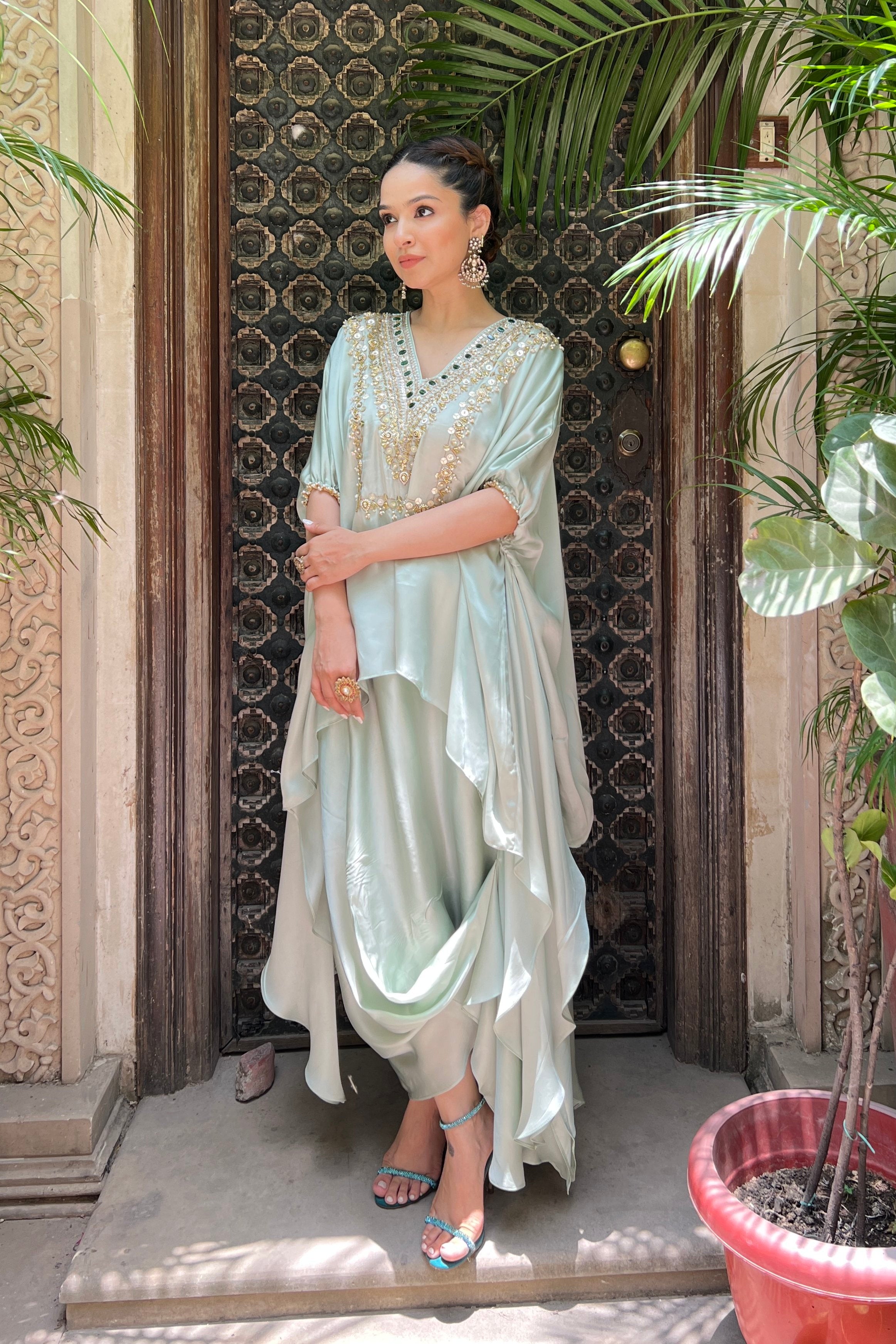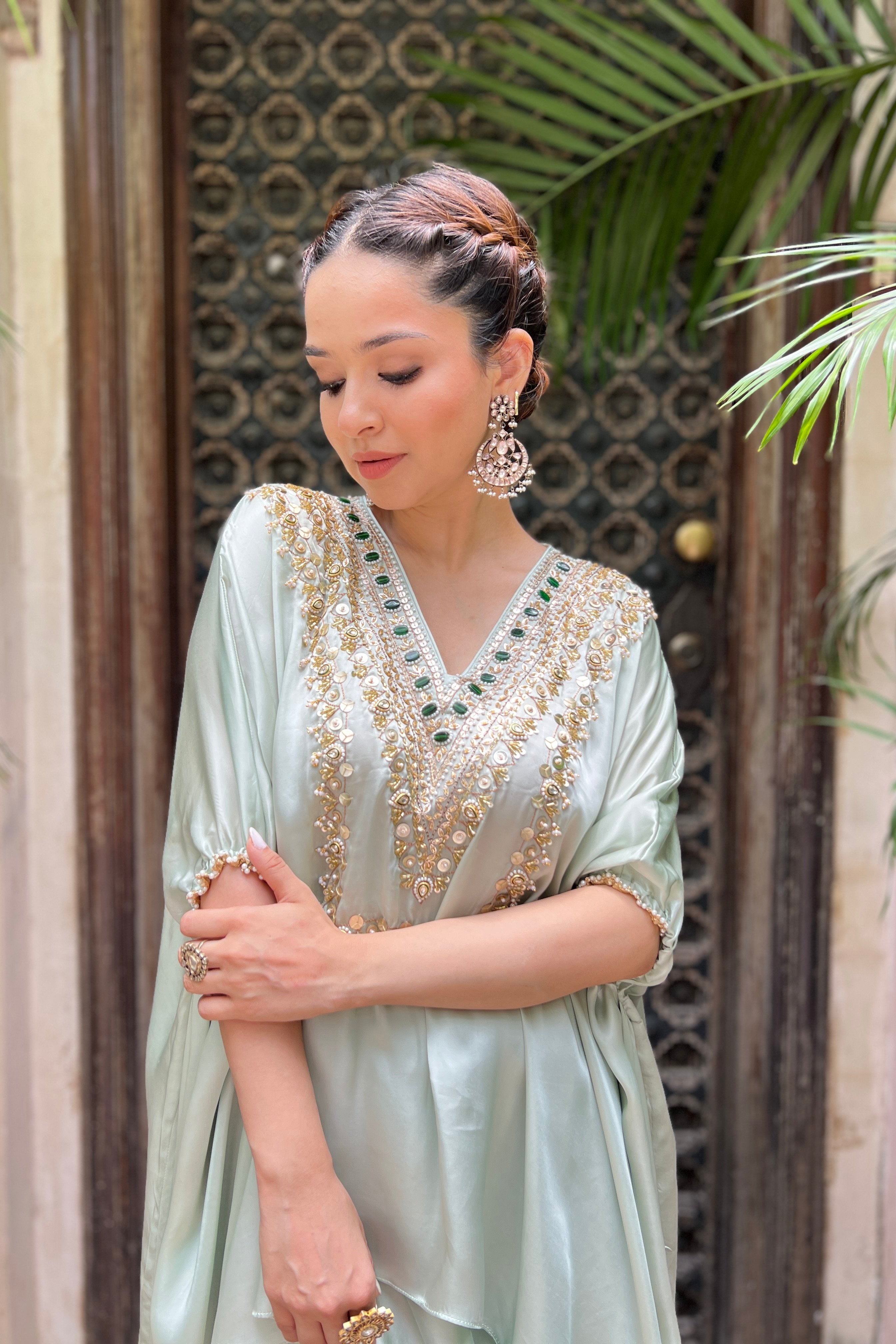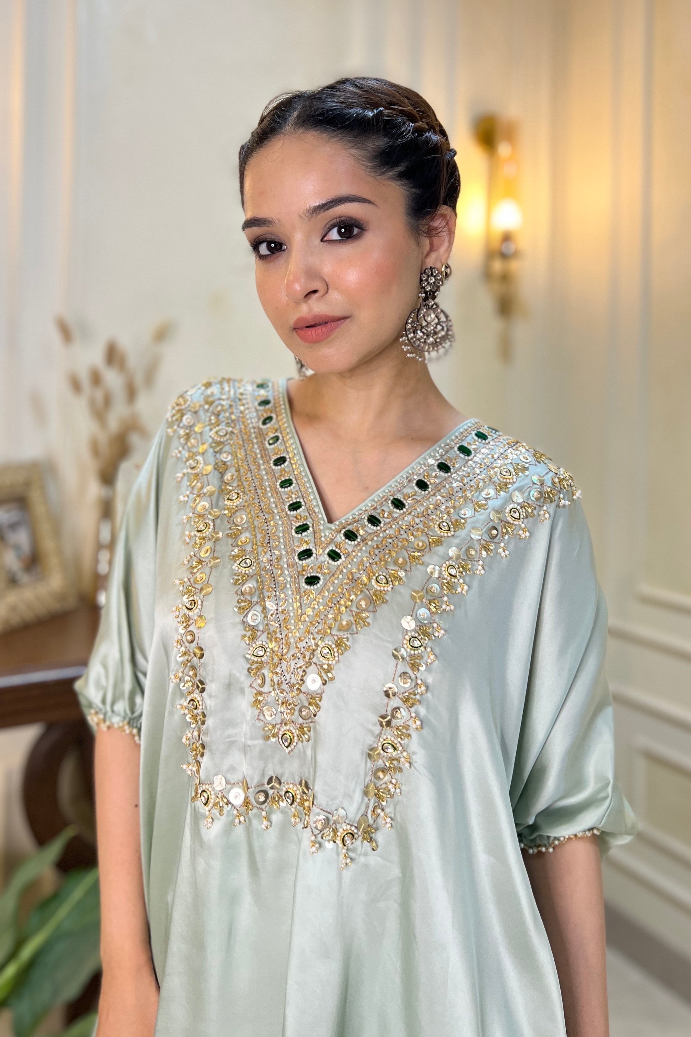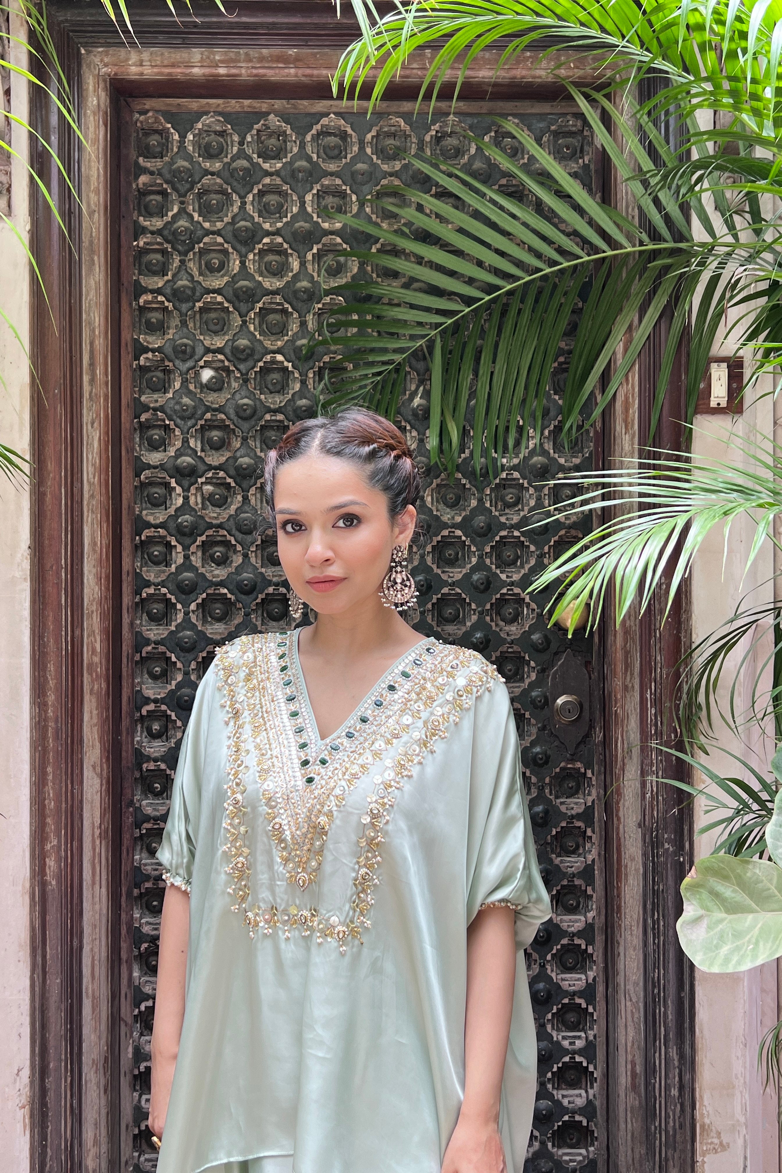 Mehel Kejriwal in Morrocon Sage Green Kaftaan Set