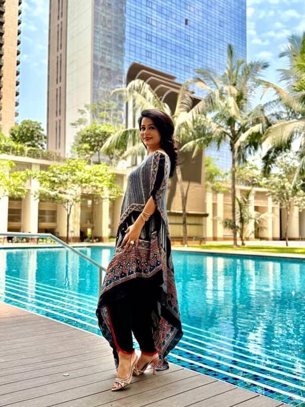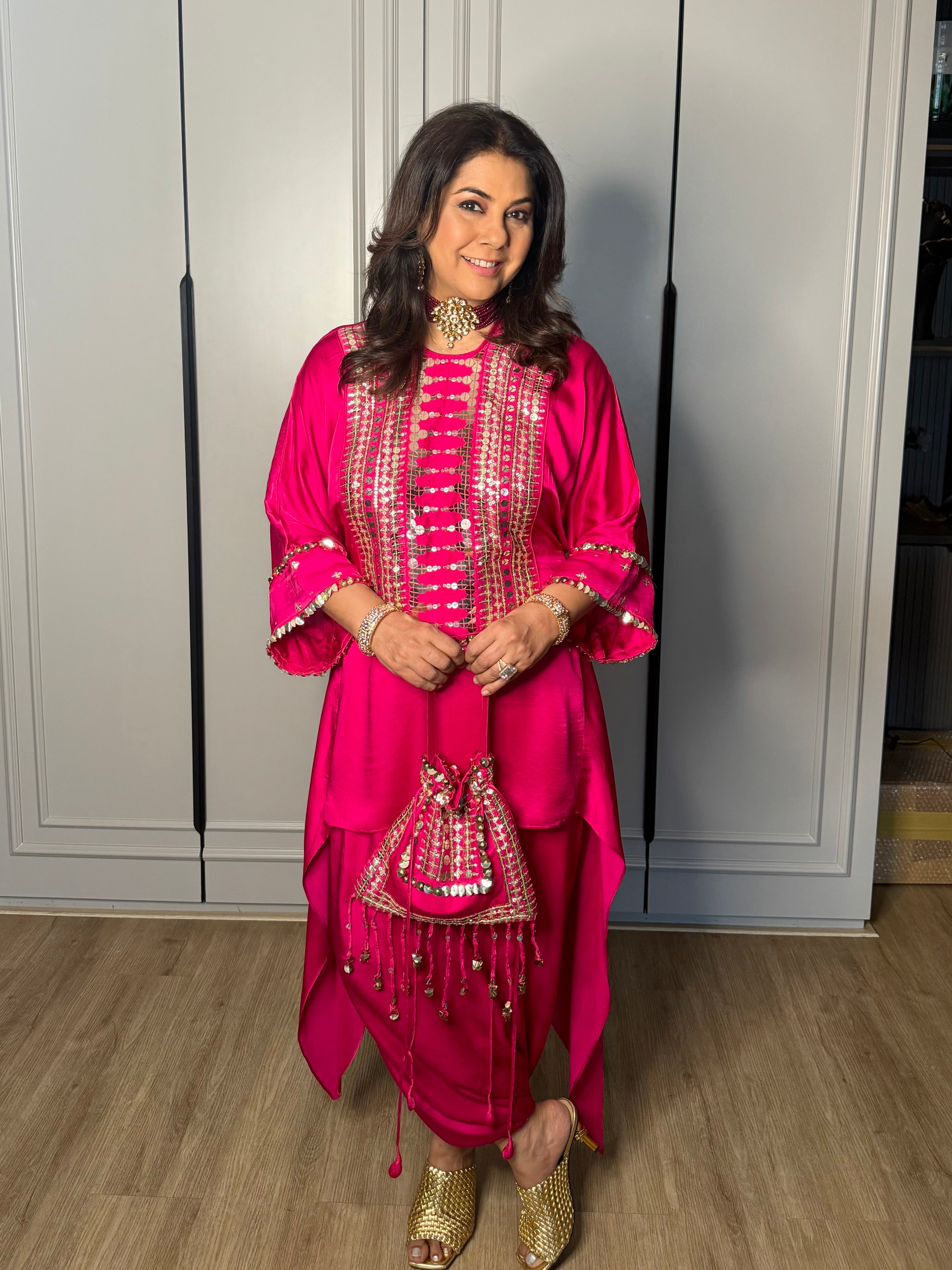 Bhavna Jasra in Chamakeen Tunic with Dhoti Skirt
