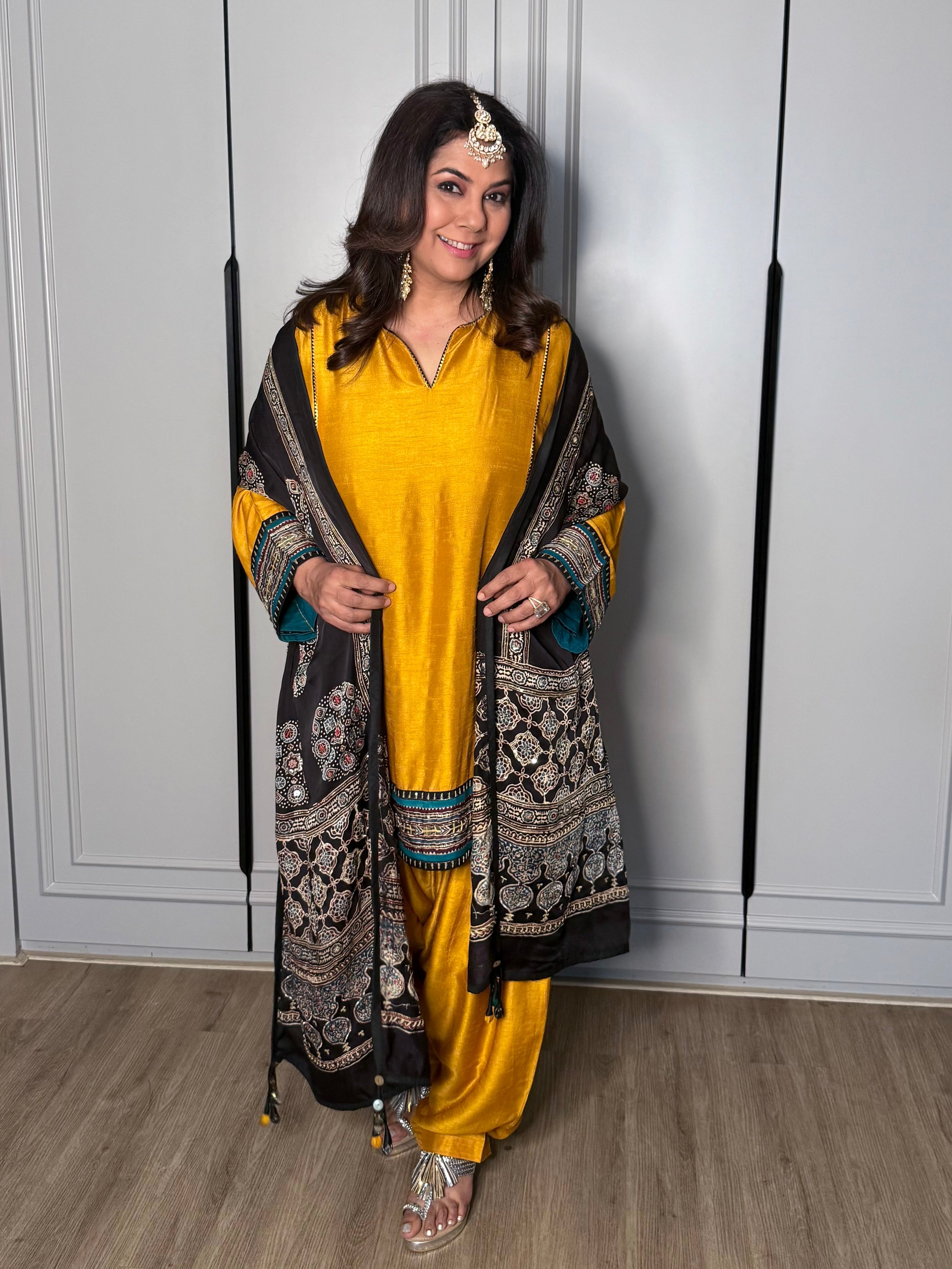 Bhavna Jasra in Pherie Mustard Salwaar Kameez and Dupatta Set
