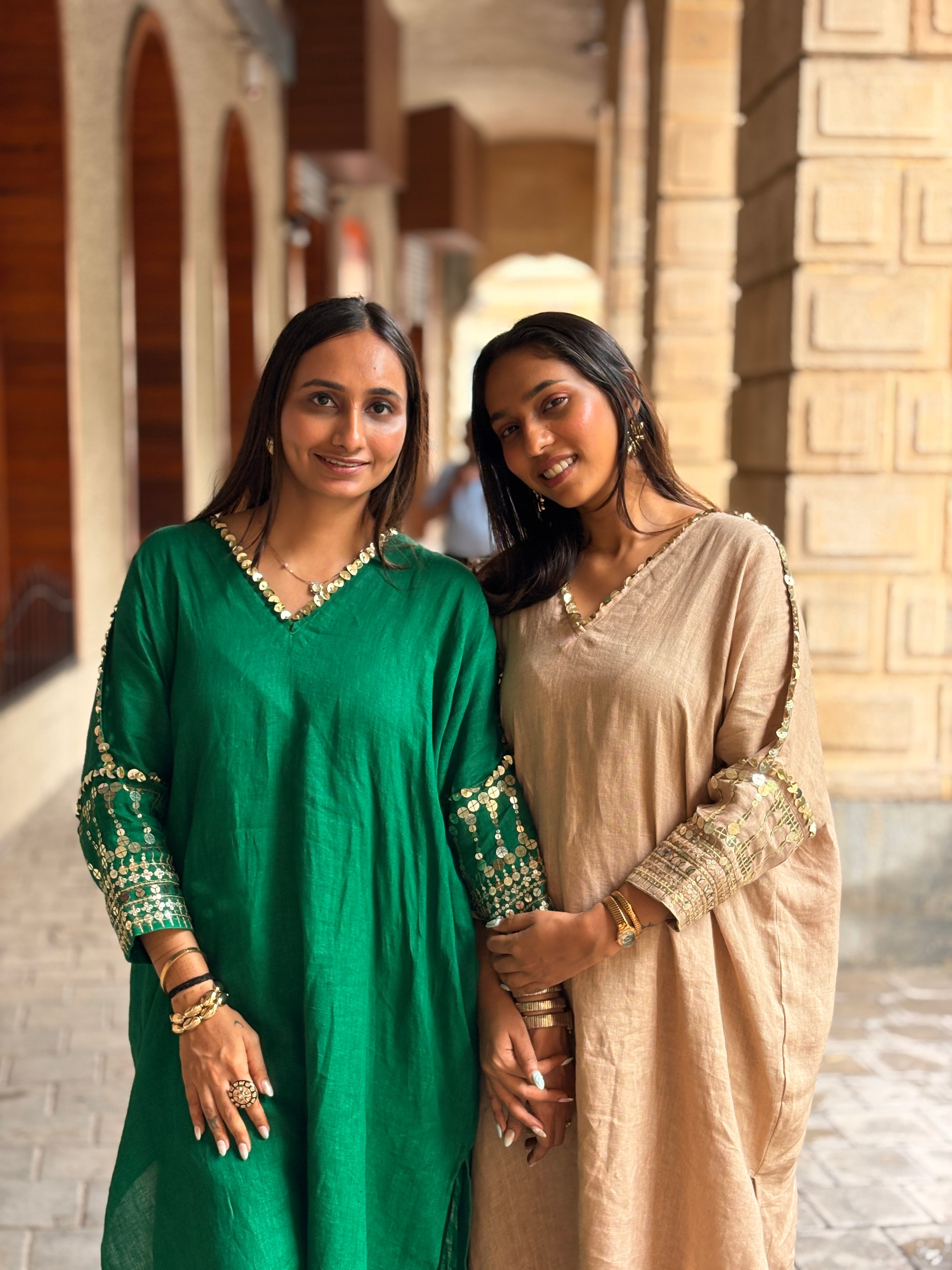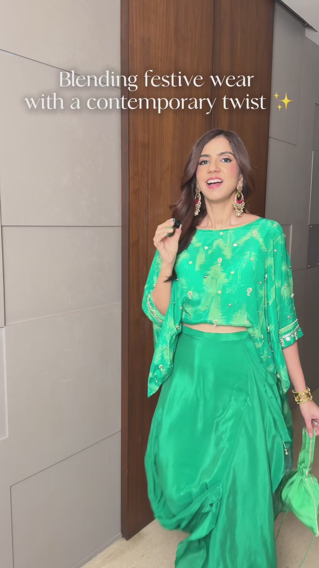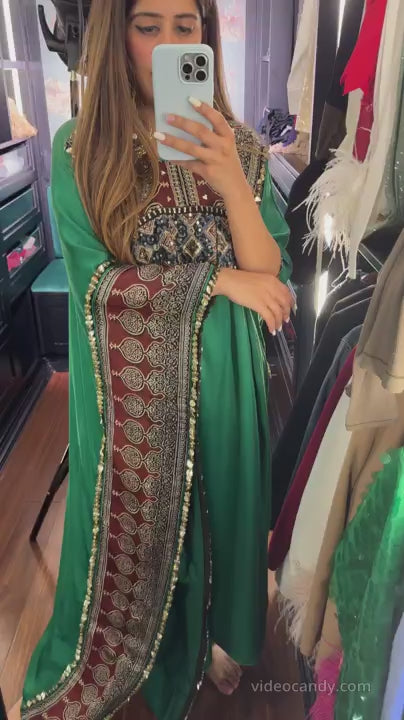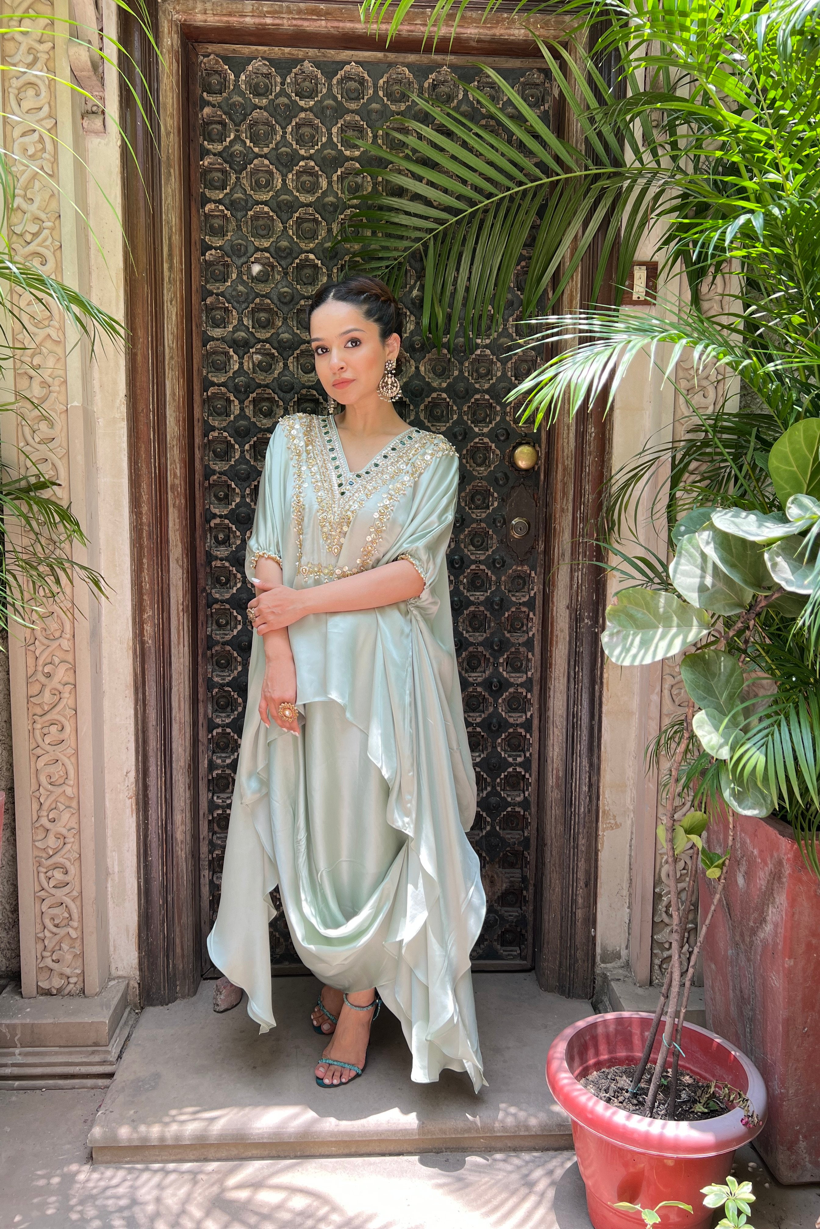 Rimple Bhandari in Morrocon Green Kaftaan with Tie Up Wrap Skirt