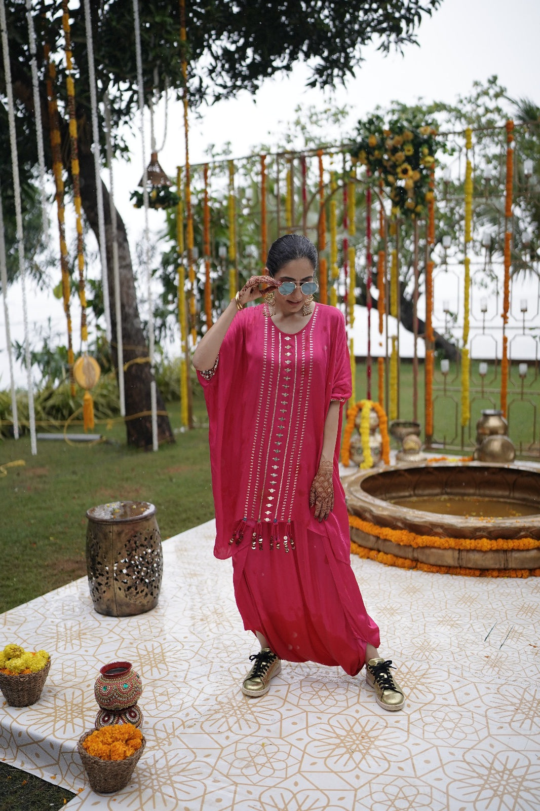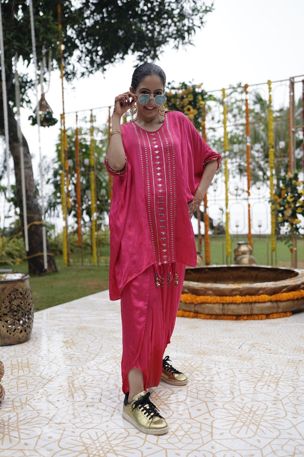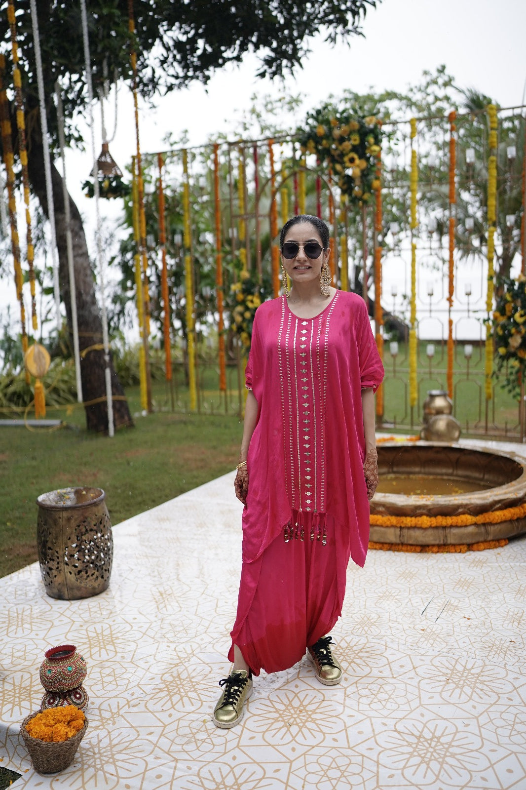 Diksha in Pink Asymmetric Kaftaan with Pants
