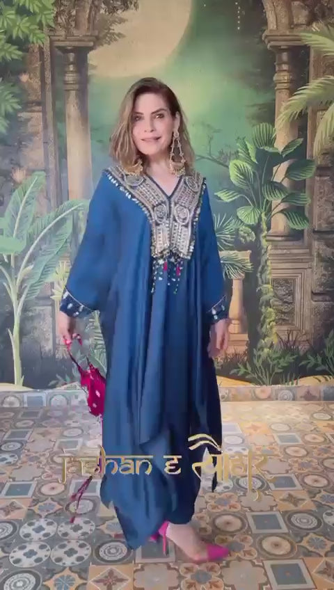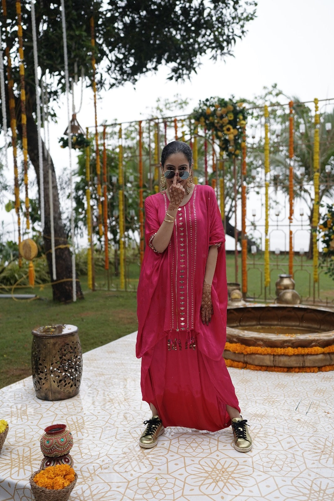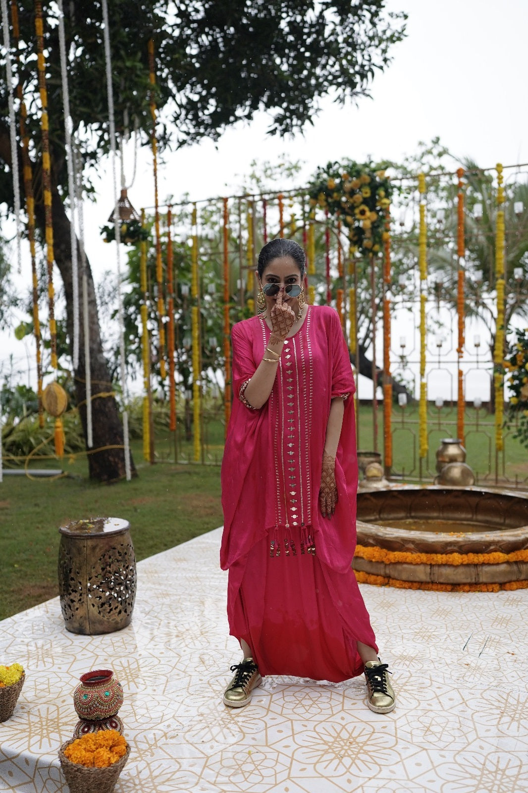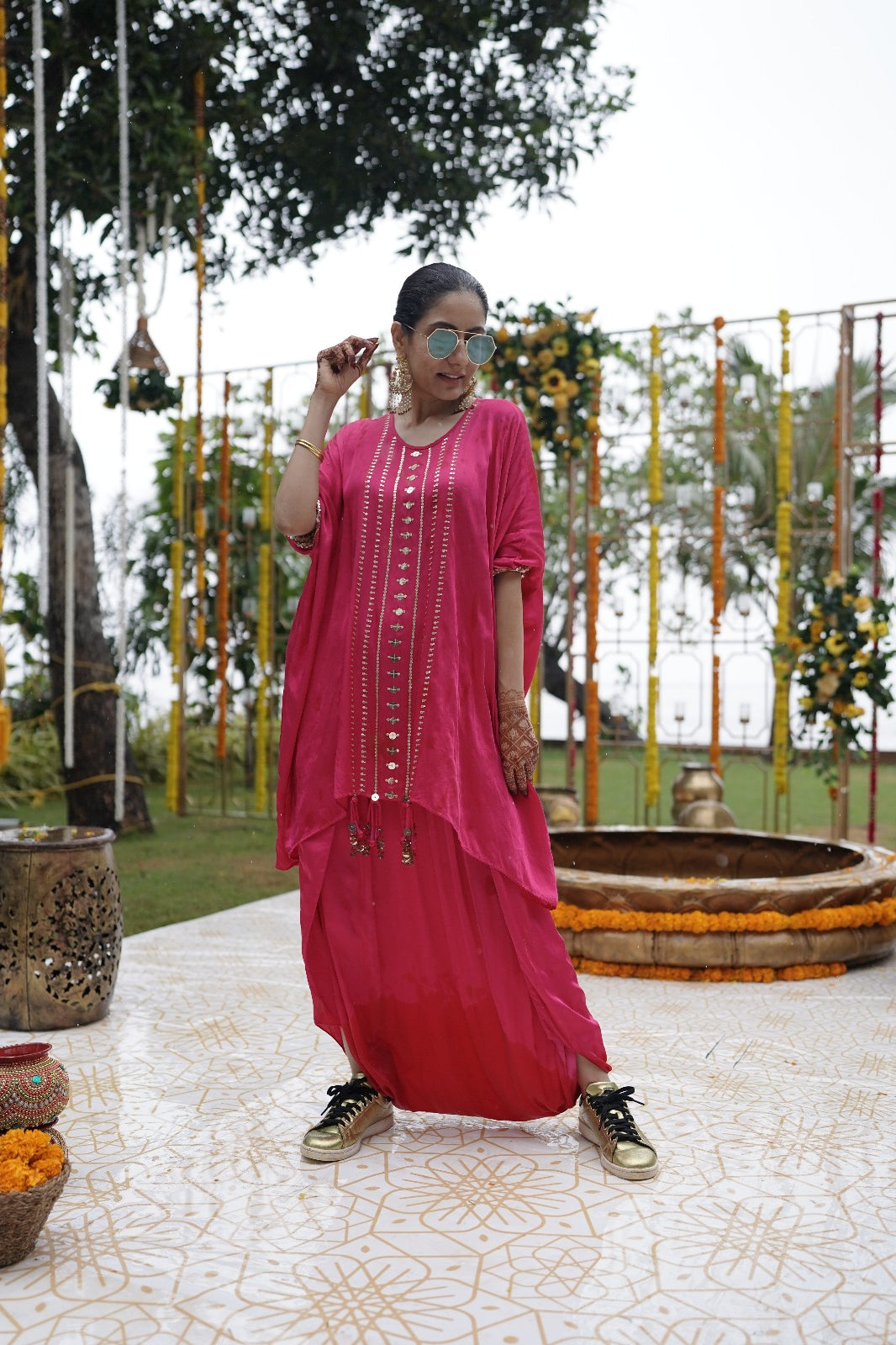 Diksha in Pink Asymmetric Kaftaan with Pants