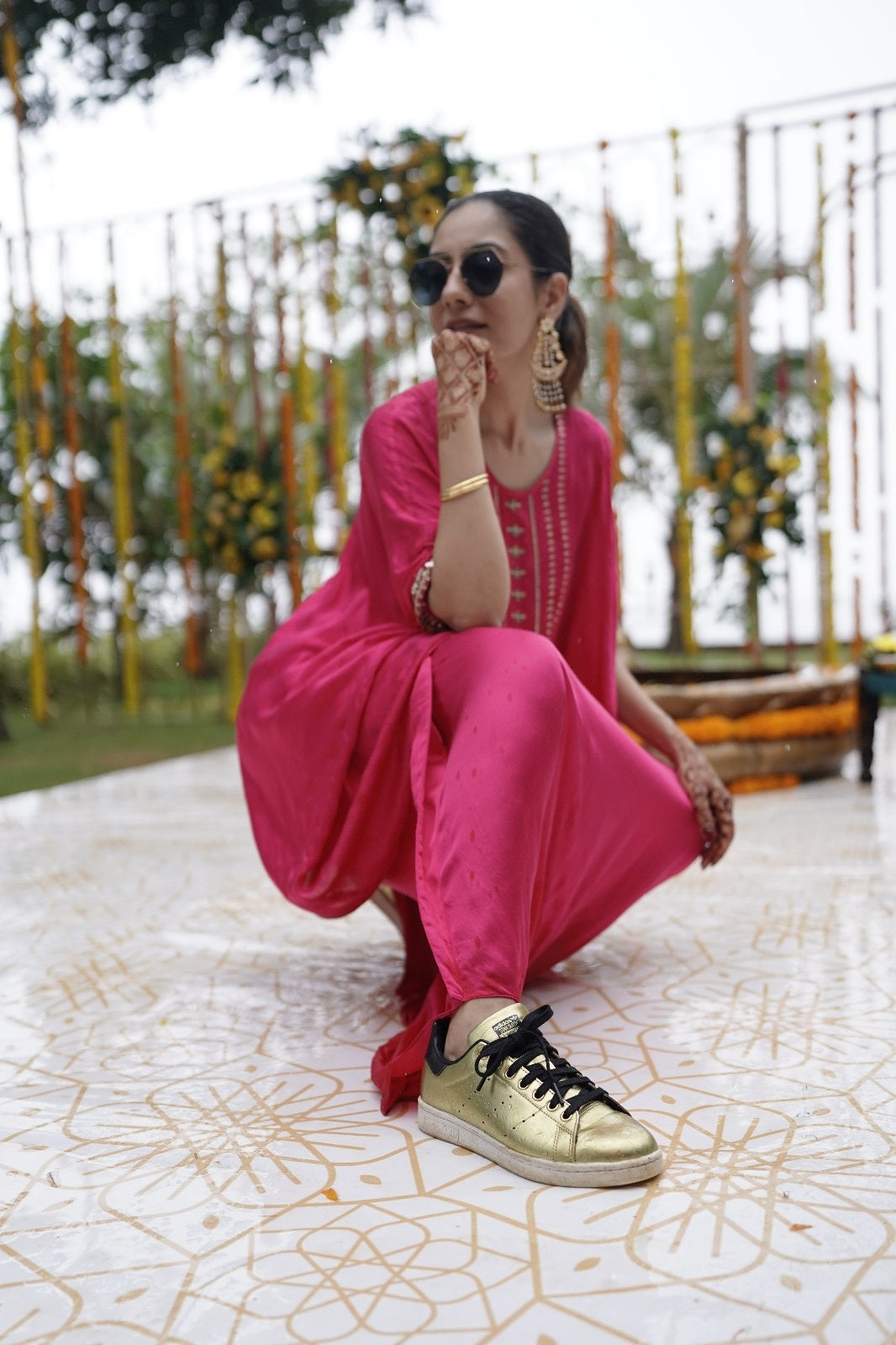 Suhana Sethi in Pink Kurta Set with Dhoti Skirt