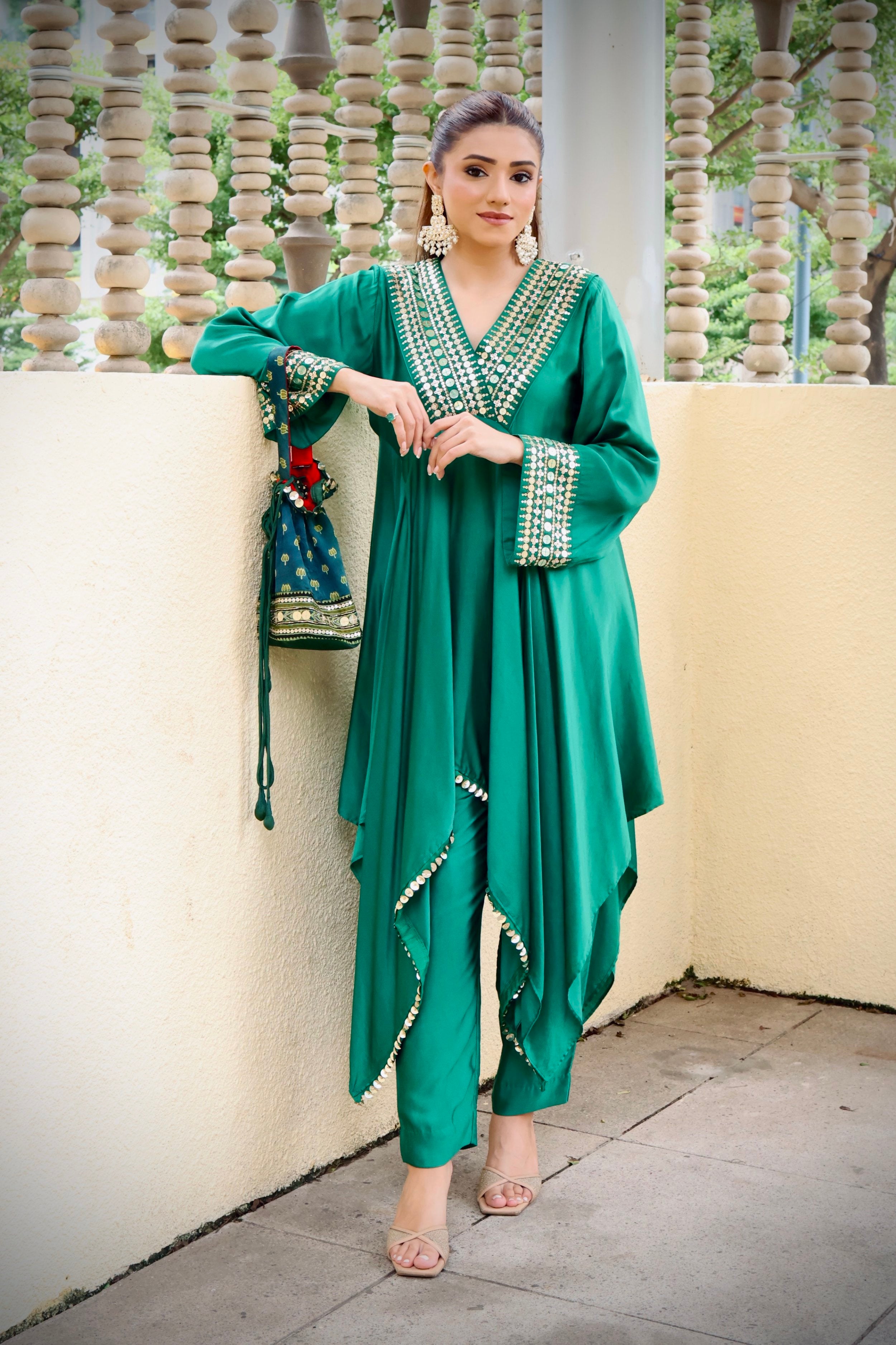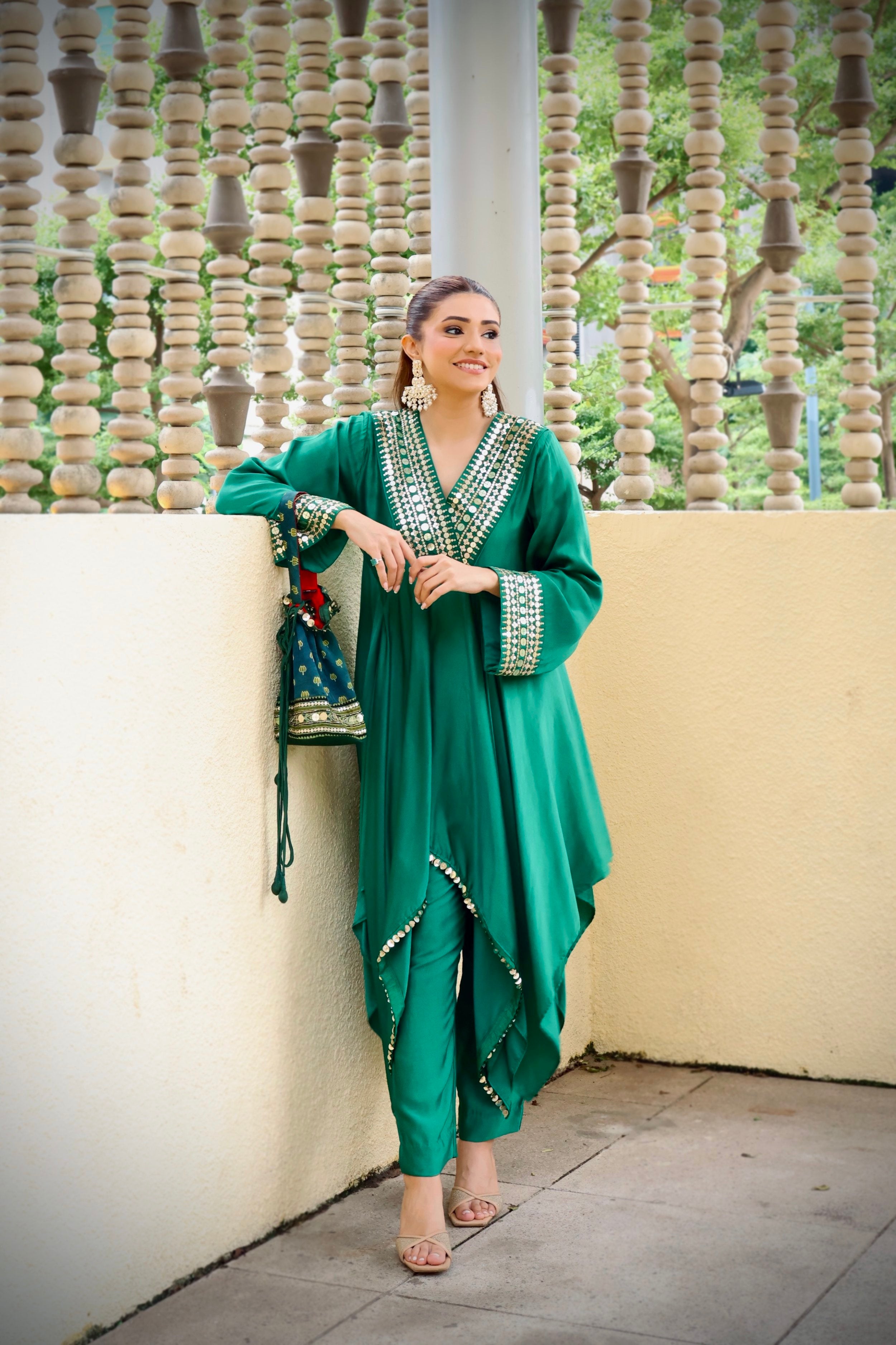 Rashi Dongre Khetwani in Morrocon Green Kaftaan with Pants