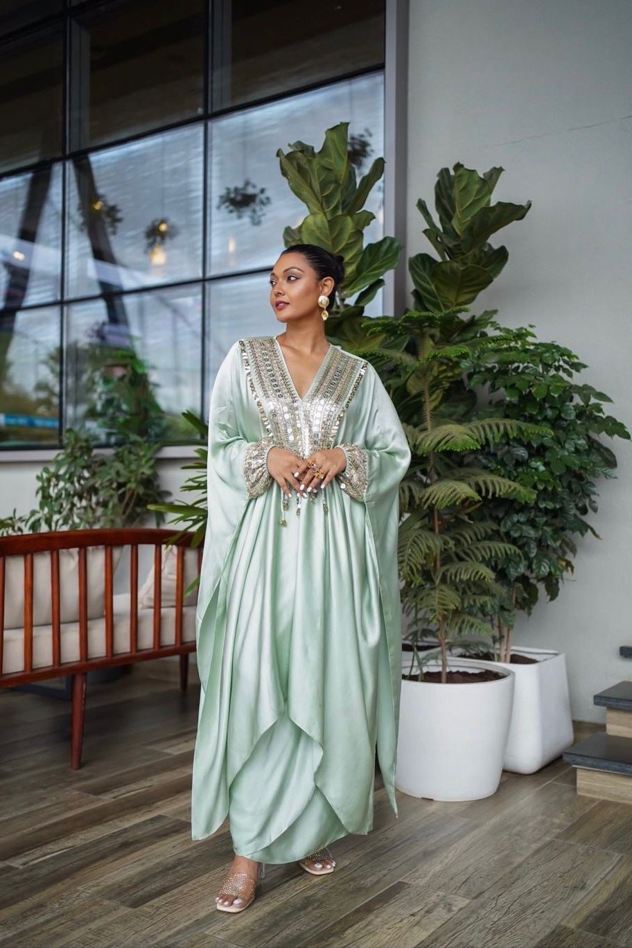 Rupa Deb in Morrocon Sage Green Kaftaan Set