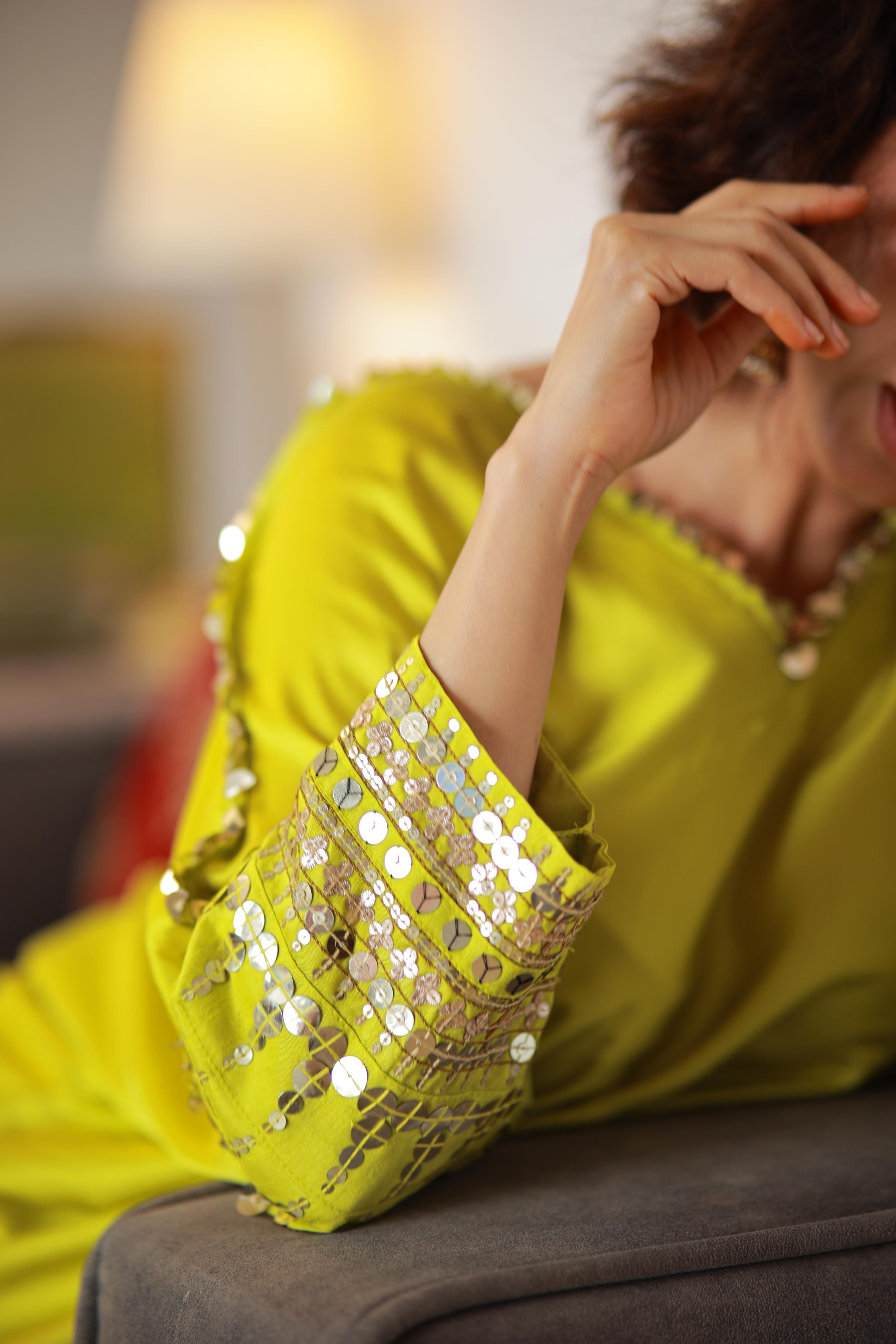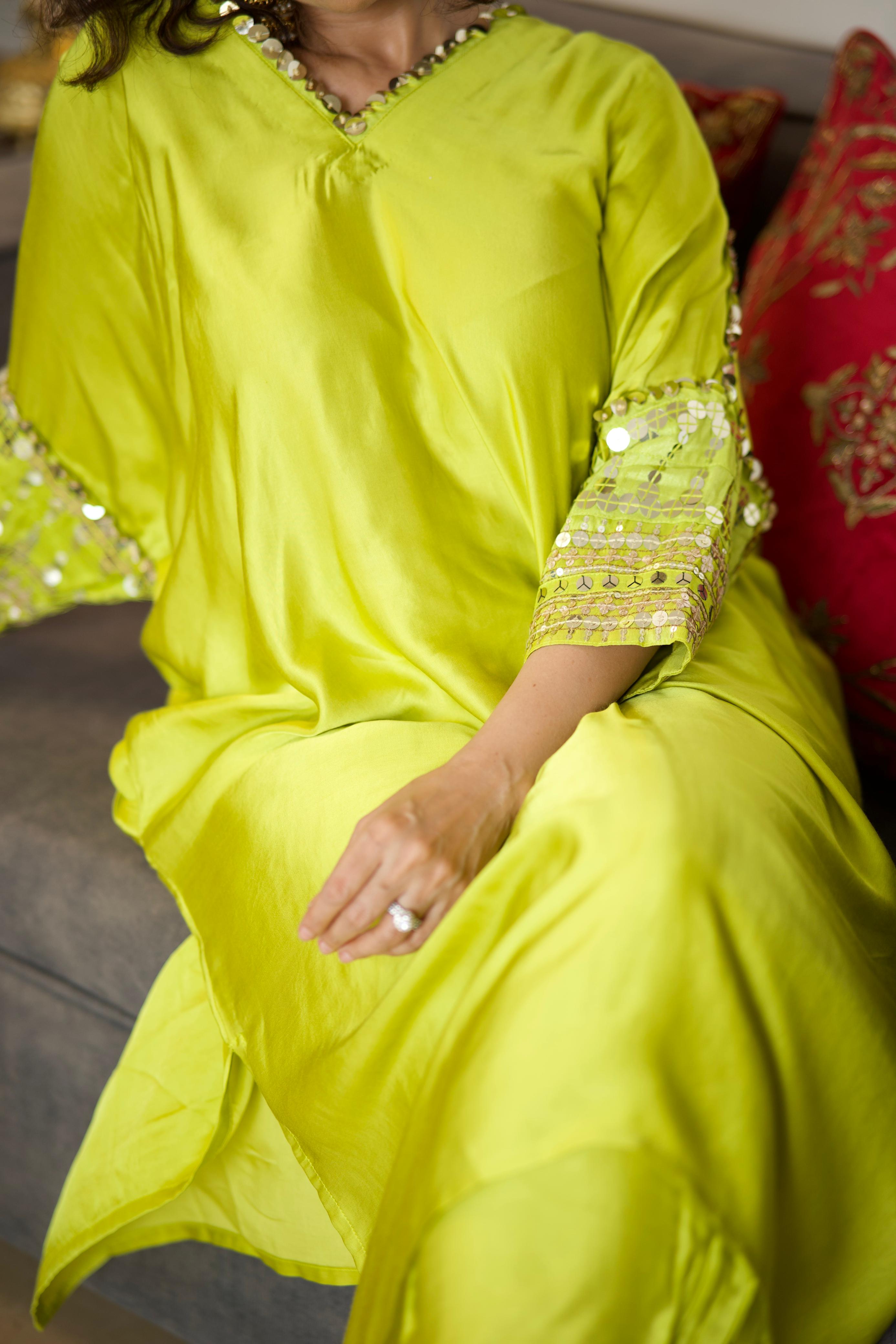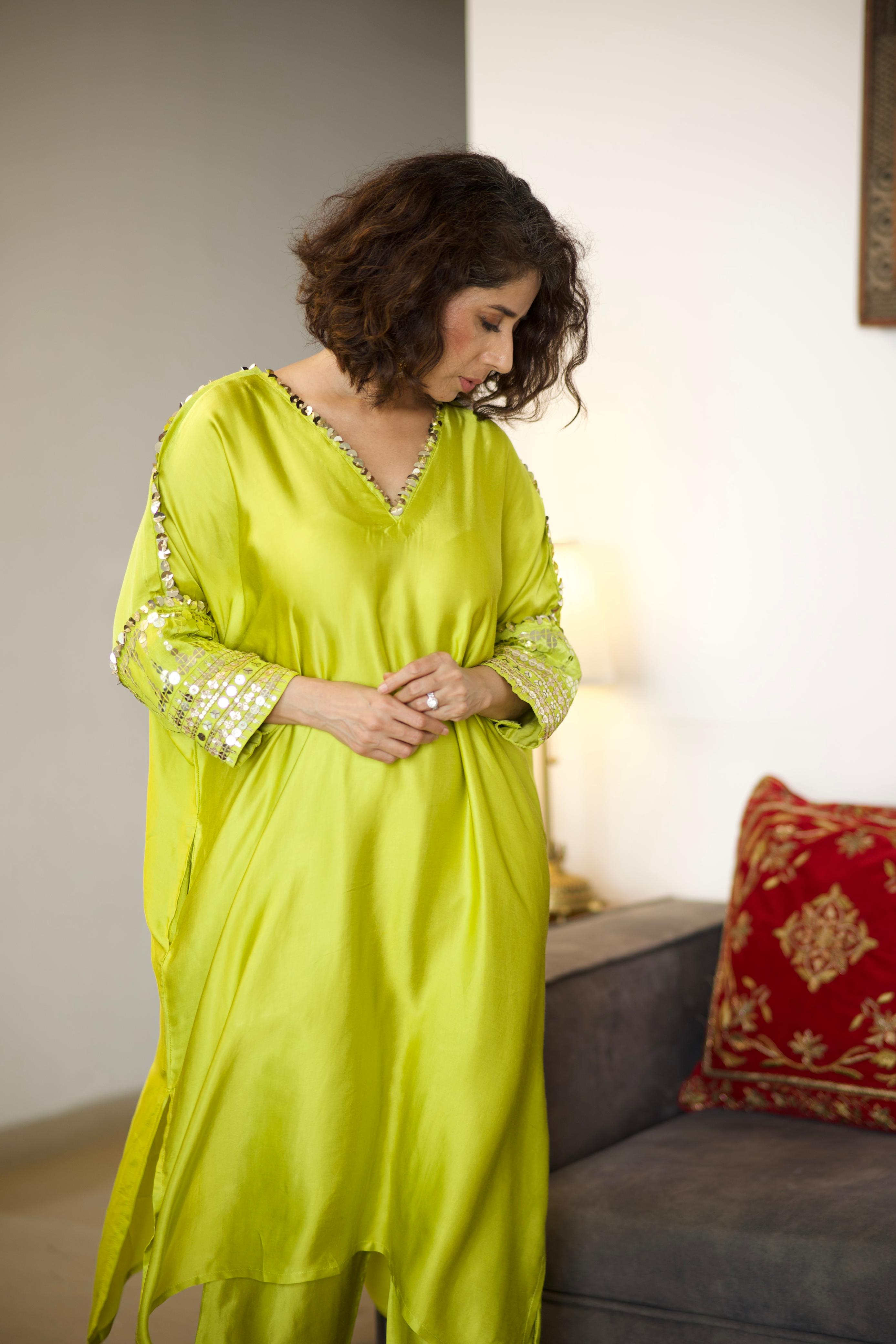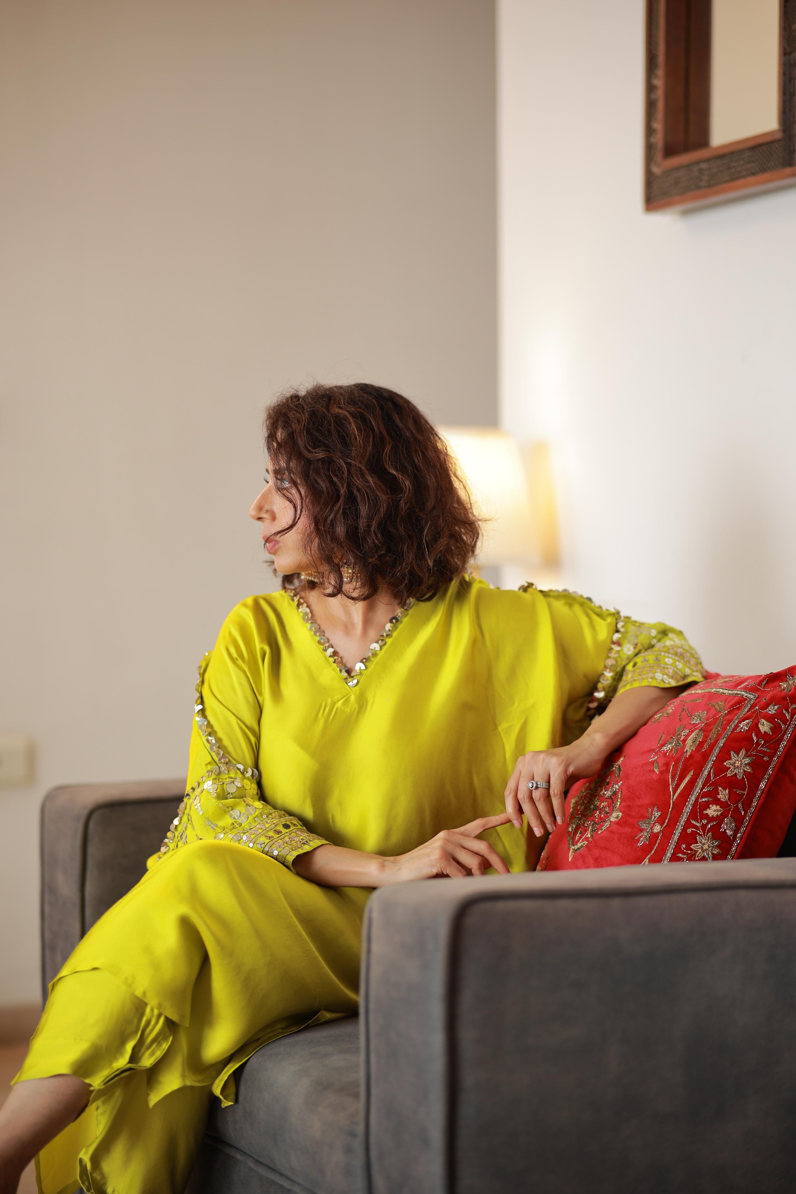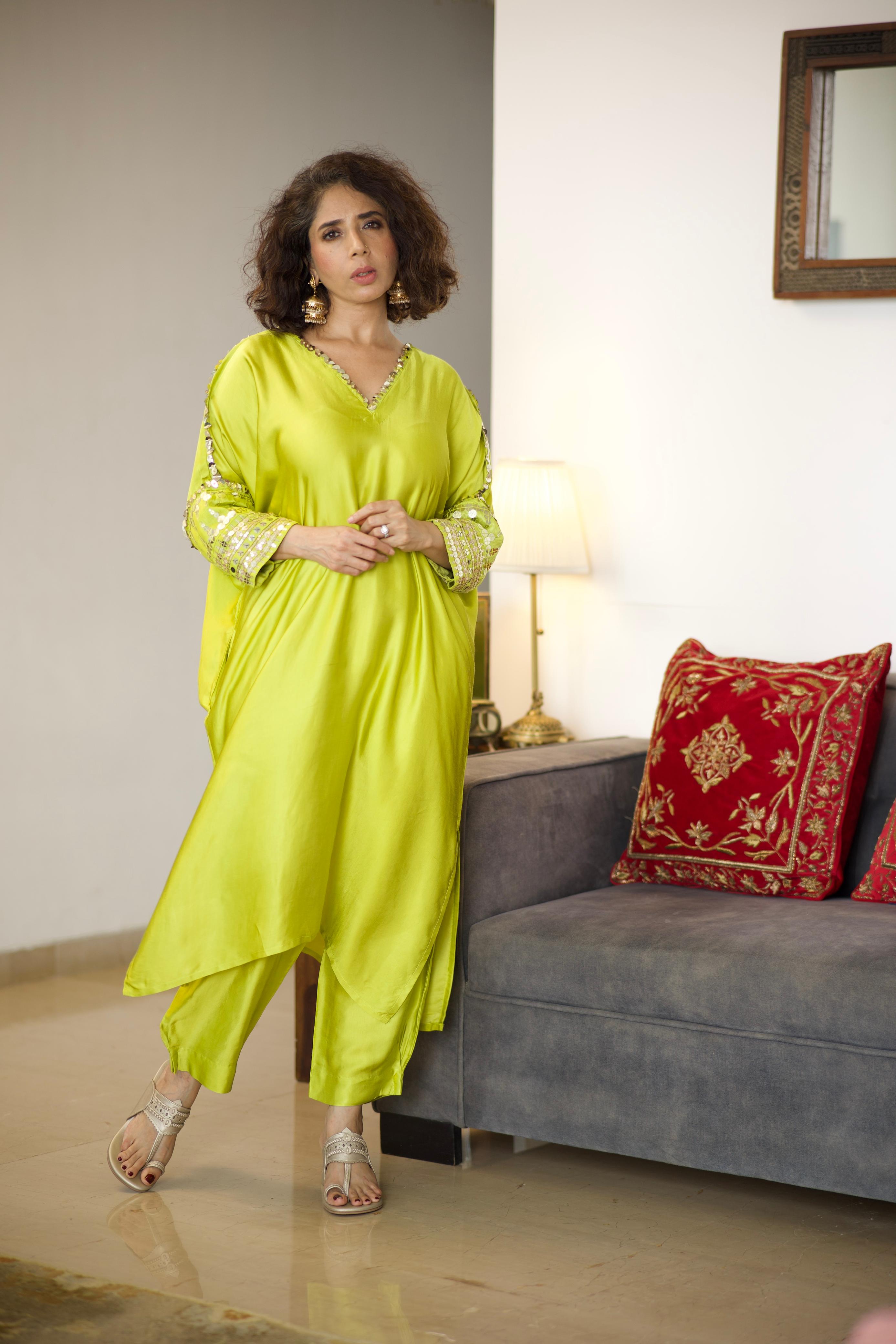 Mitali Wadhwa in Neon Green Antifit Kurta Set