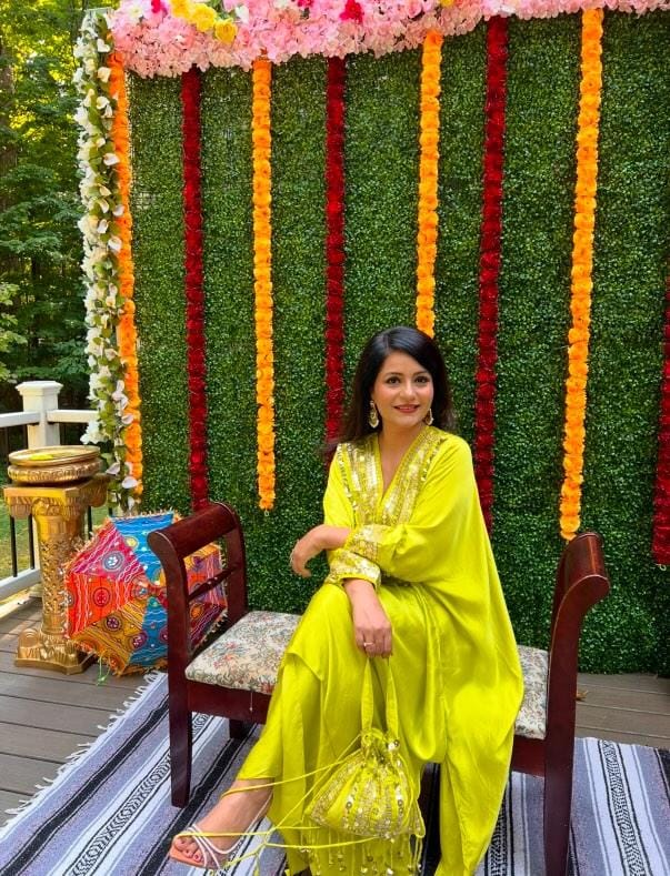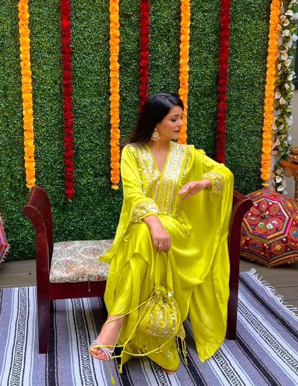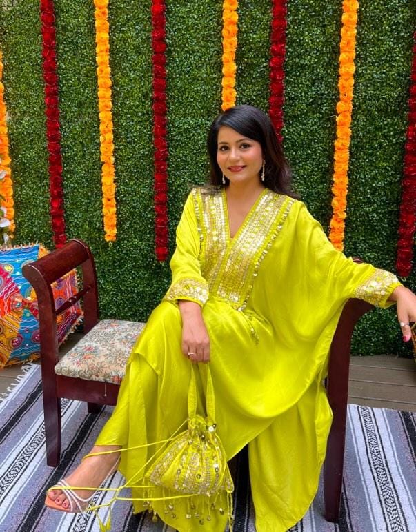 Simran Chawla in Neon Kaftaan with Wrap Skirt