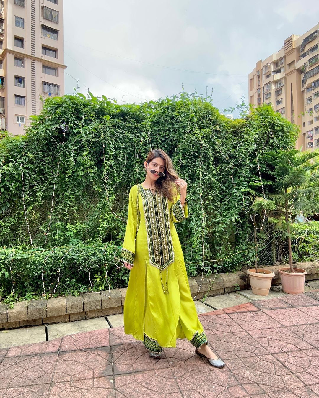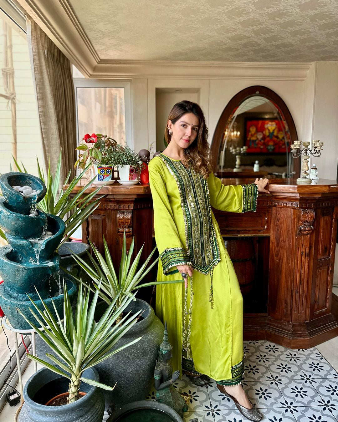 Seema Puri in Saba Green Kurta Set with Dhoti Skirt
