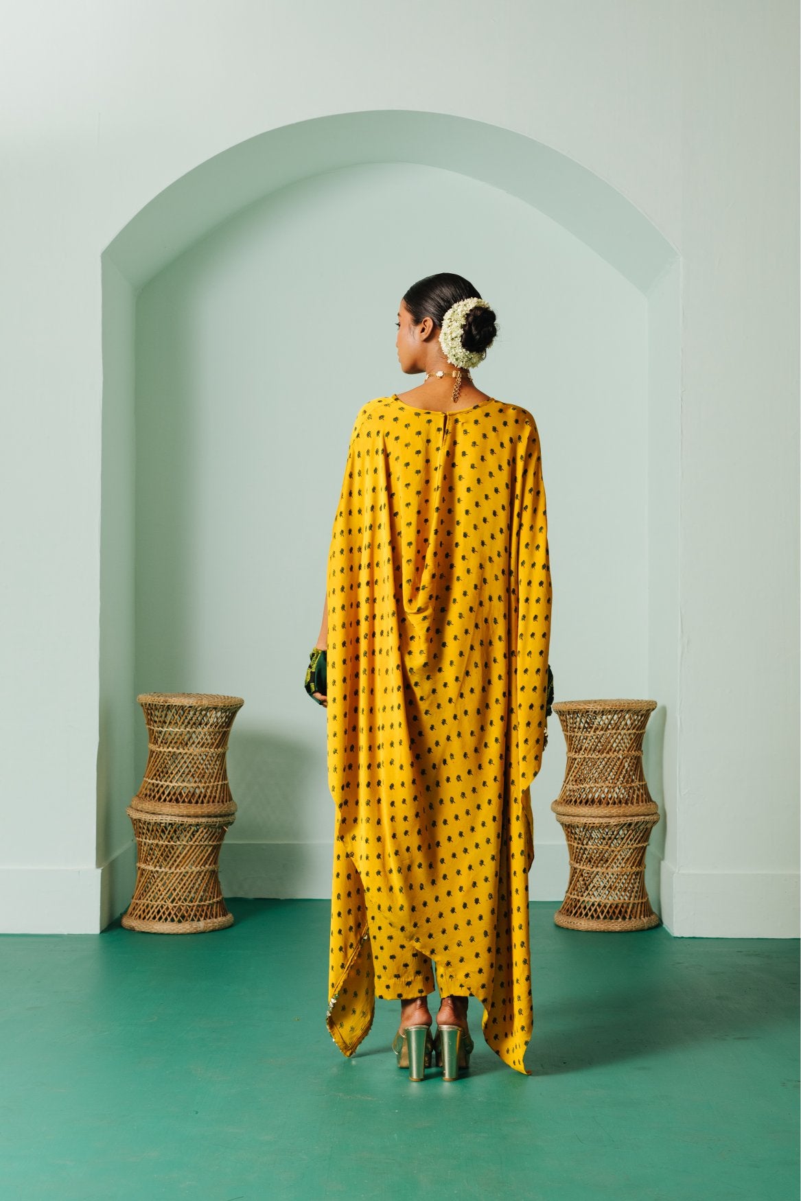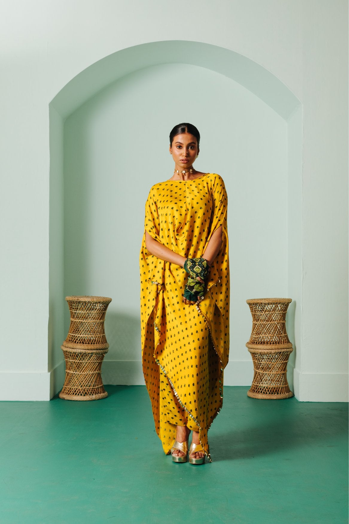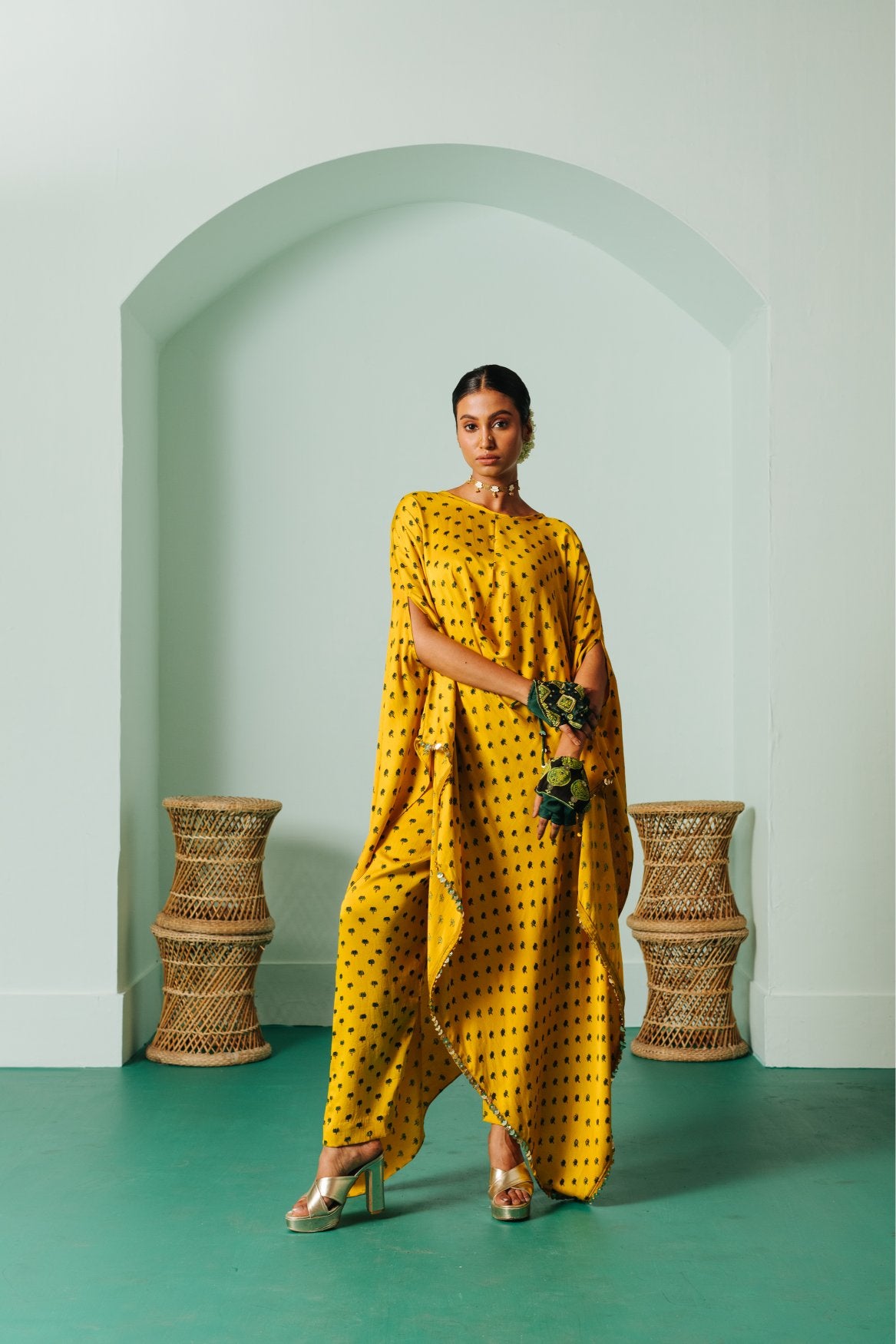 Sunira Nexa Green Hi Low Top & Wrap Skirt Set