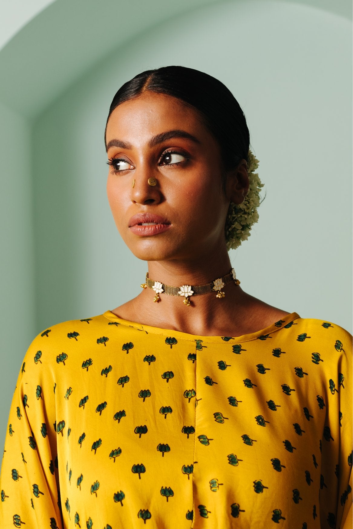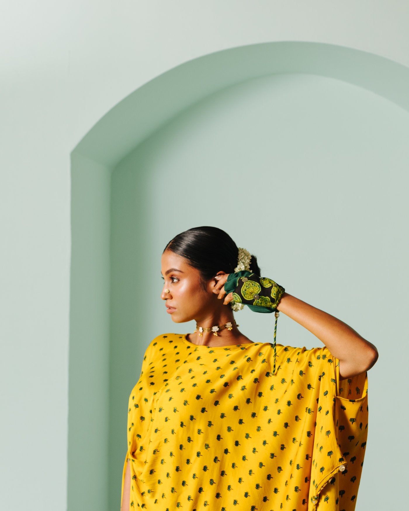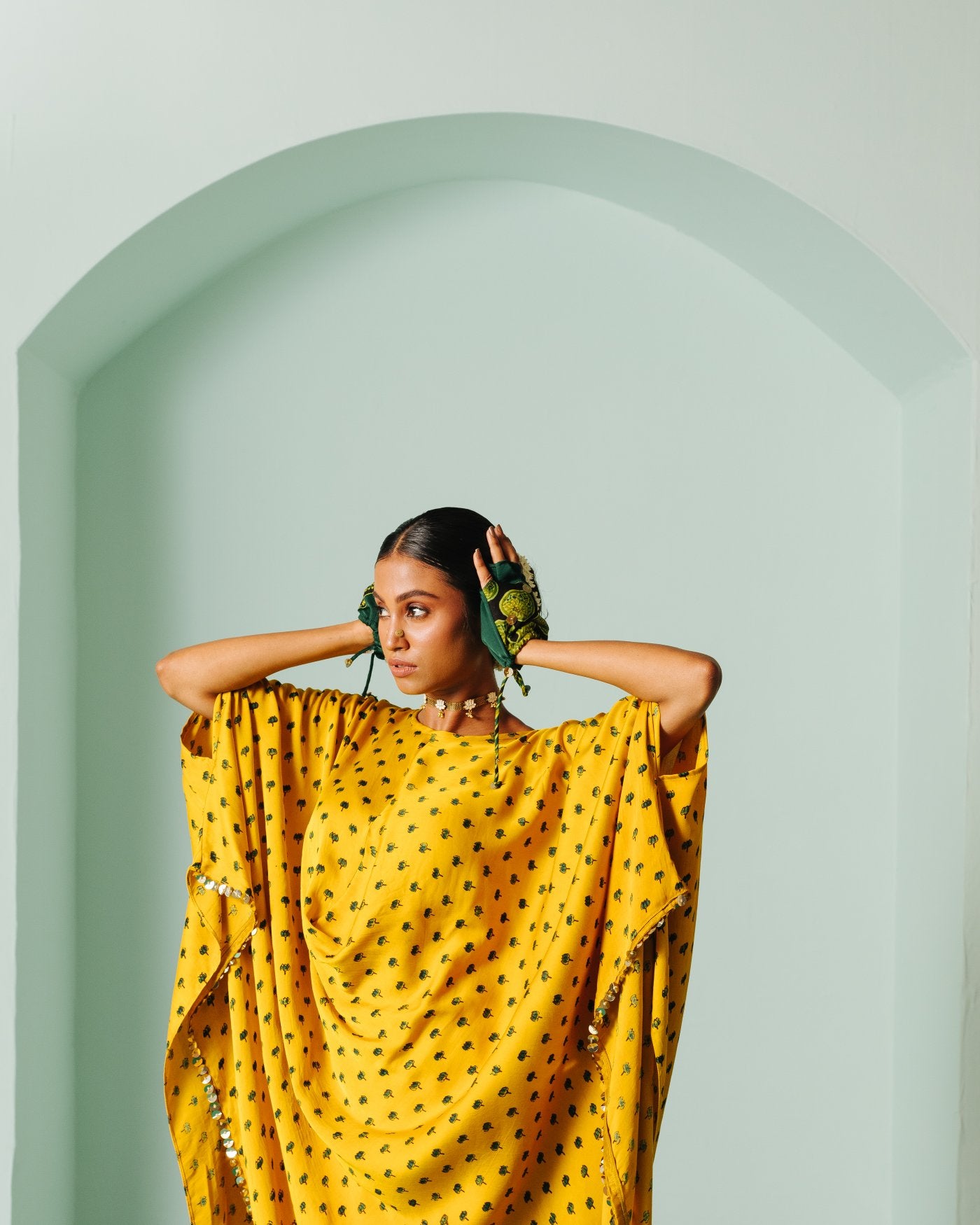Sunira Nexa Green Hi Low Top & Wrap Skirt Set