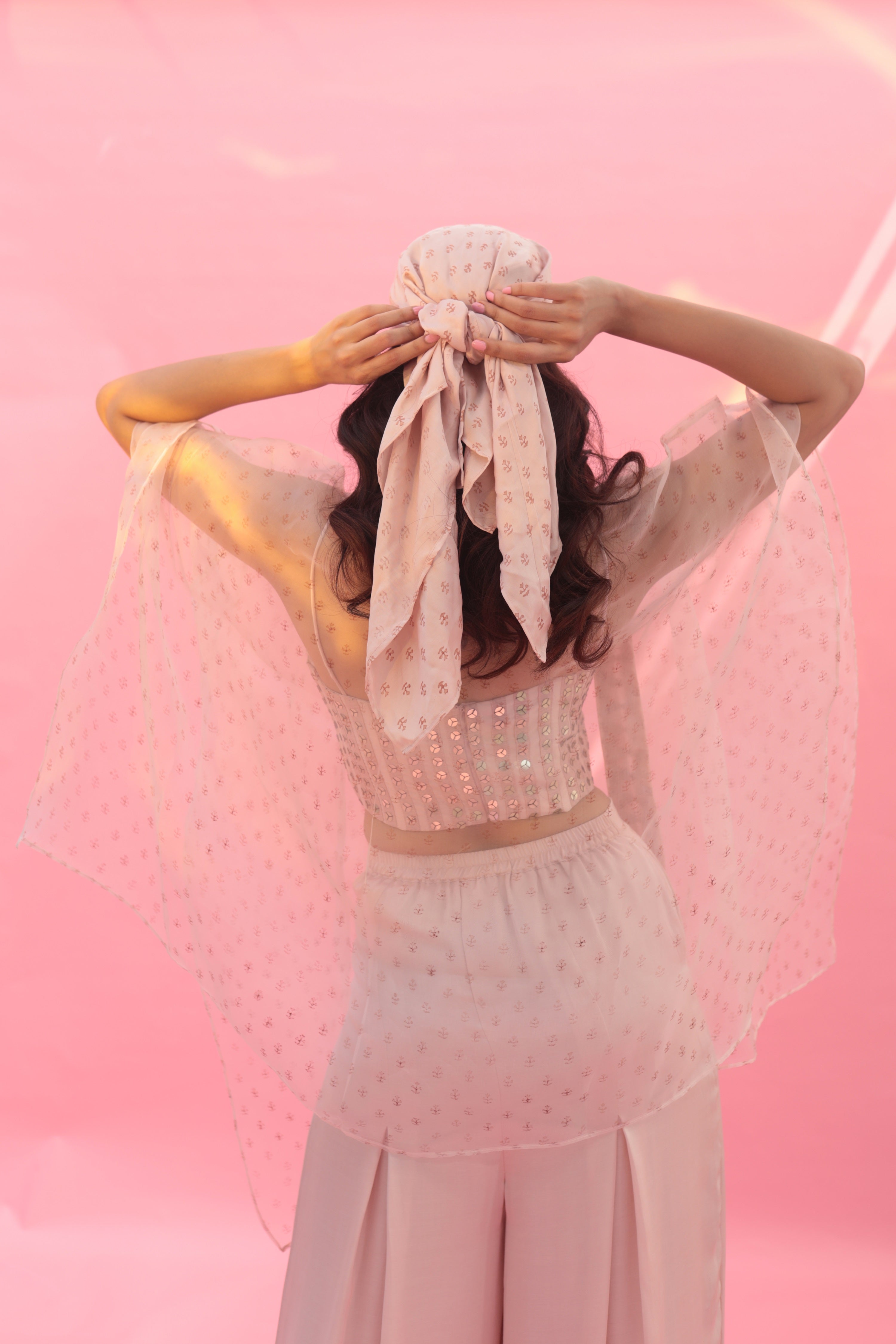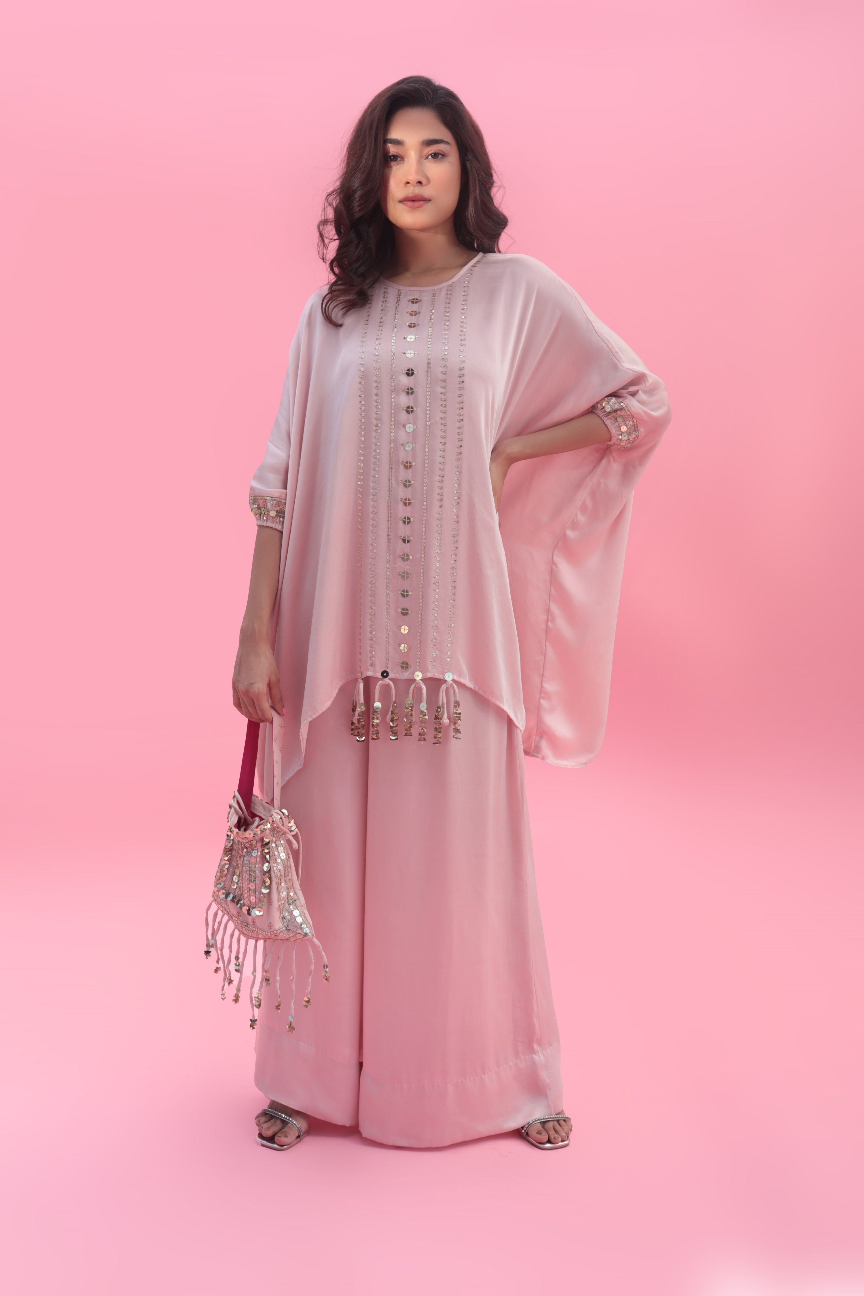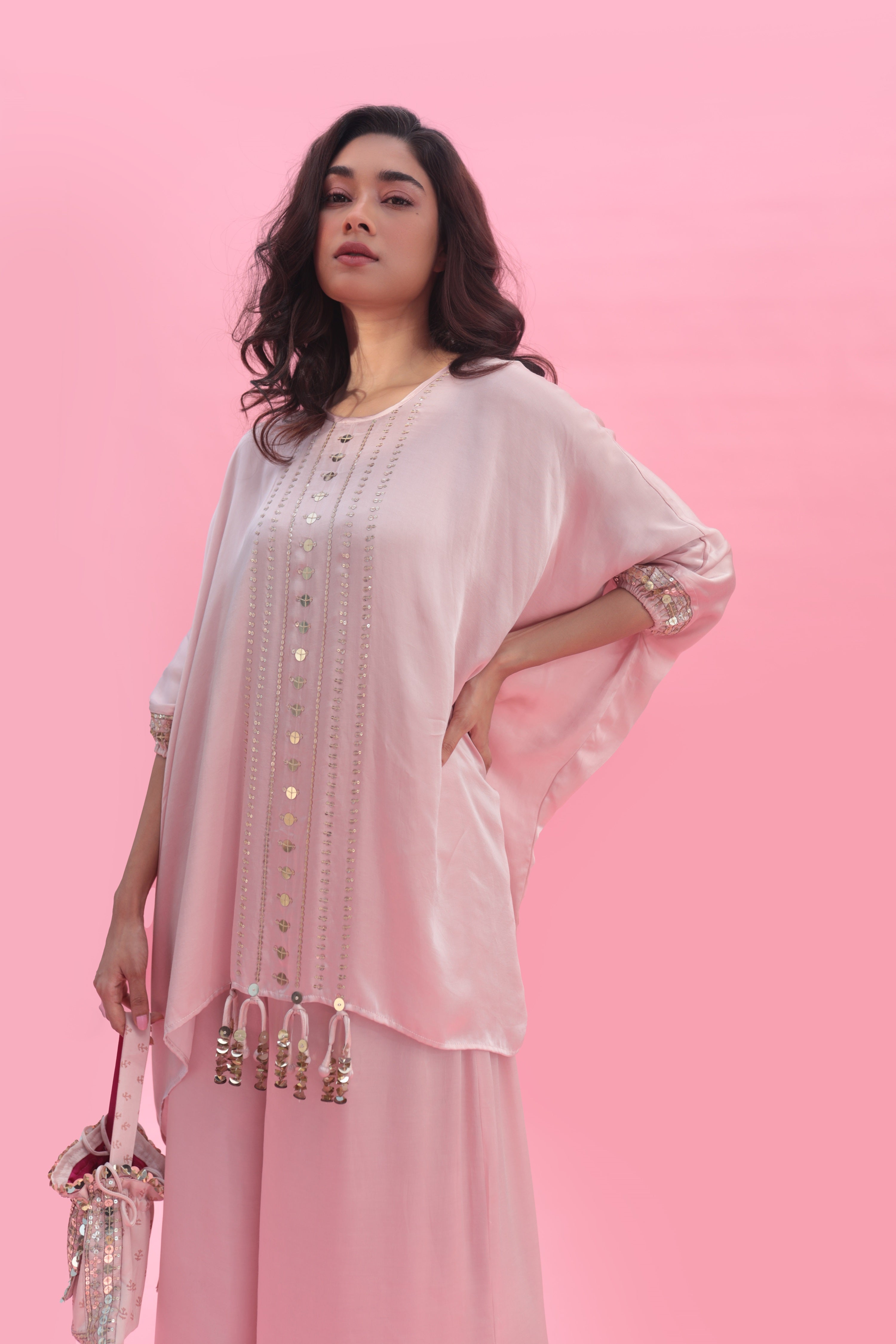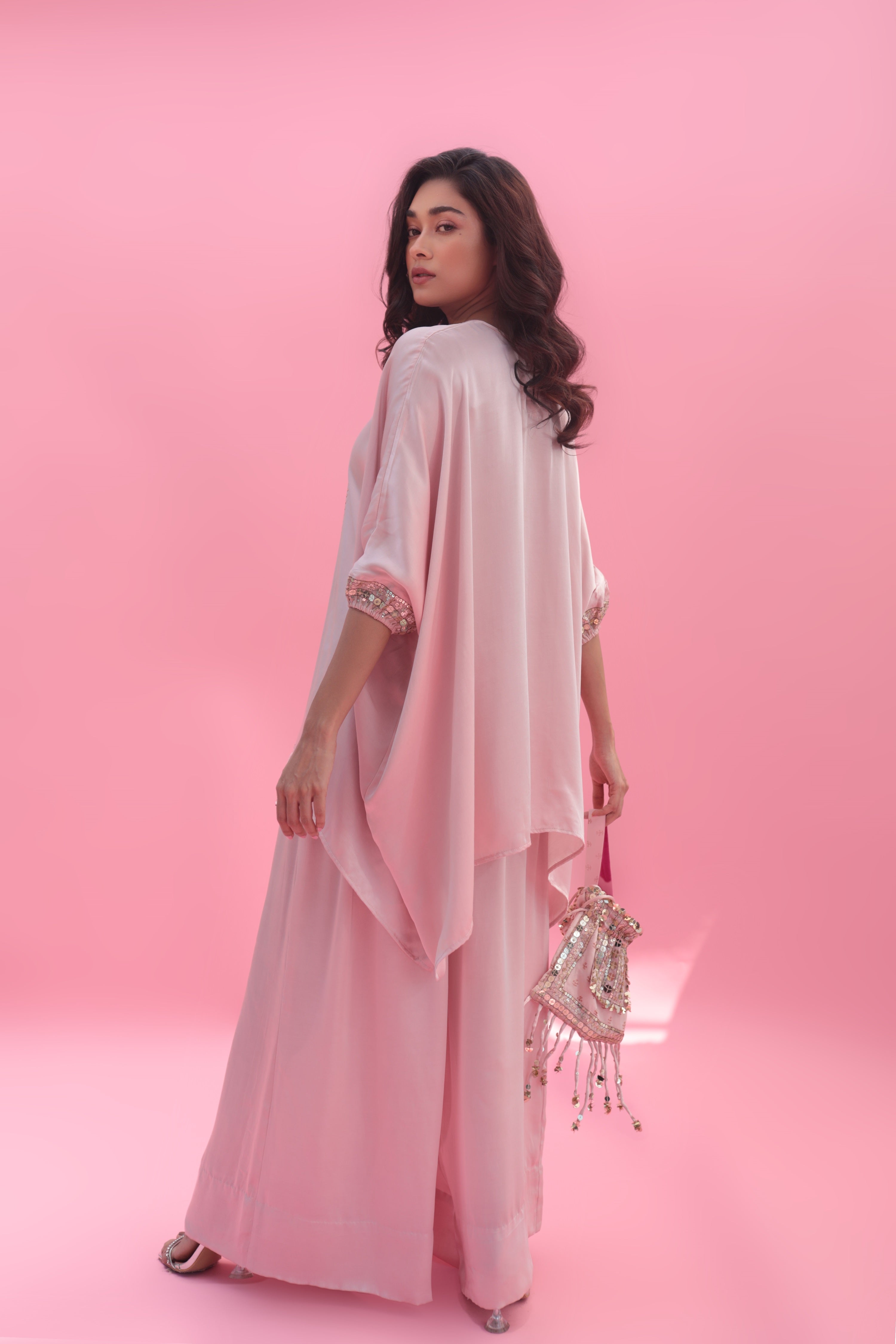 Yami Pink Blouse Set with Pant & Cape