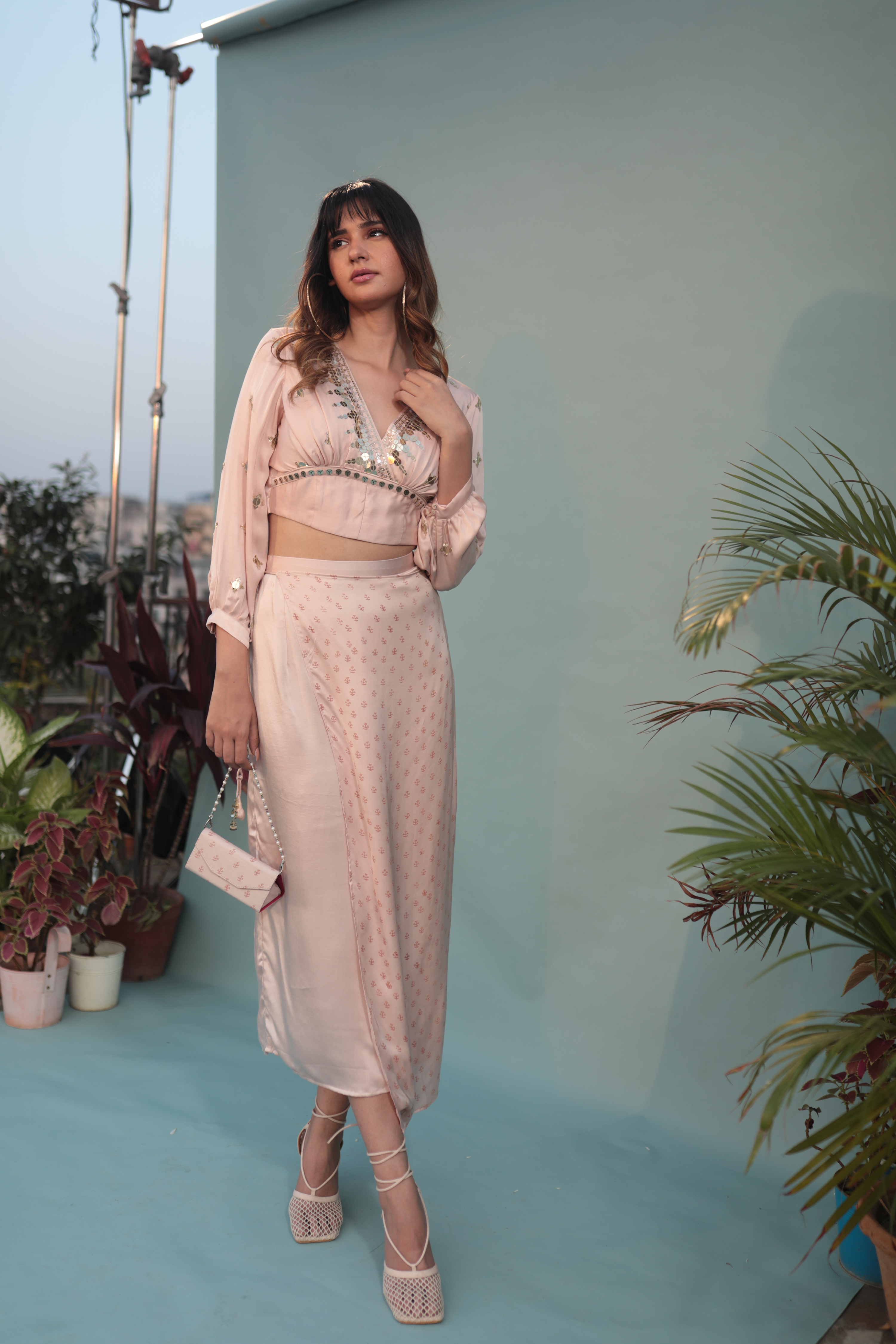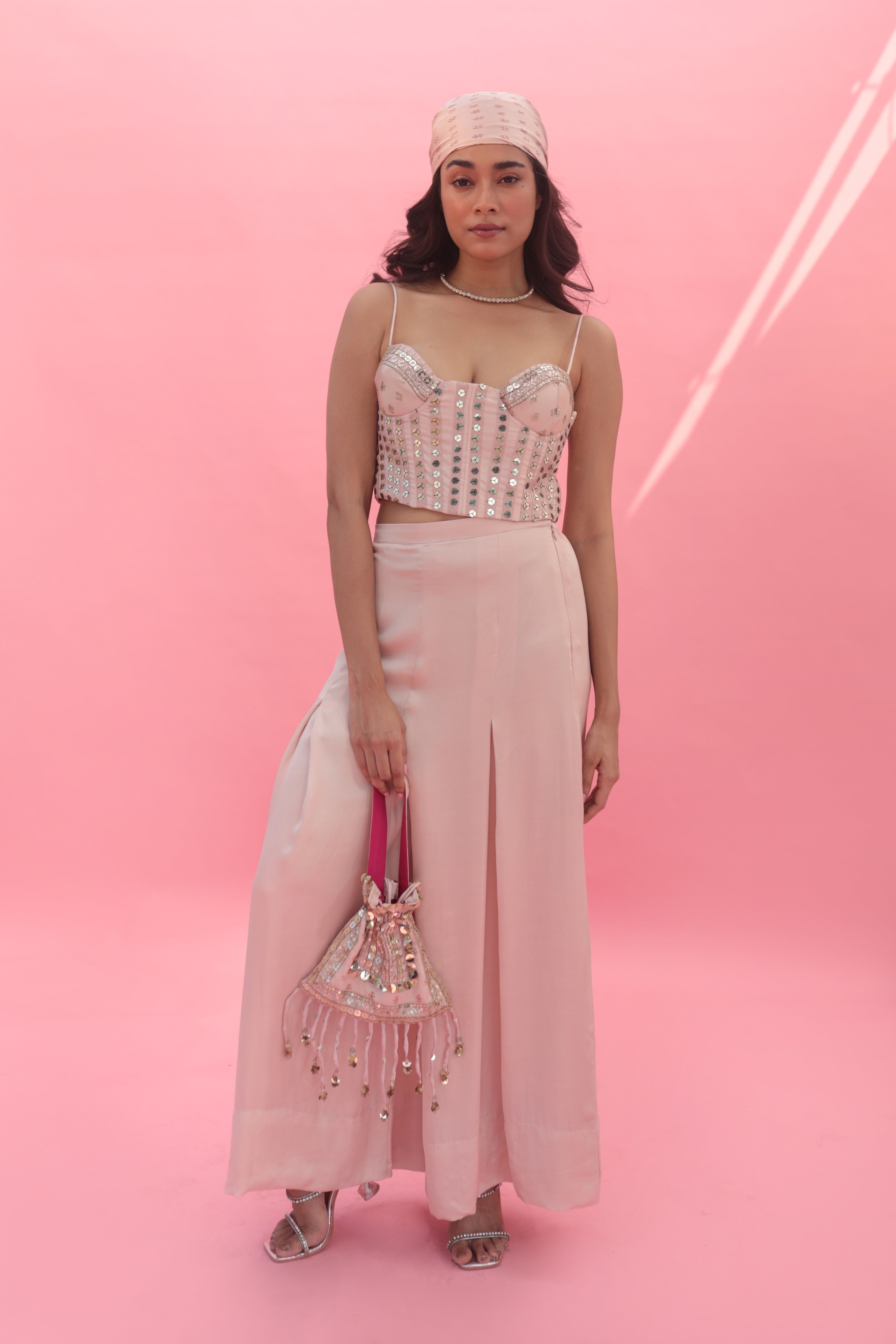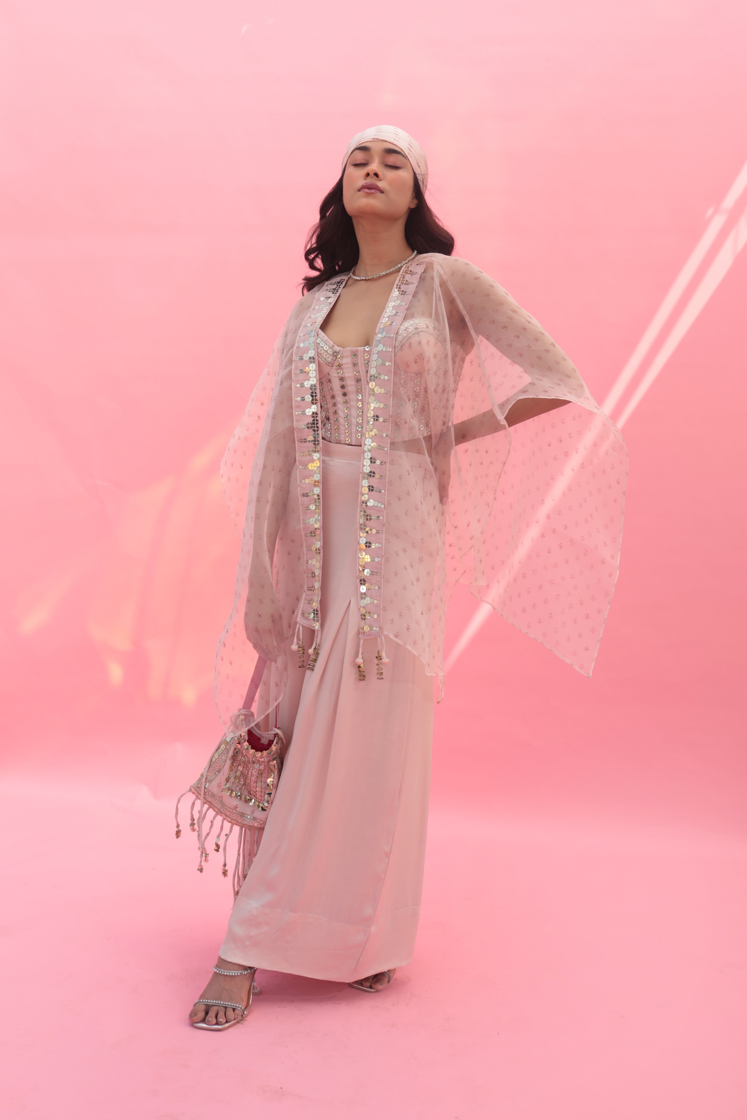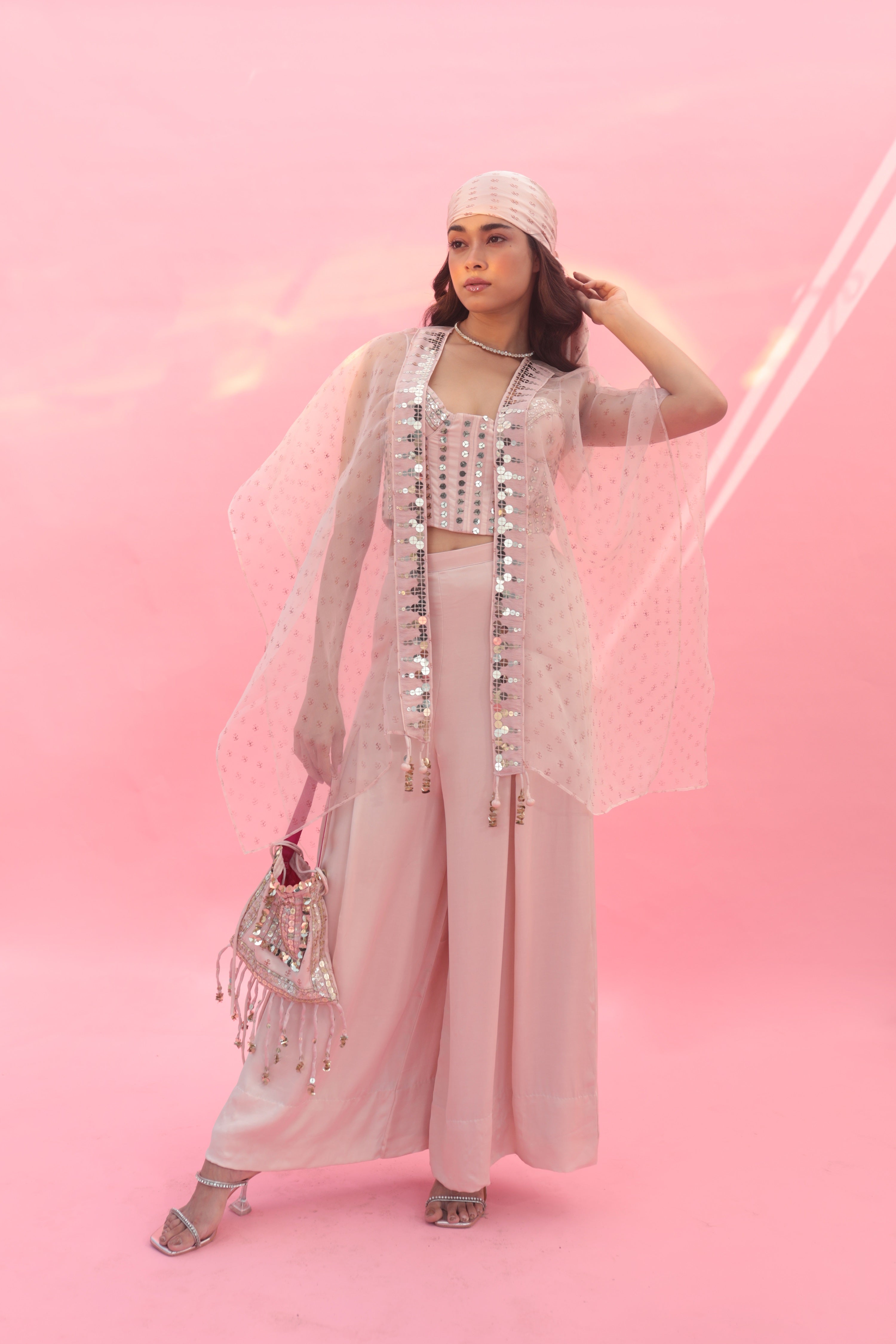 Yami Pink Blouse Set with Pant & Cape