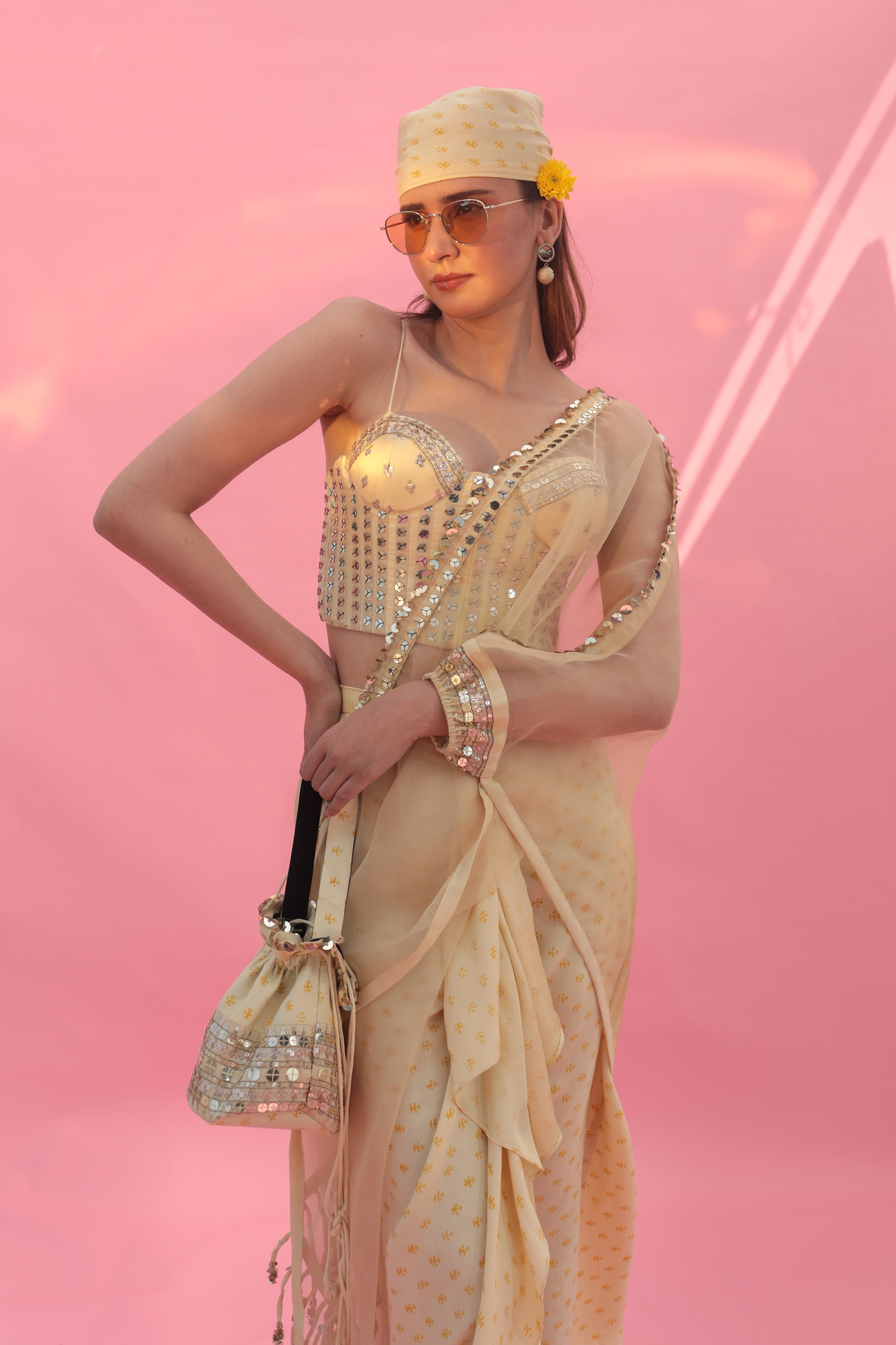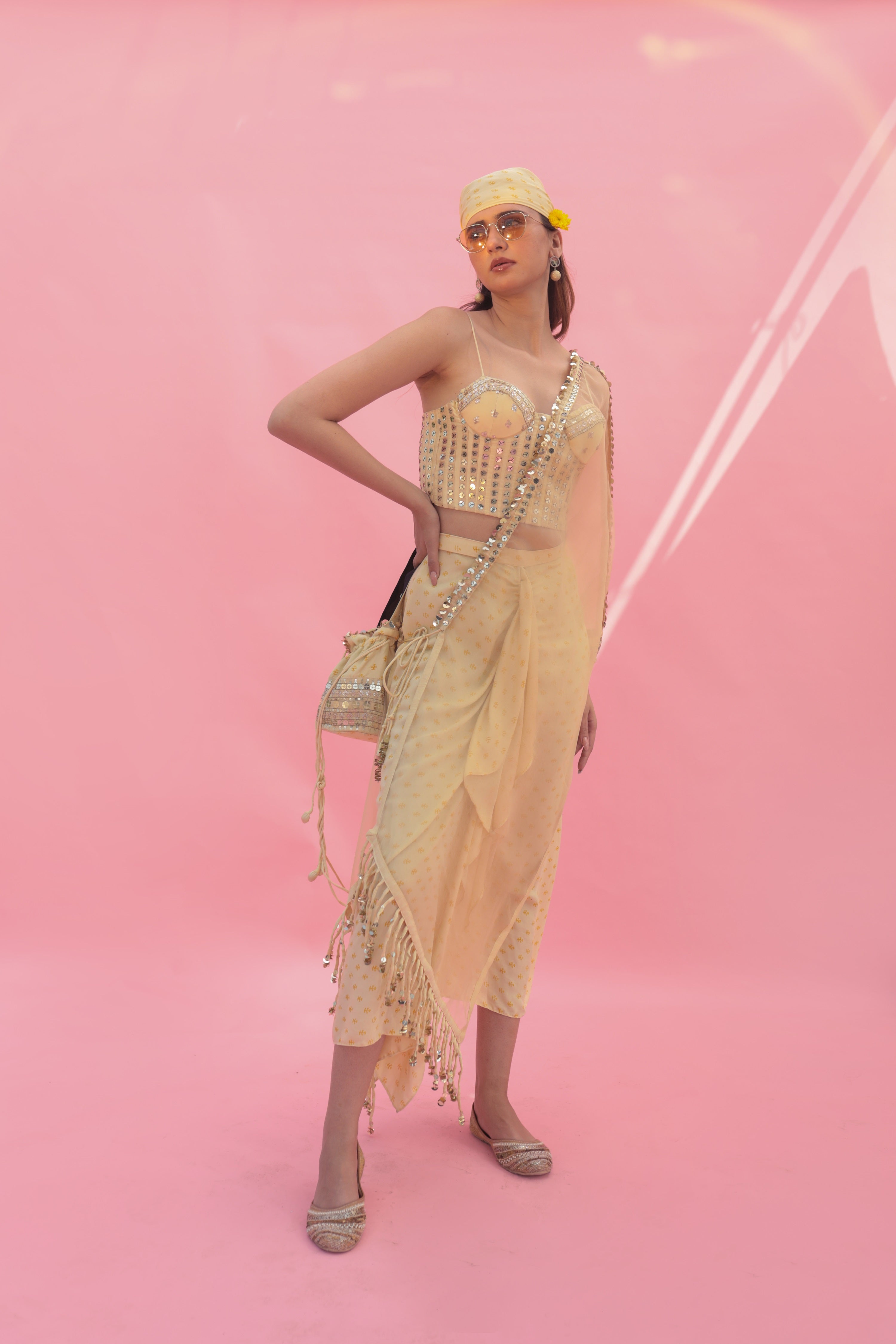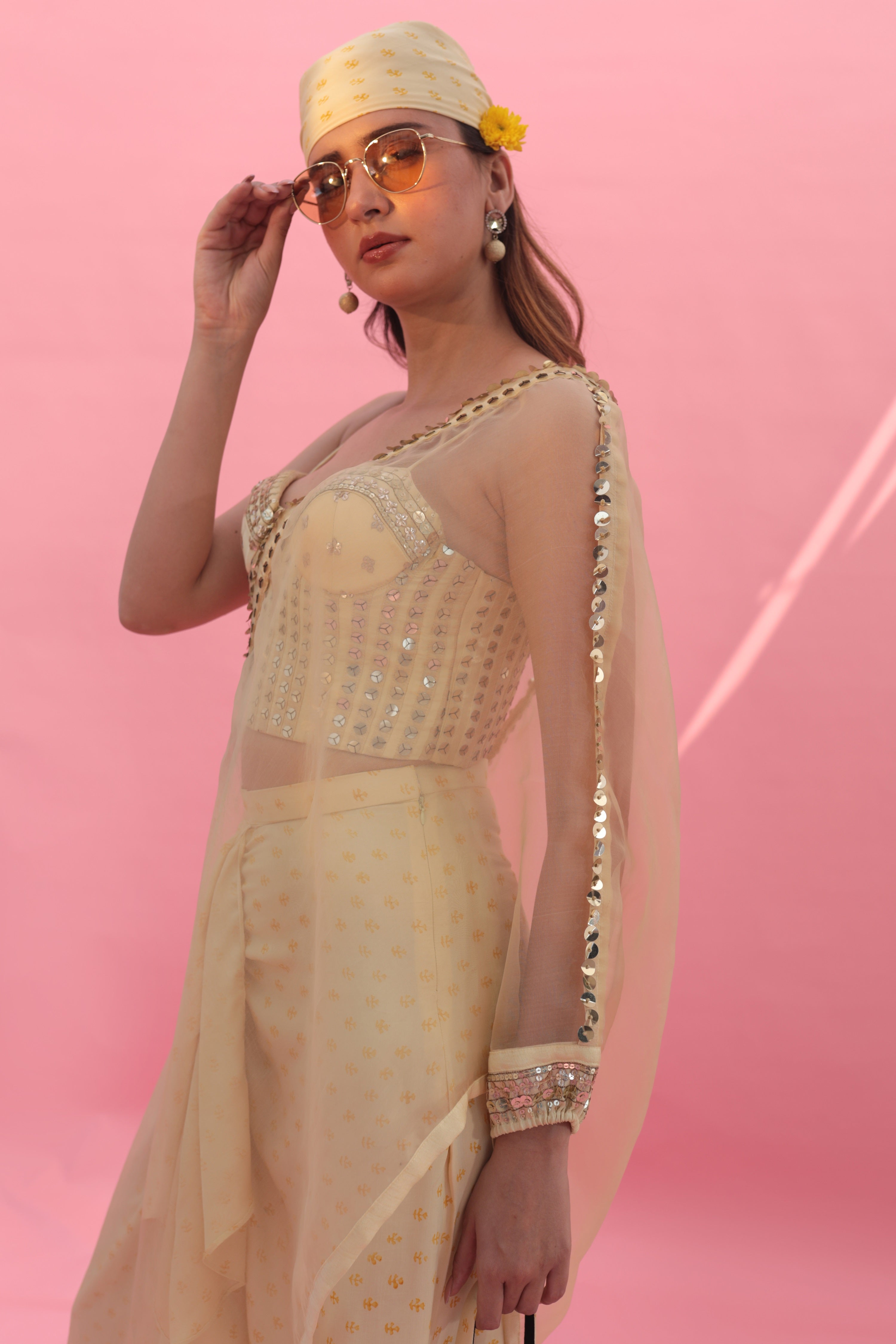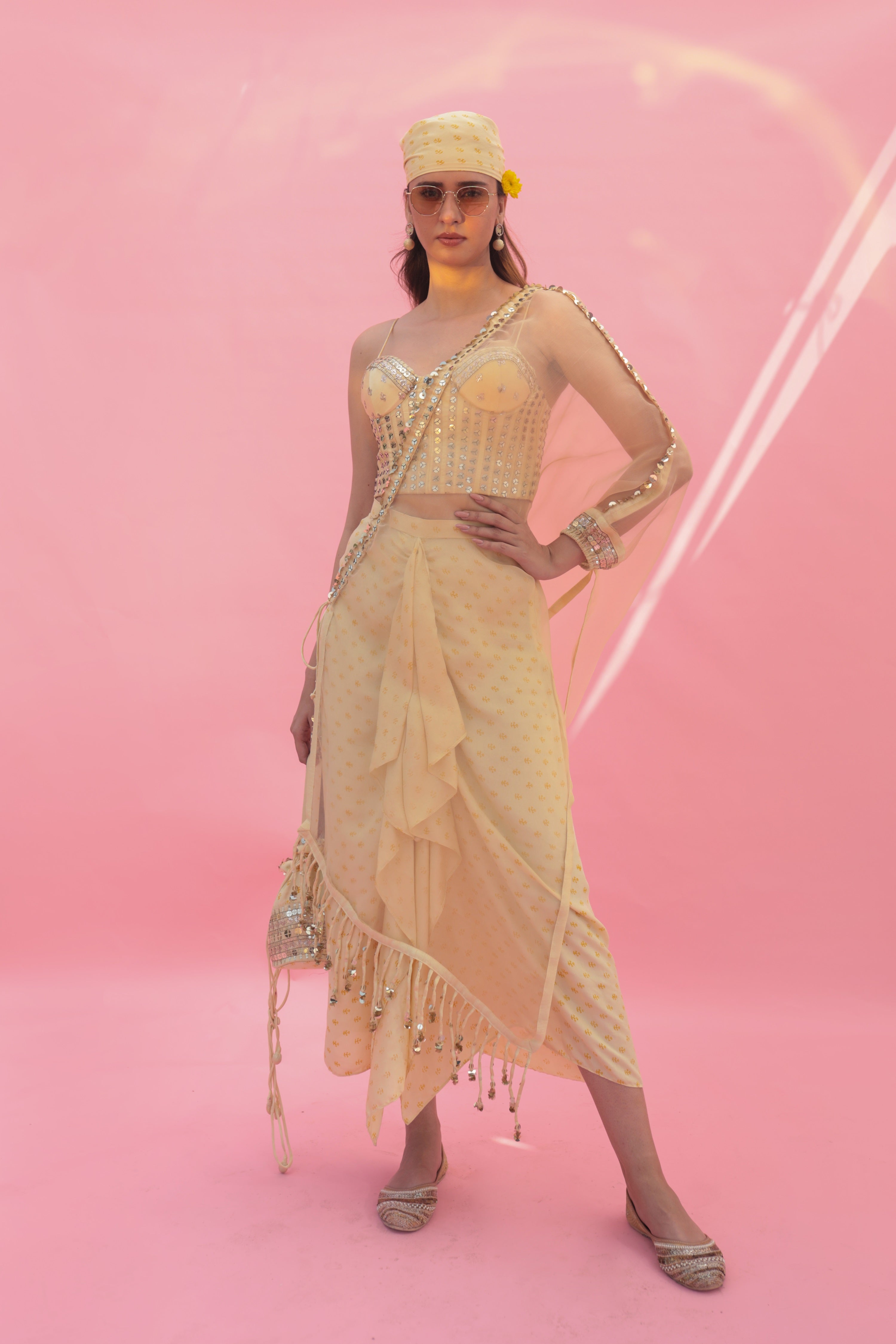 Saakura Yellow Indowestern Top with Dhoti Skirt