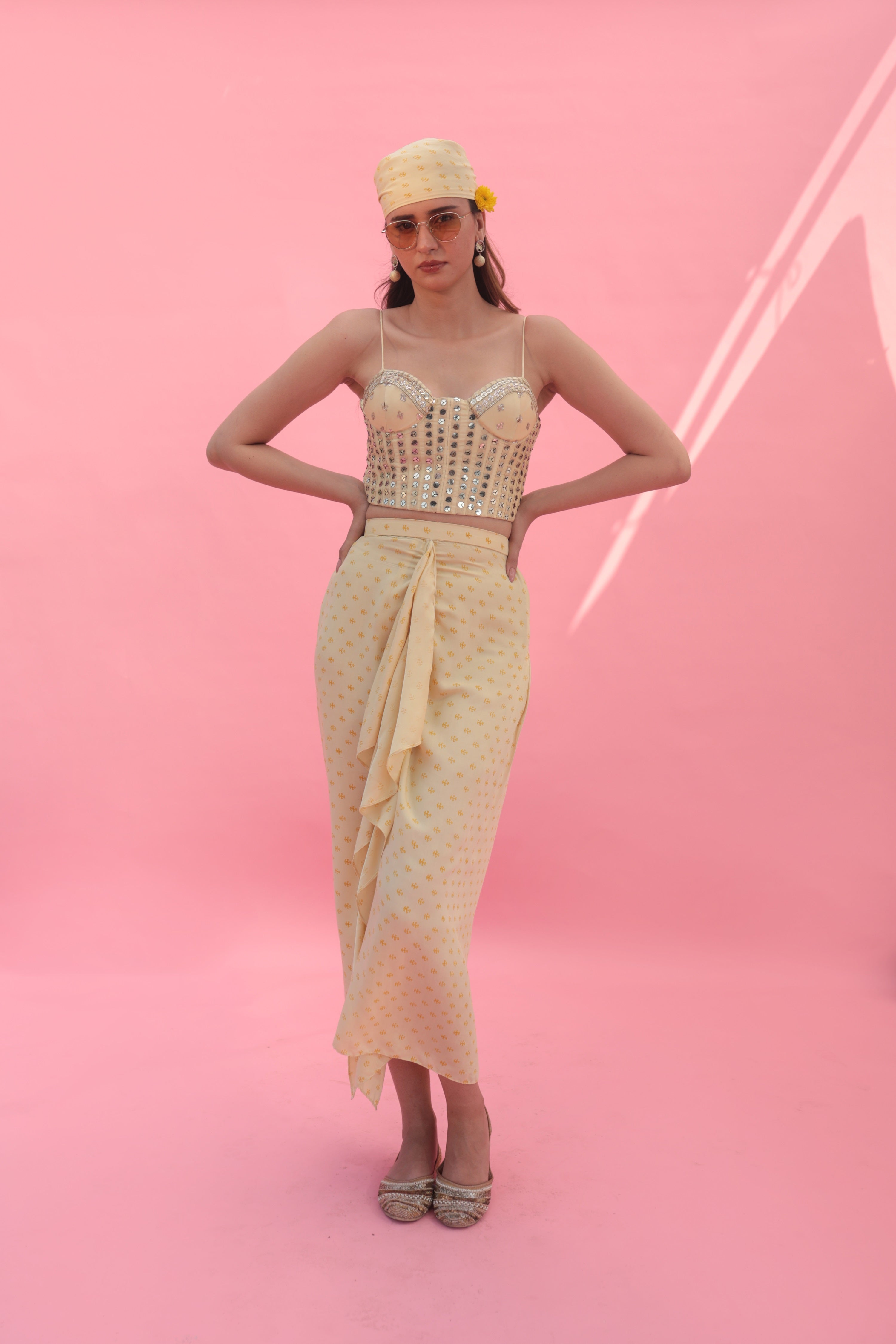 Masbah Yellow Blouse with Skirt