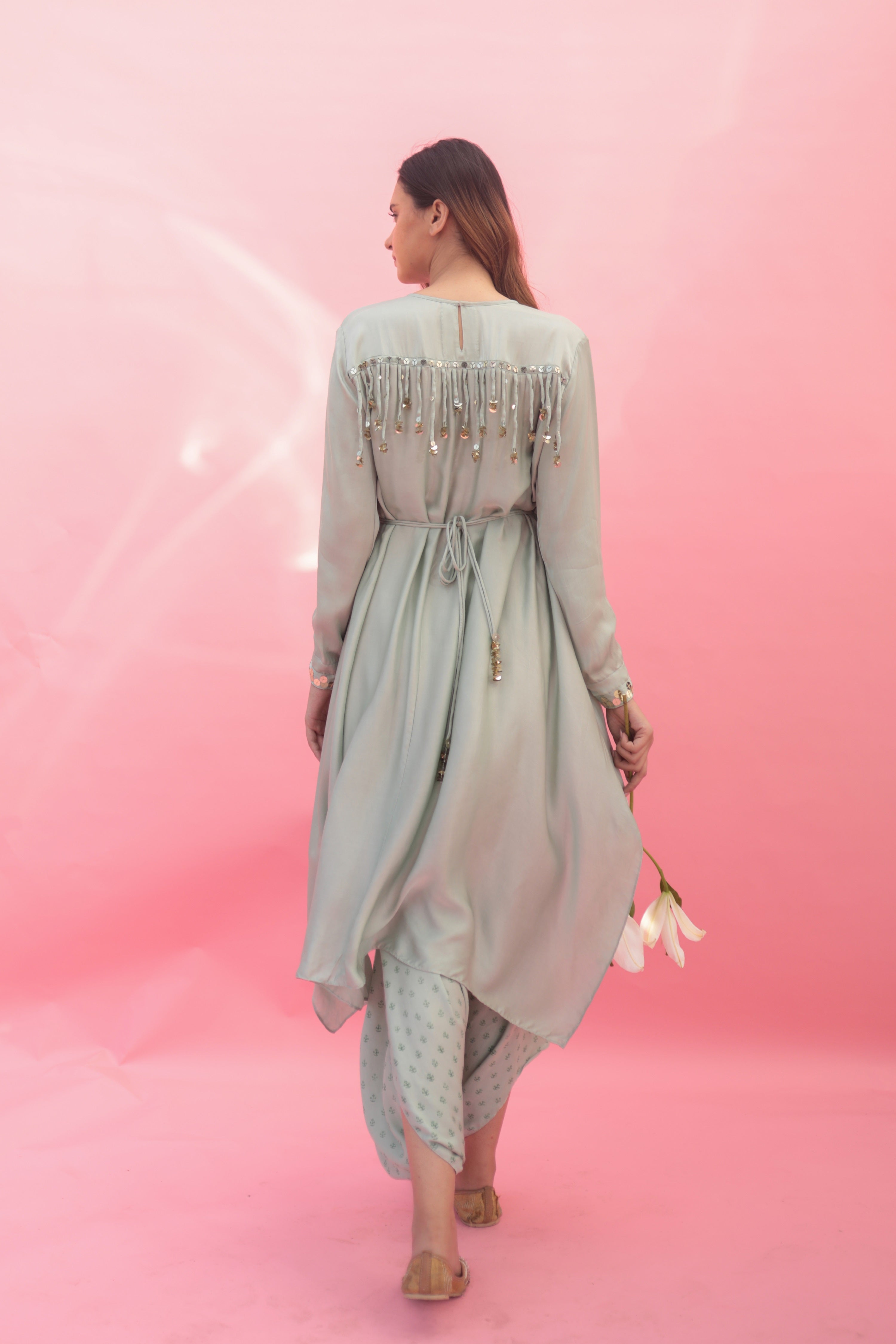 Saakura Green Indowestern Top with Dhoti Skirt