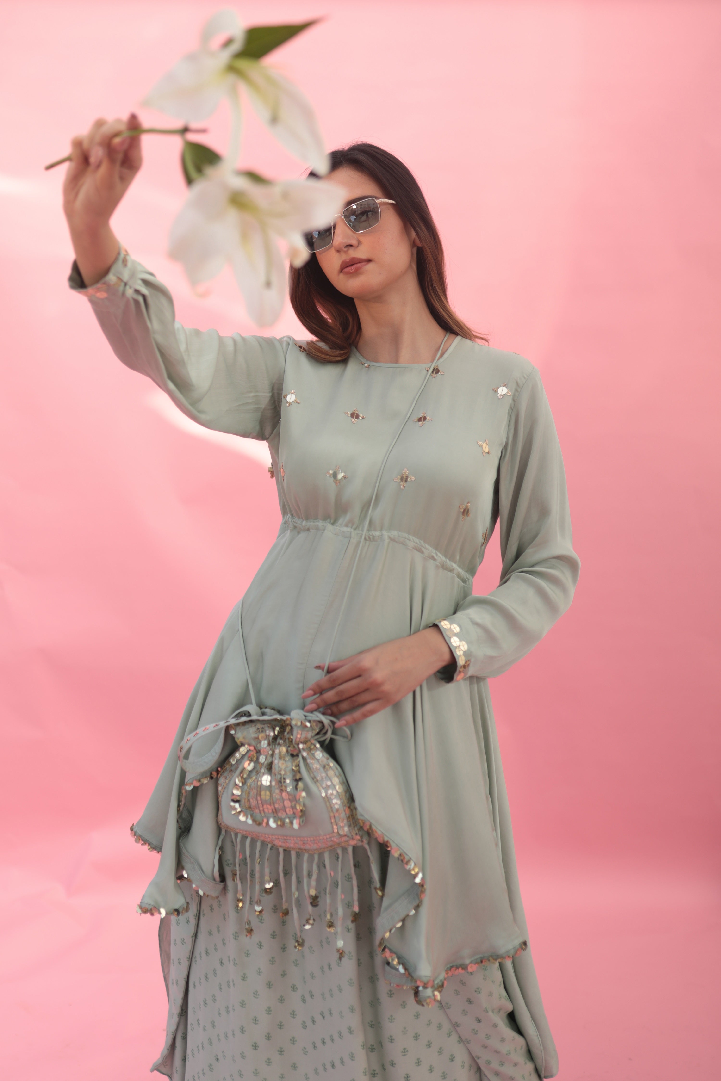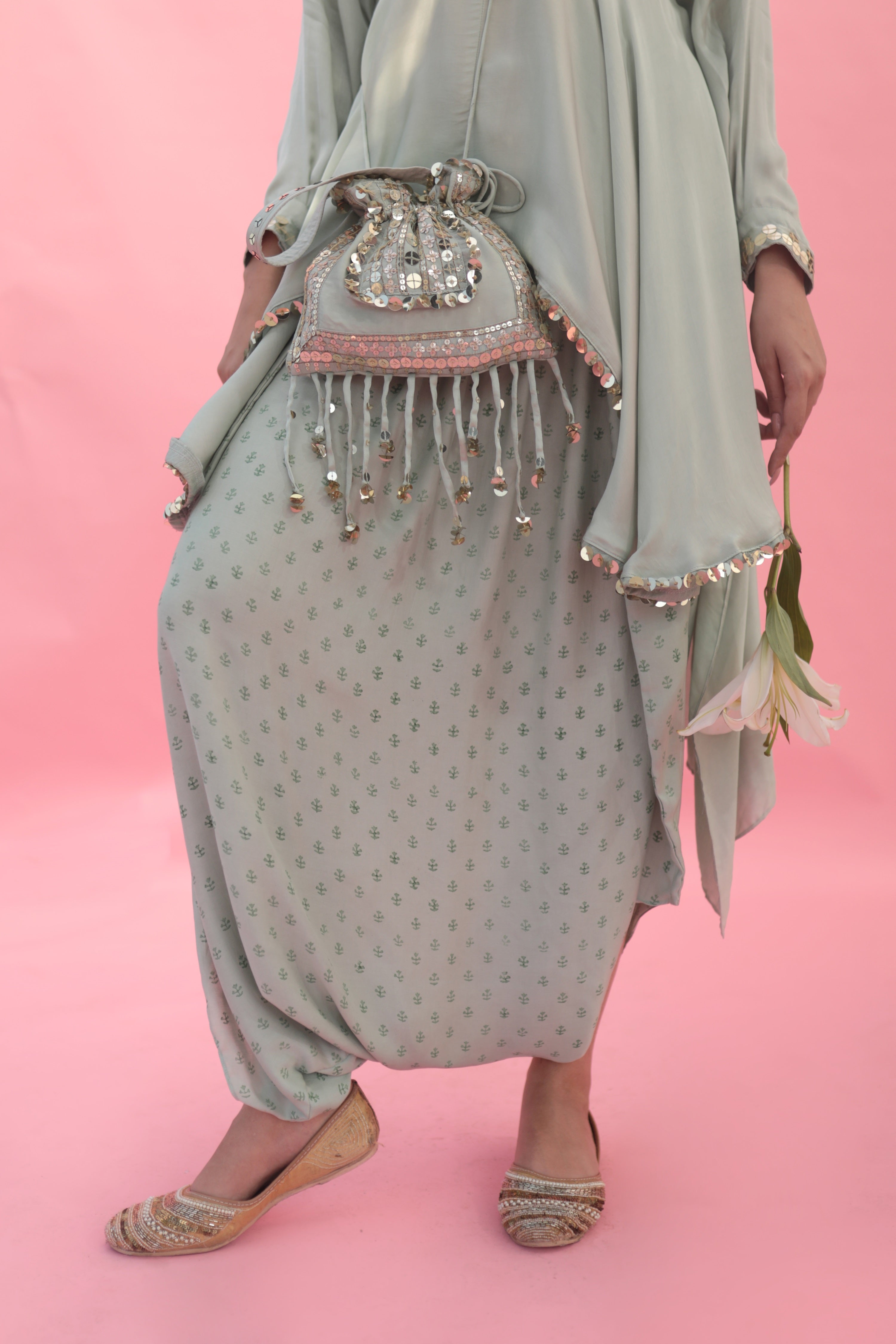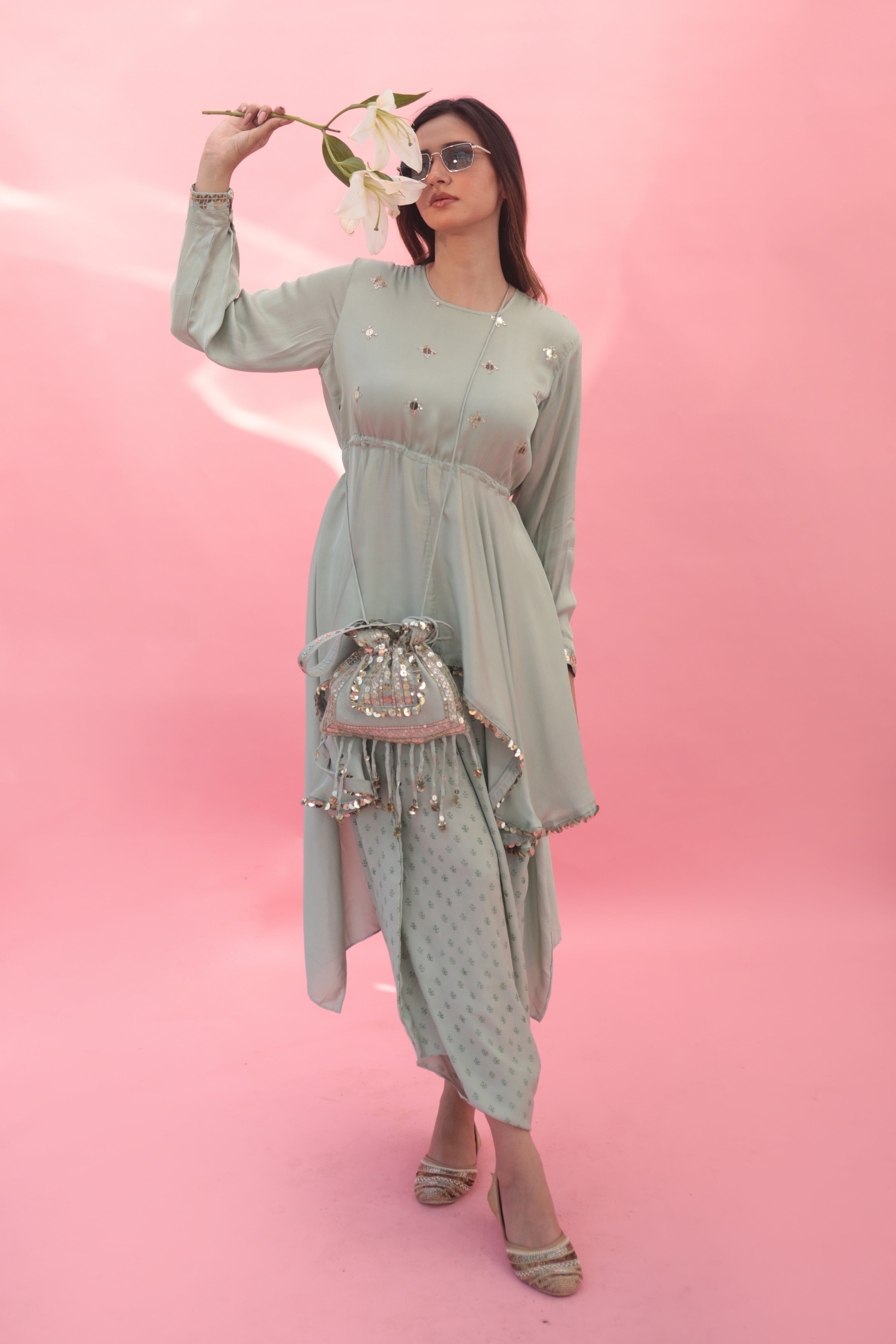 Masbah Green CO-ORD SET with Dhoti Skirt