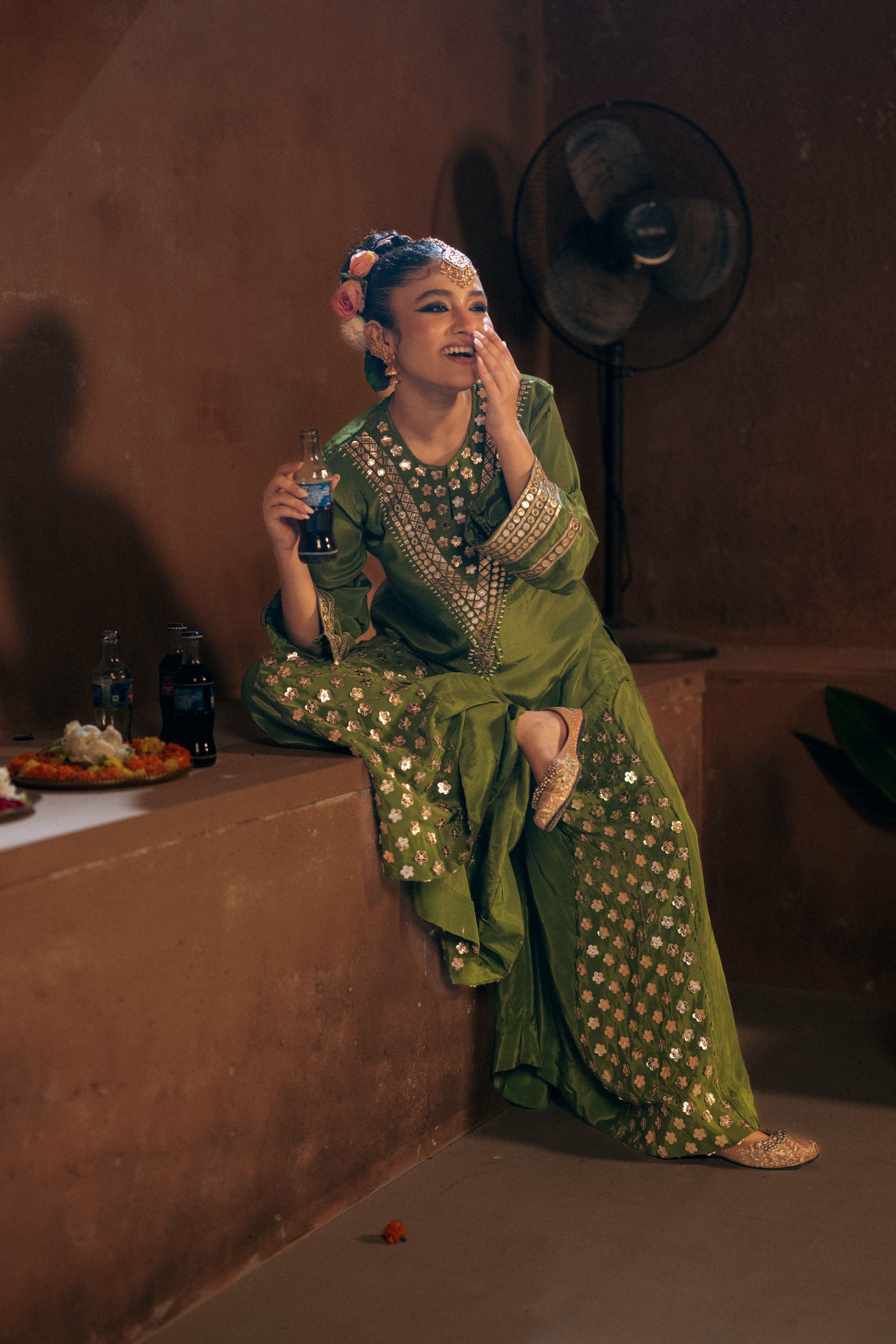 Chamakeen Masai Green Antifit Kurta Set