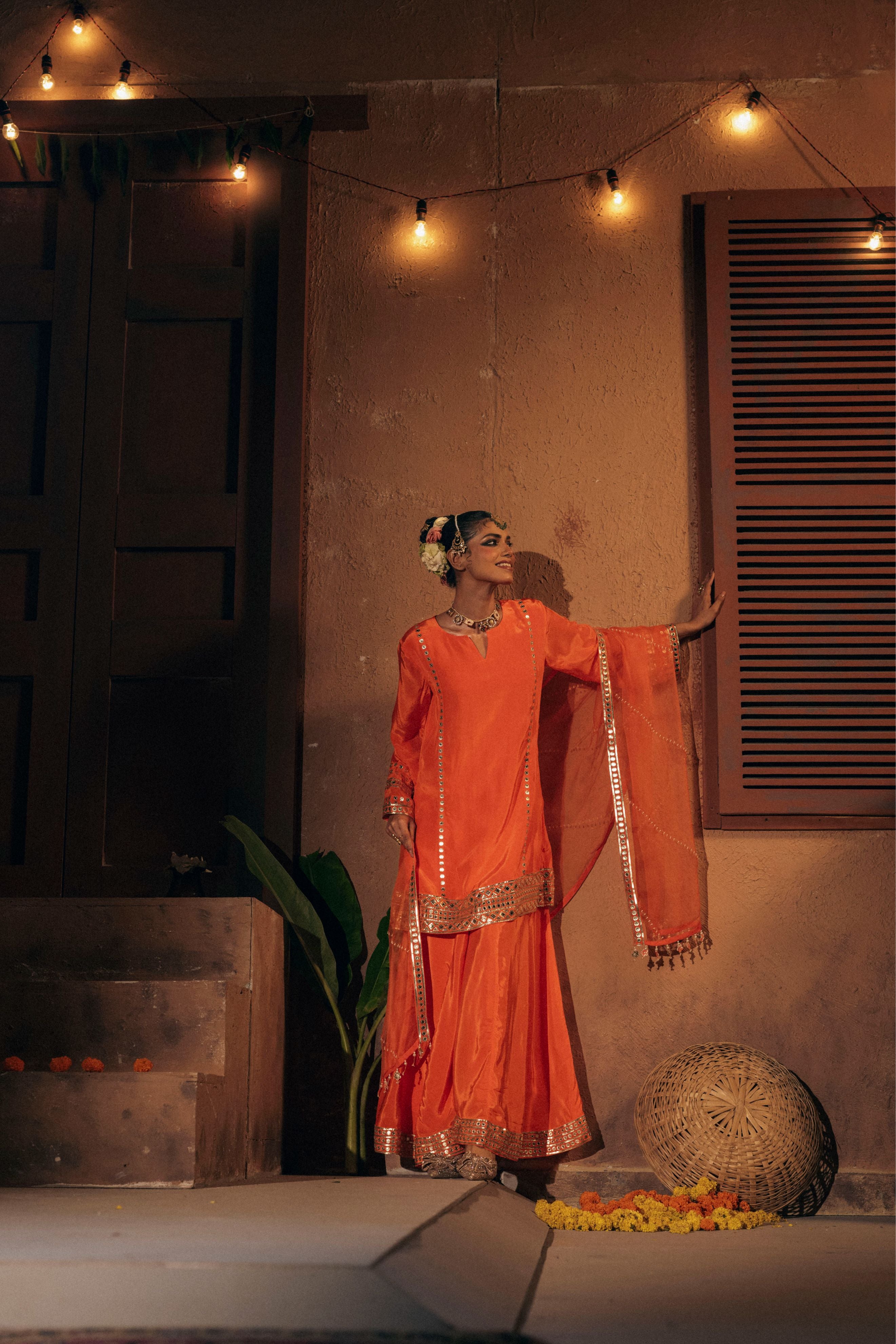 Sunira Asymmetrical Phool Choga Salwar & Dupatta Set