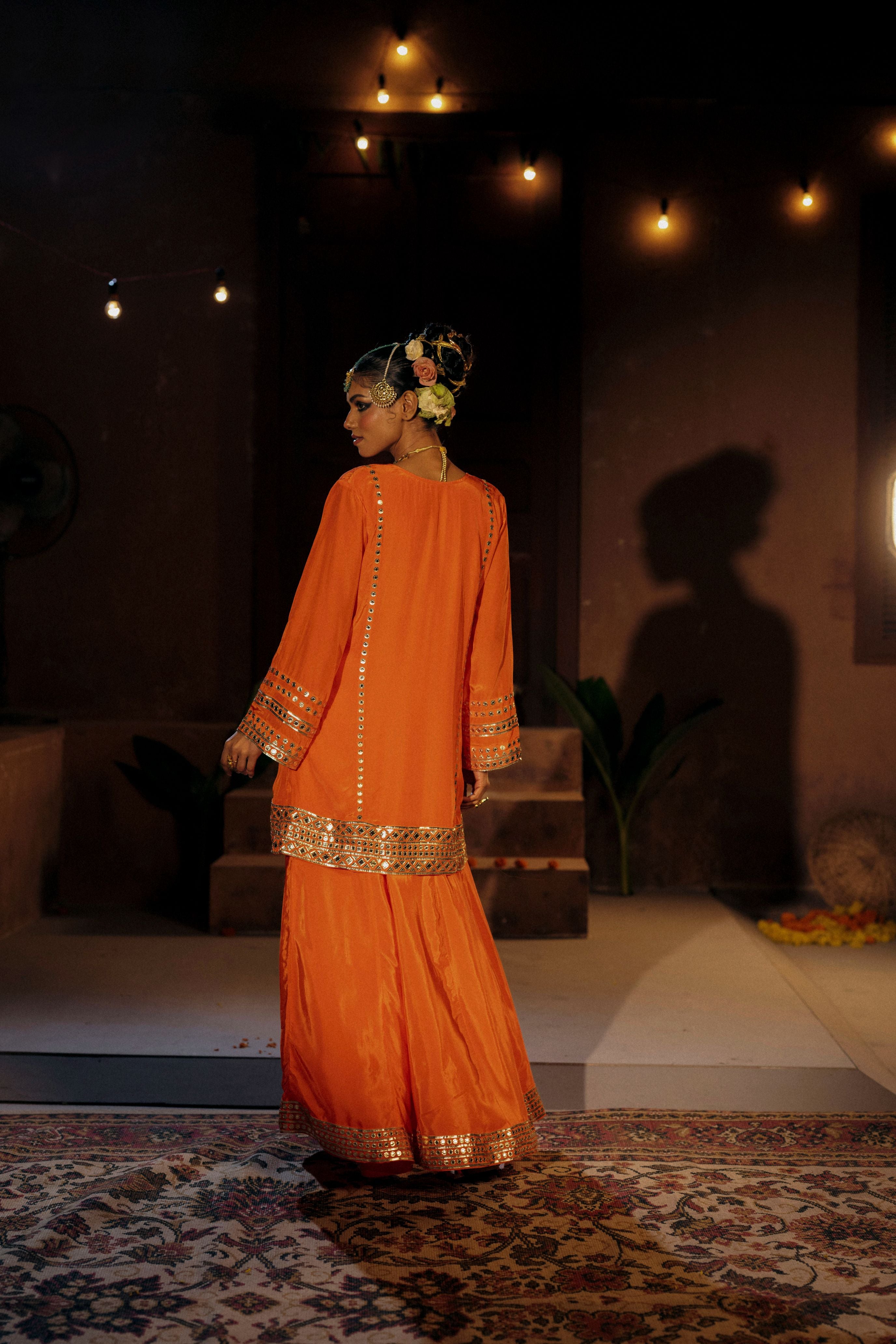 Mustard Anti-Fit Ajrakh Kaftaan Top with Dhoti Skirt