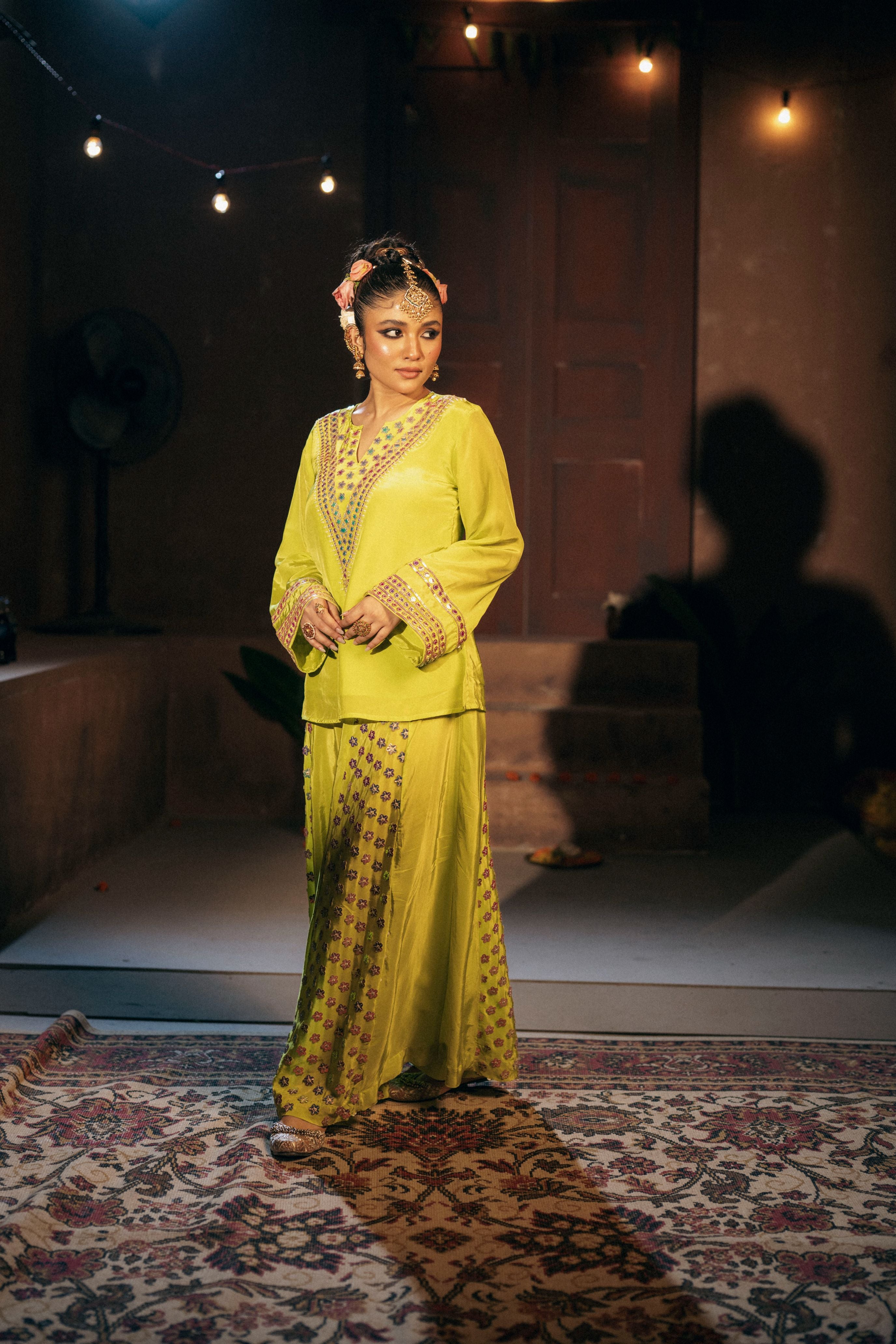 Mitali Wadhwa in Neon Green Antifit Kurta Set