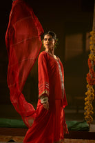 Celebrate in style with this structured jacket-style tunic paired with a flowing pleated skirt and a delicate dupatta for elegant drape styling. Designed for comfort and sophistication, this contemporary silhouette is perfect for theme pre-wedding occasions, festive events, and parties. Model wears size S. Complete the look with a range of Chamak Bagh Potlis.